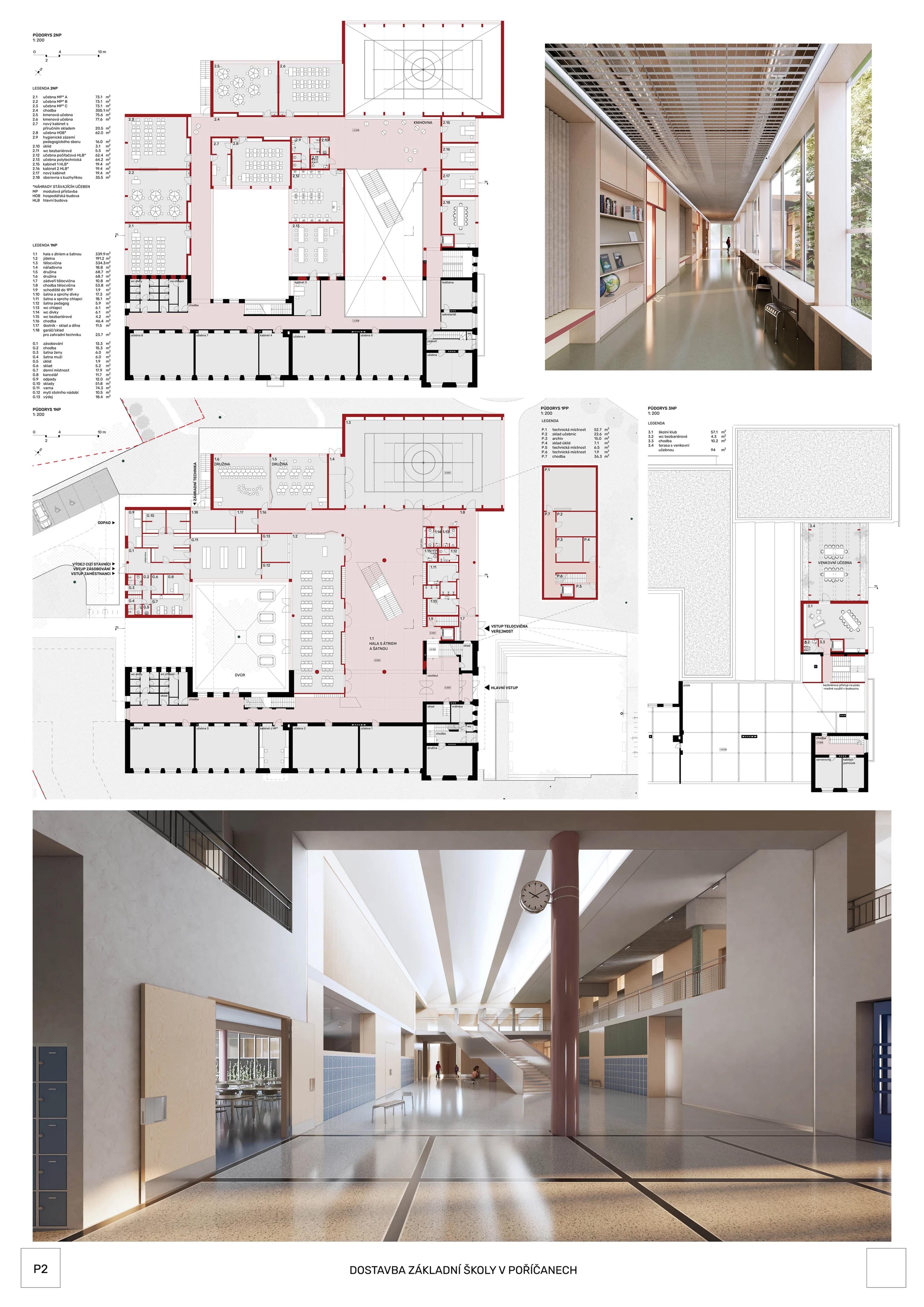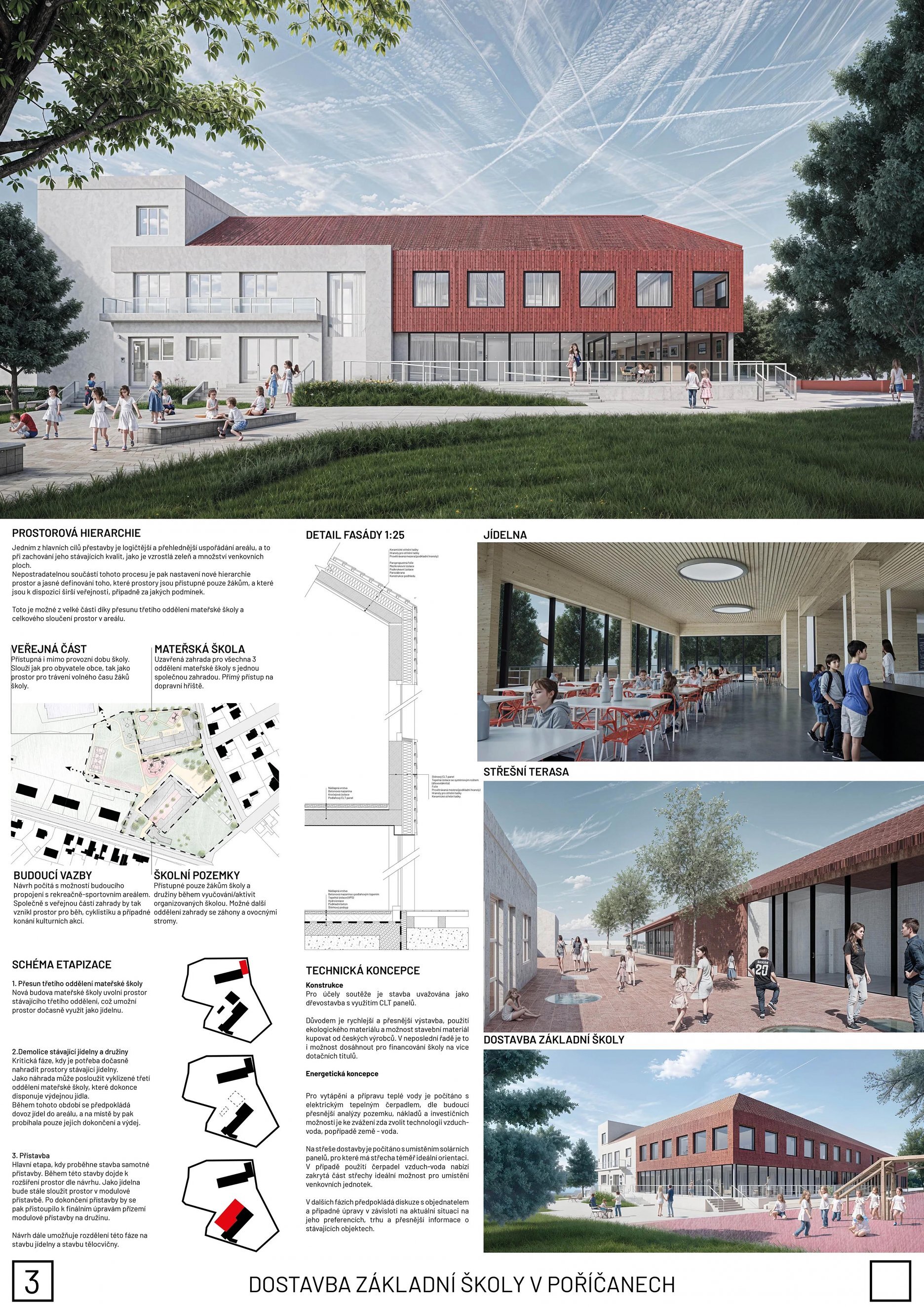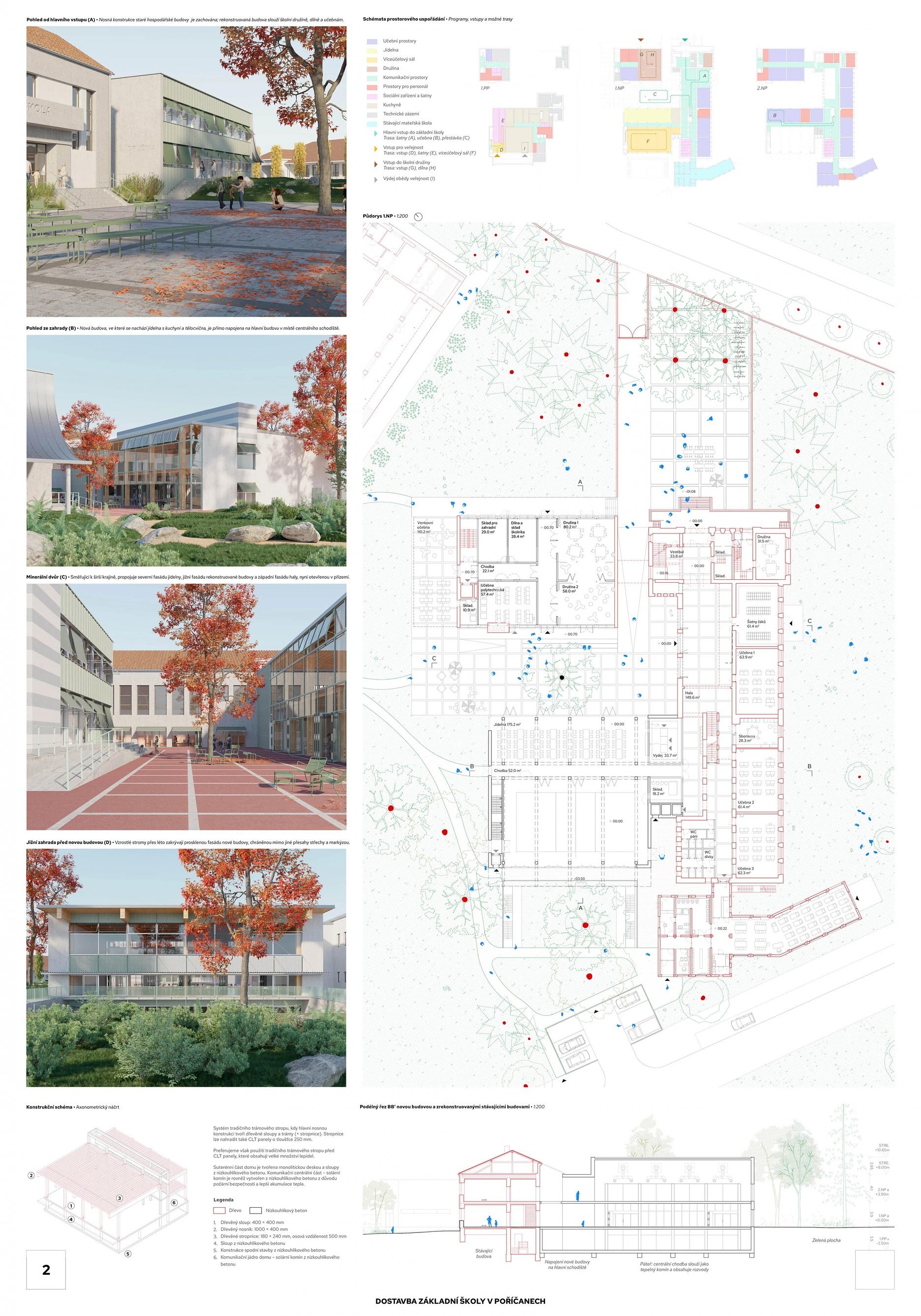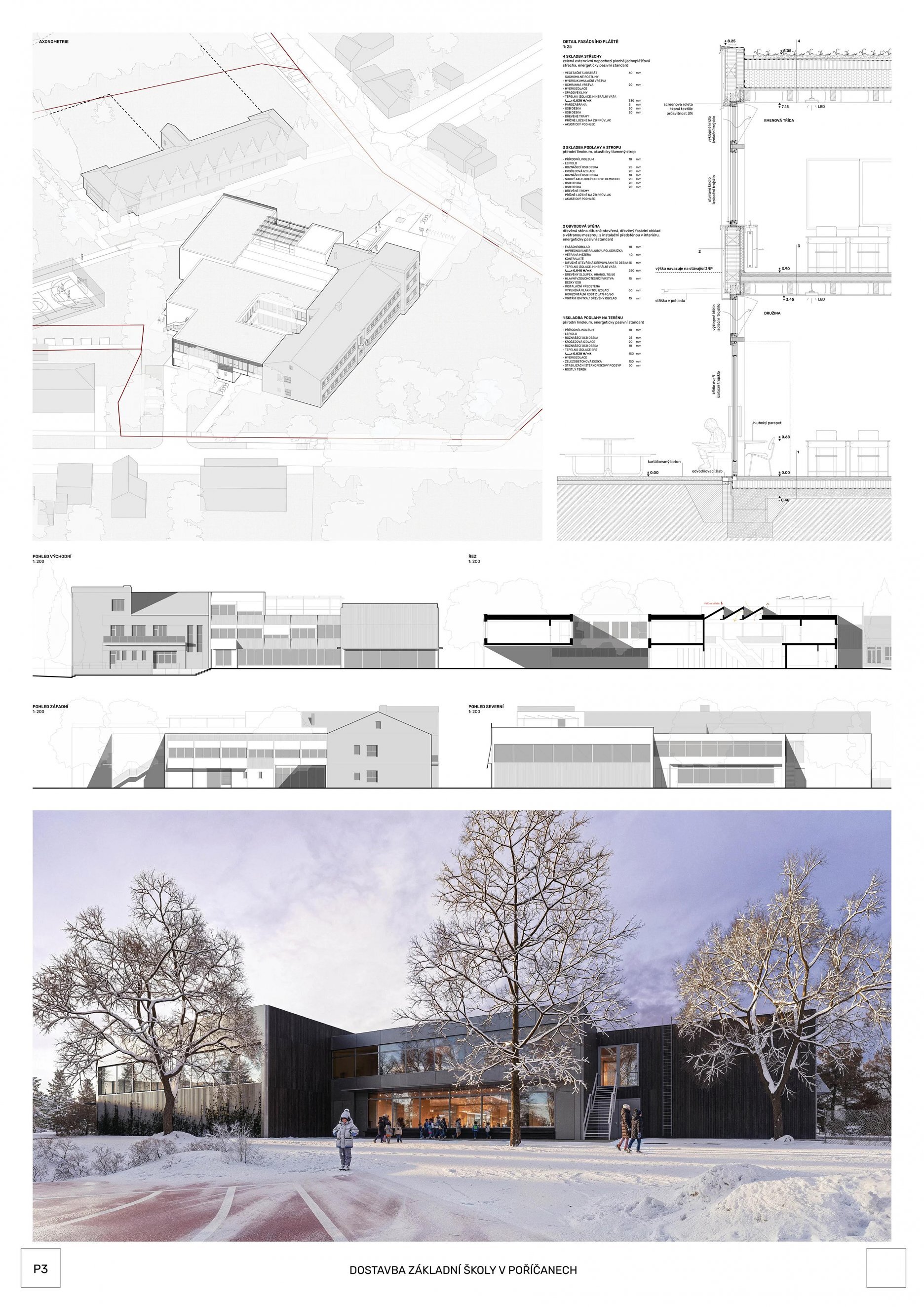 Predmetom súťaže bolo spracovanie architektonického návrhu dostavby areálu Základnej školy T. G. Masaryka a Materskej školy v stredočeskej obci Poříčany.