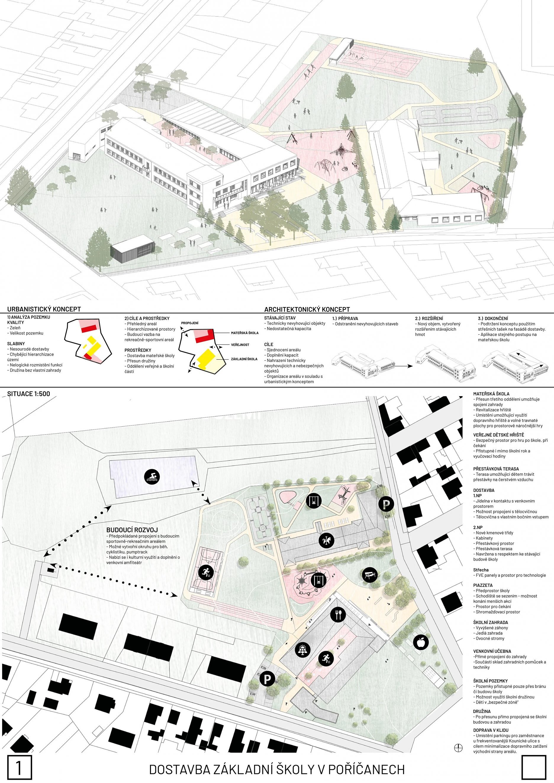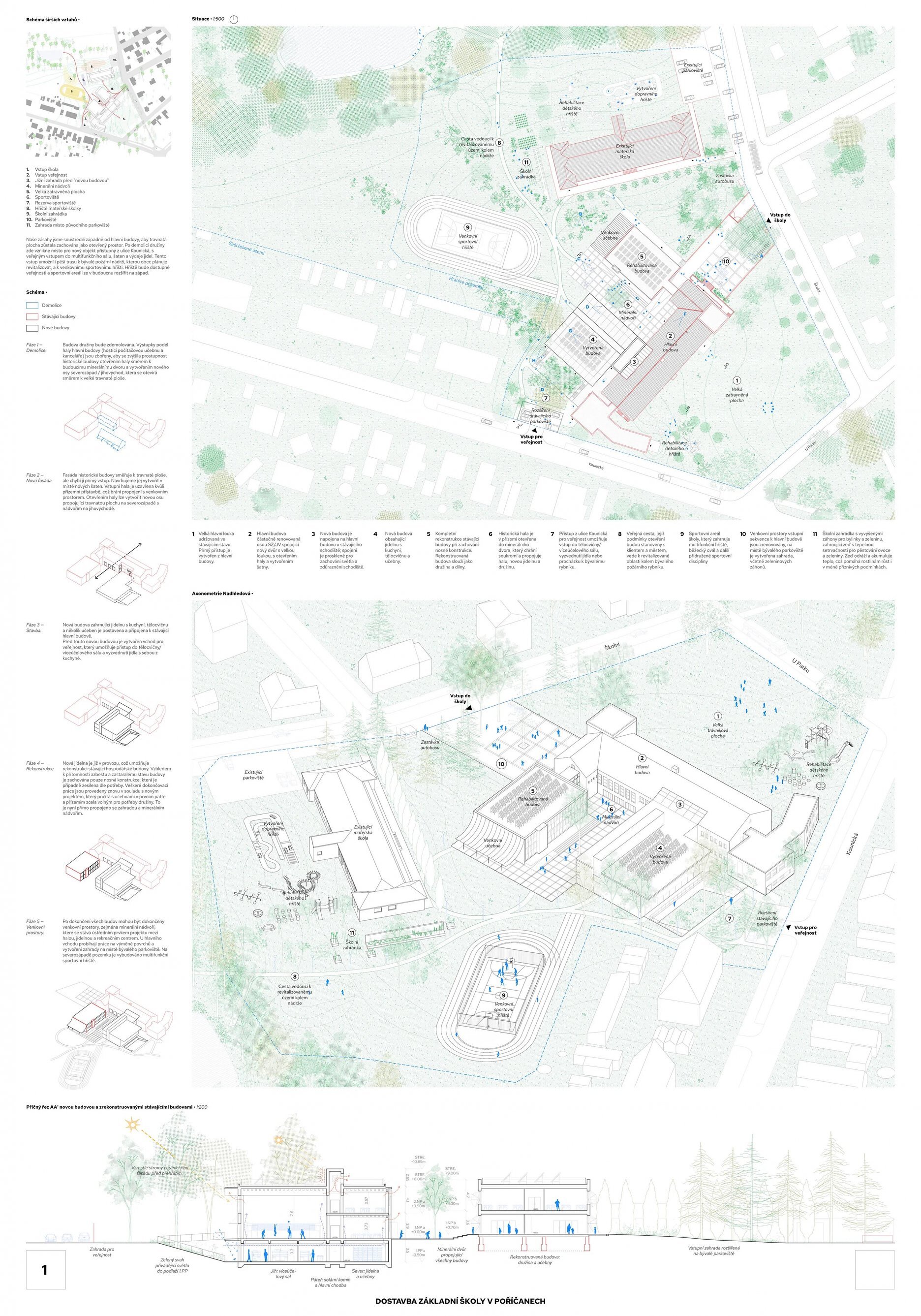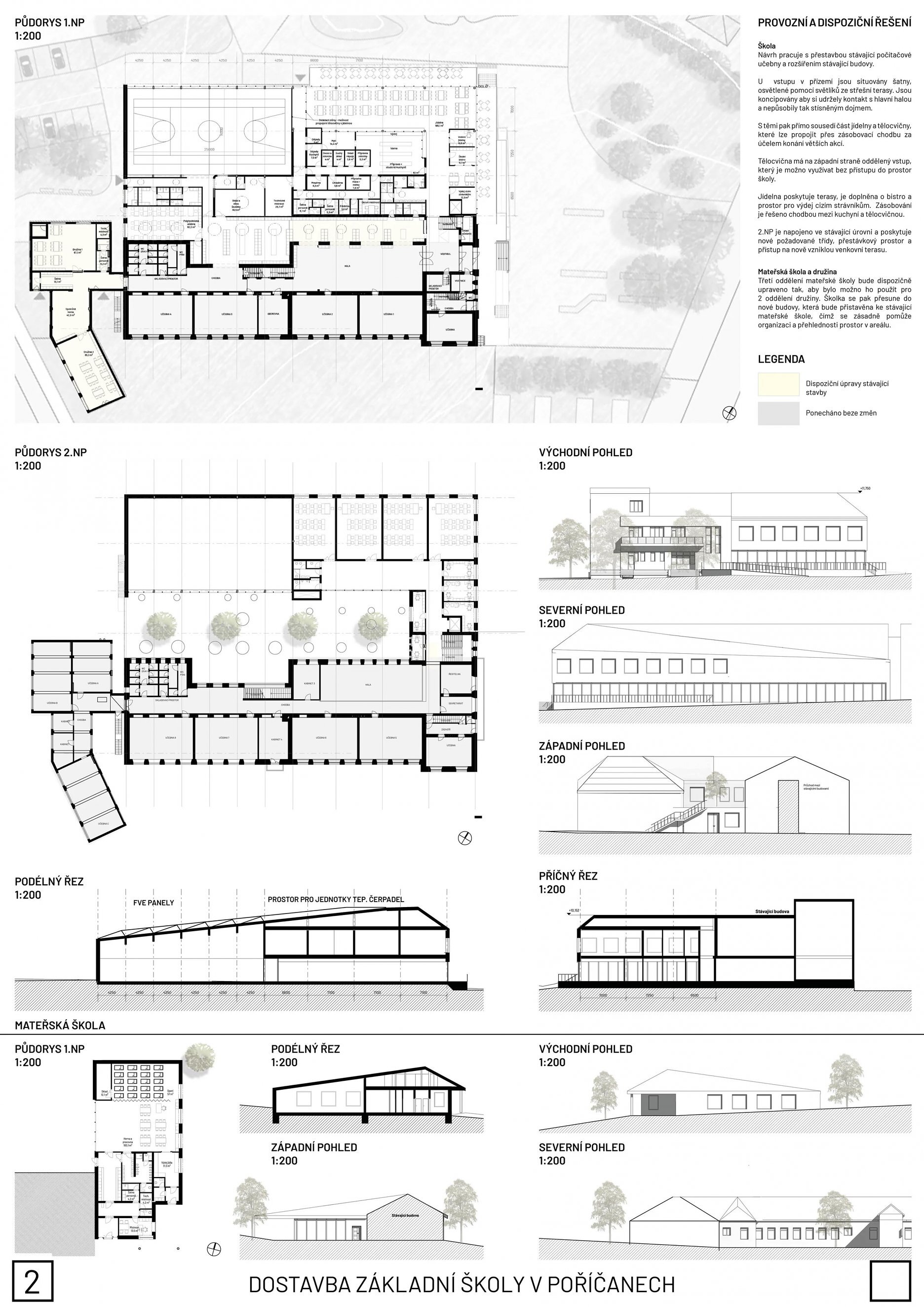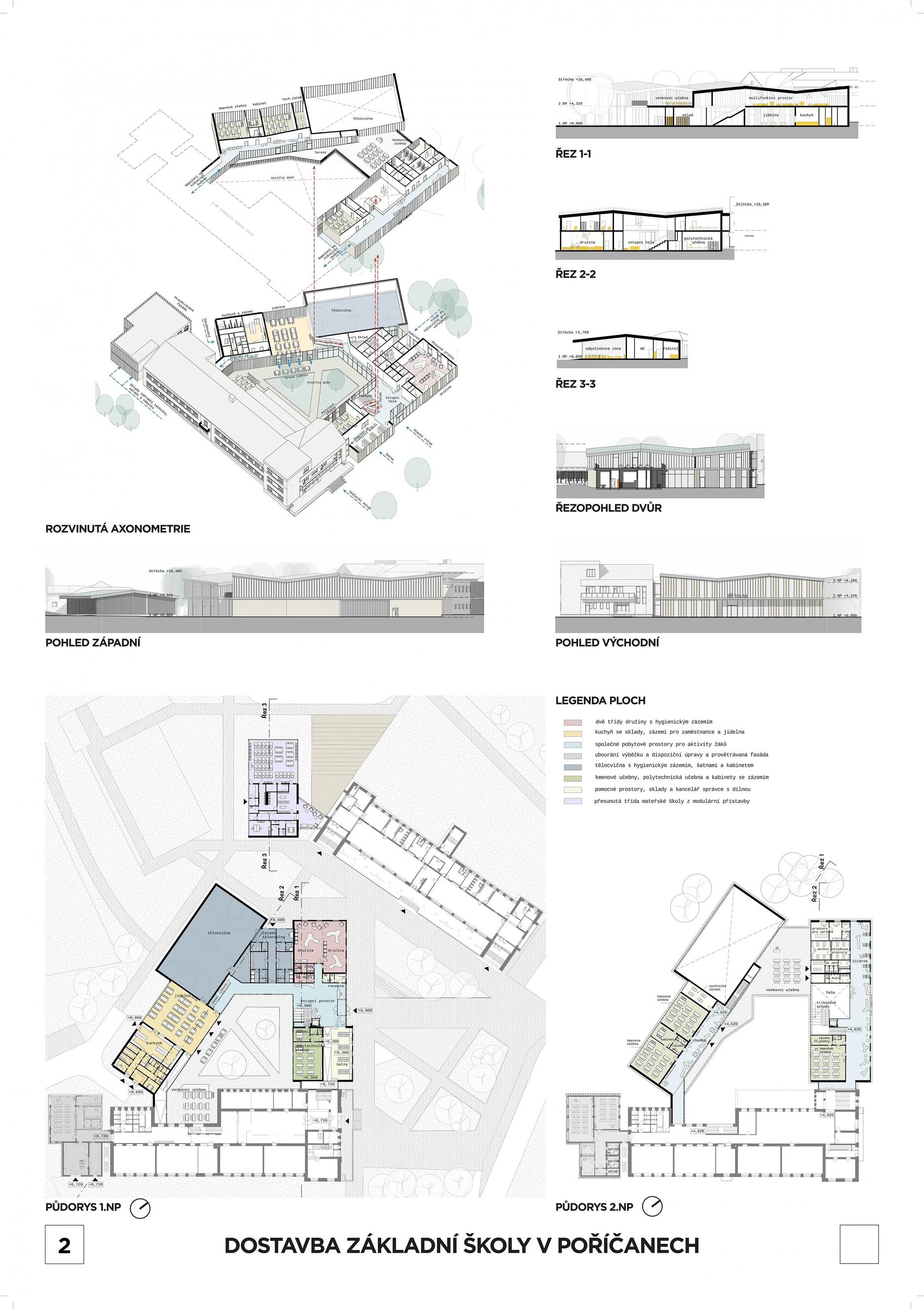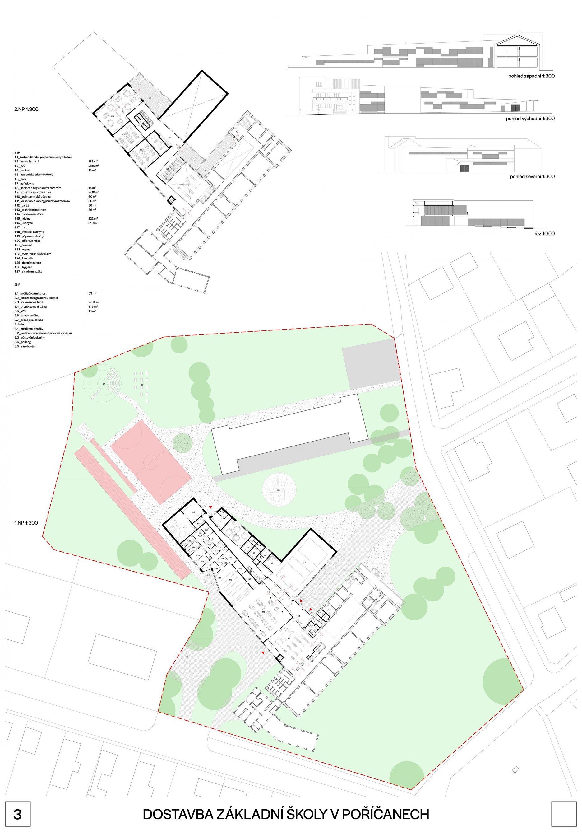 Predmetom súťaže bolo spracovanie architektonického návrhu dostavby areálu Základnej školy T. G. Masaryka a Materskej školy v stredočeskej obci Poříčany.