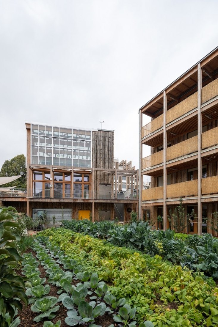 Projekt kladie tiež dôraz na vzdelávaciu funkciu a prezentovanie ekologických stavebných materiálov (drevostavba izolovaná slamou a opláštená neošetreným drevom). V rámci výskumnej časti projektu experimentovali autori s recyklovaným textilom, alebo na sucho kladenými múrmi (opätovne využitá dlažba z parížskych chodníkov)...