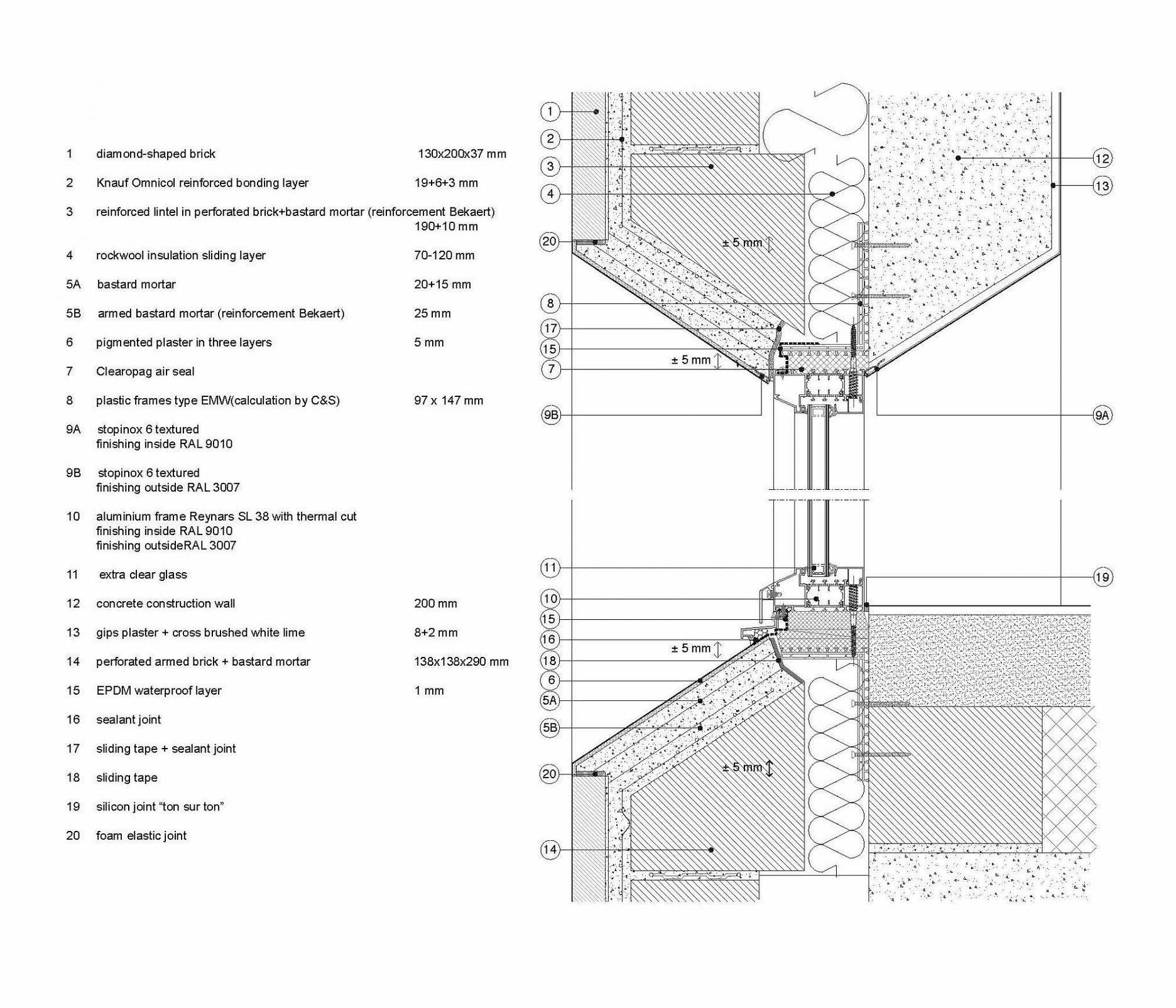 Architekti rozvoľneným pôdorysom nadväzujú na rastlú štruktúru bloku a využívajú dominantný materiál - pohľadovú pálenú tehlu. Tentokrát ale v neobvyklej forme, citujúcej podľa slov autorov rímsky opus reticulatum.