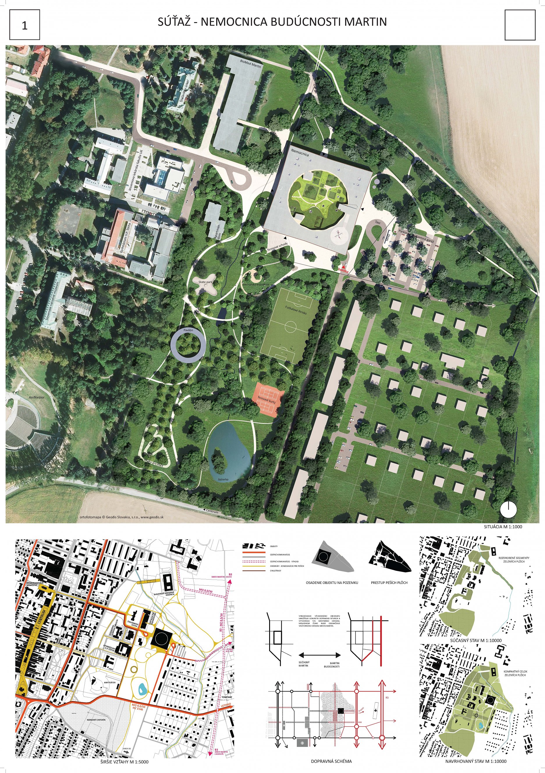 Súťaž, ktorá je zaujímavá viacerými parametrami. Predmetom súťaže bolo asi jedno z najťažších typologických zadaní - komplexné urbanistické a architektonické riešenie novej, samostatnej nemocnice (integrovanej v rámci jestvujúceho areálu JLF UK v Martine).