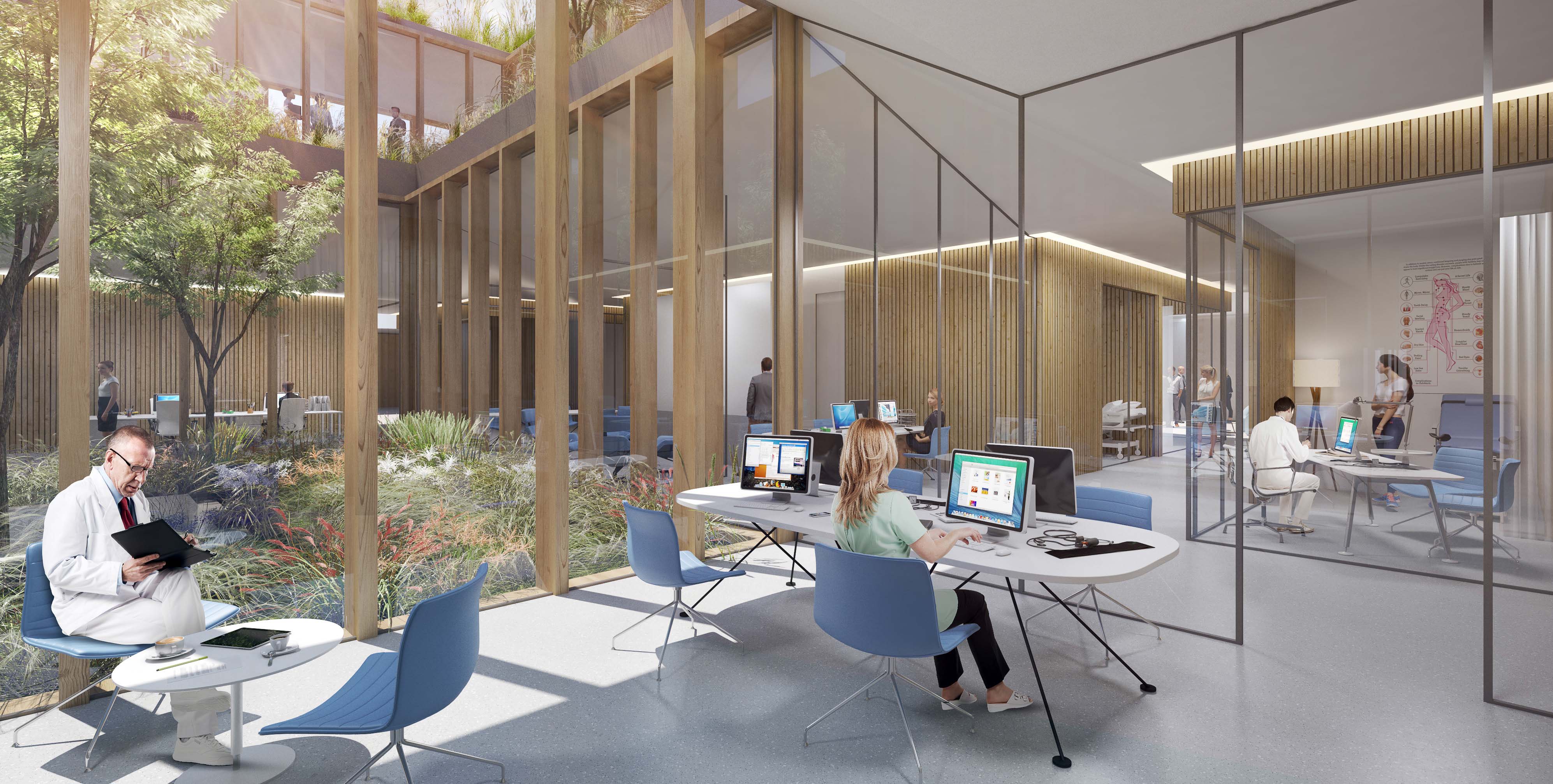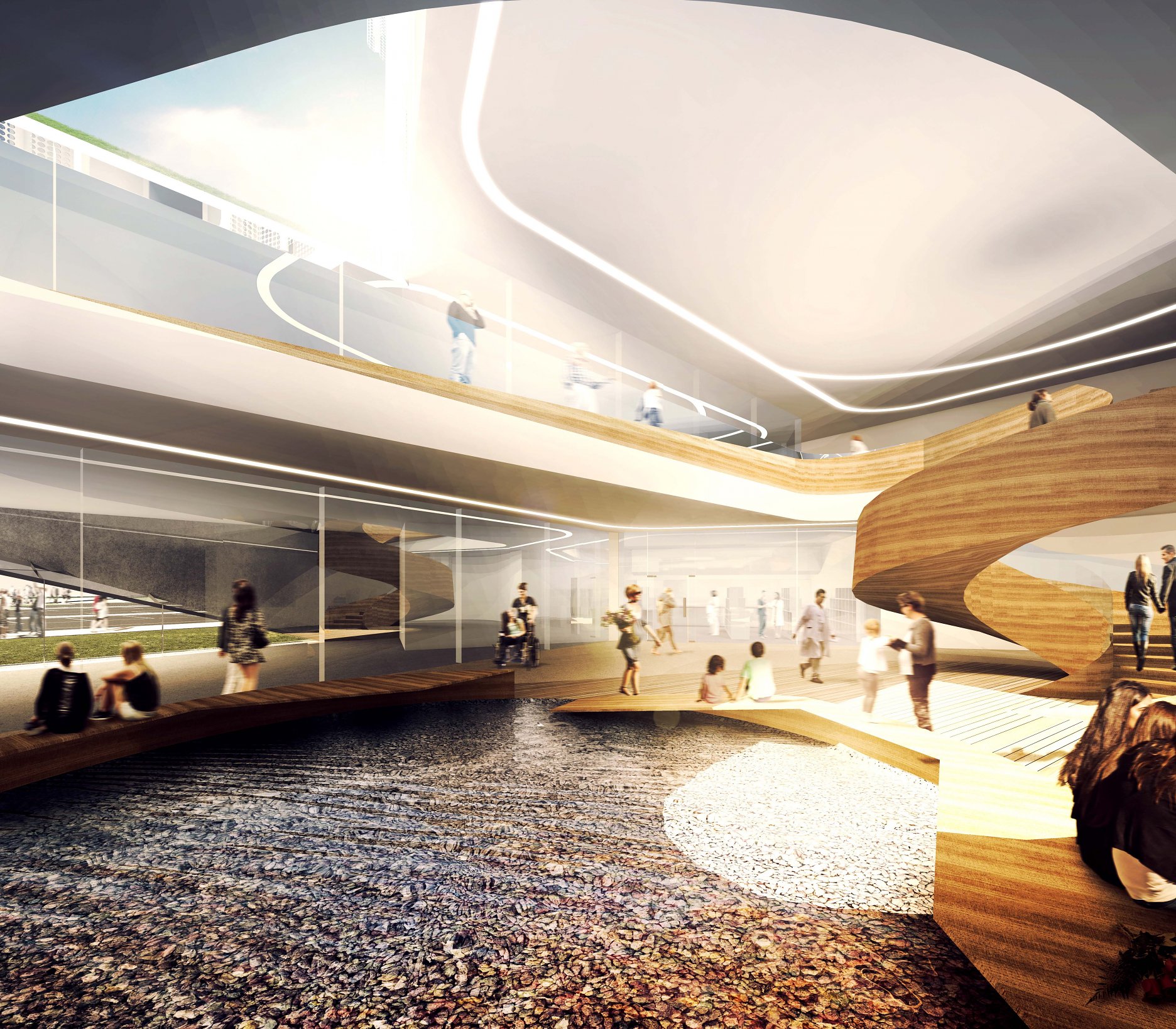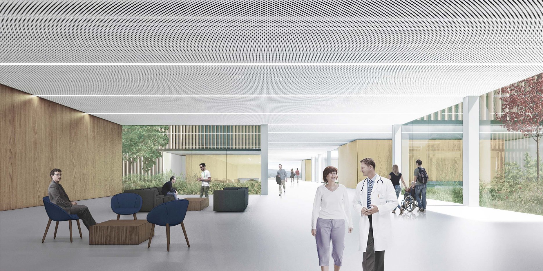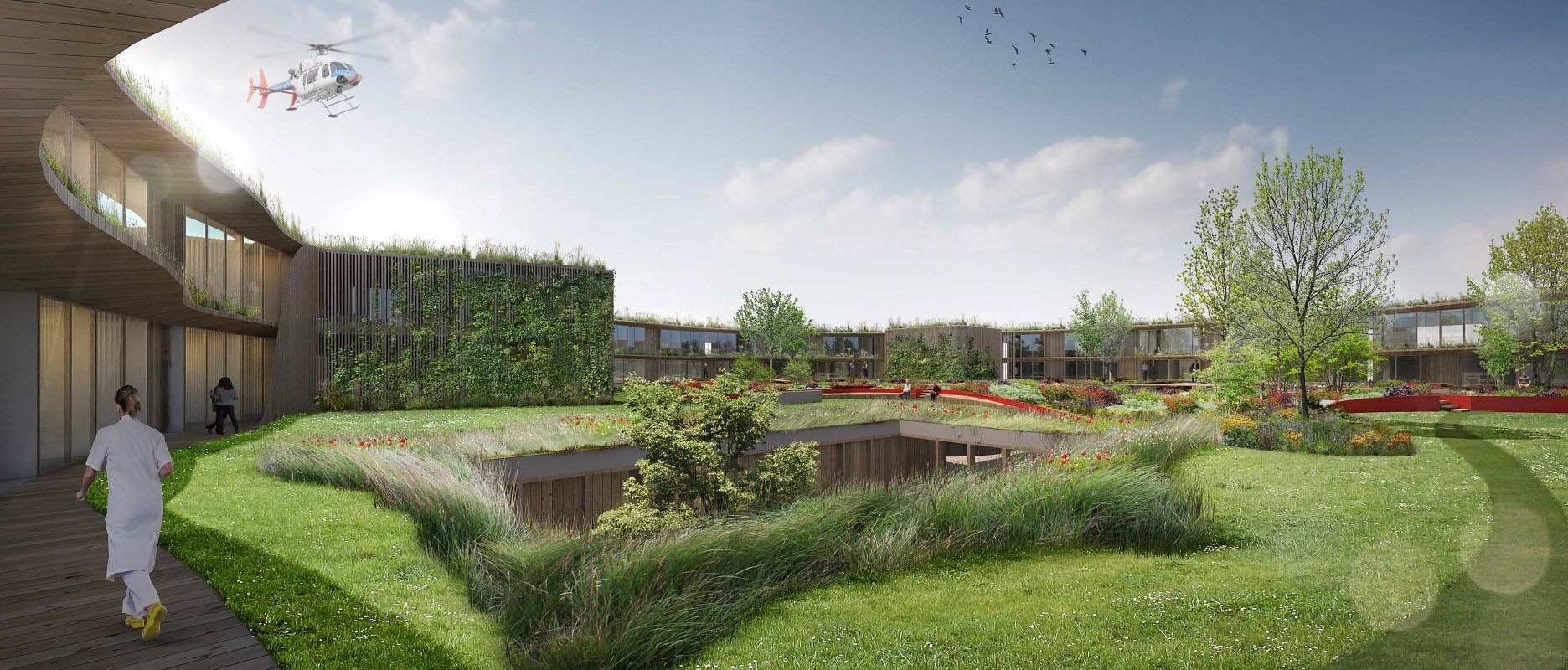 Návrh vhodným spôsobom nadväzuje na mestskú urbanistickú štruktúru a zkomponováva ju do vlastnej hmotovo-priestorovej architektonickej koncepcie. Zároveň citlivým spôsobom reaguje na prírodné prostredie. Táto previazanosť mestského a prírodného rámca je silným atribútom návrhu. Priestory a jednotlivé funkčné celky sú komponované logicky a dimenzované veľkoryso. Kvalita vnútorného prostredia je v rovnováhe s exteriérovým poňatím komplexu. Prevádzka nemocnice je navrhnutá prehľadne a účelne v súlade s požiadavkami na „nemocnicu budúcnosti“. Z hľadiska objemových a plošných kapacít ide o jeden z najnáročnejších návrhov. Modulárne riešenie konceptu umožňuje flexibilitu vnútorného usporiadania ako aj prípadnú redukciu alebo rozšírenie v budúcnosti bez zníženia kvality celkového riešenia.