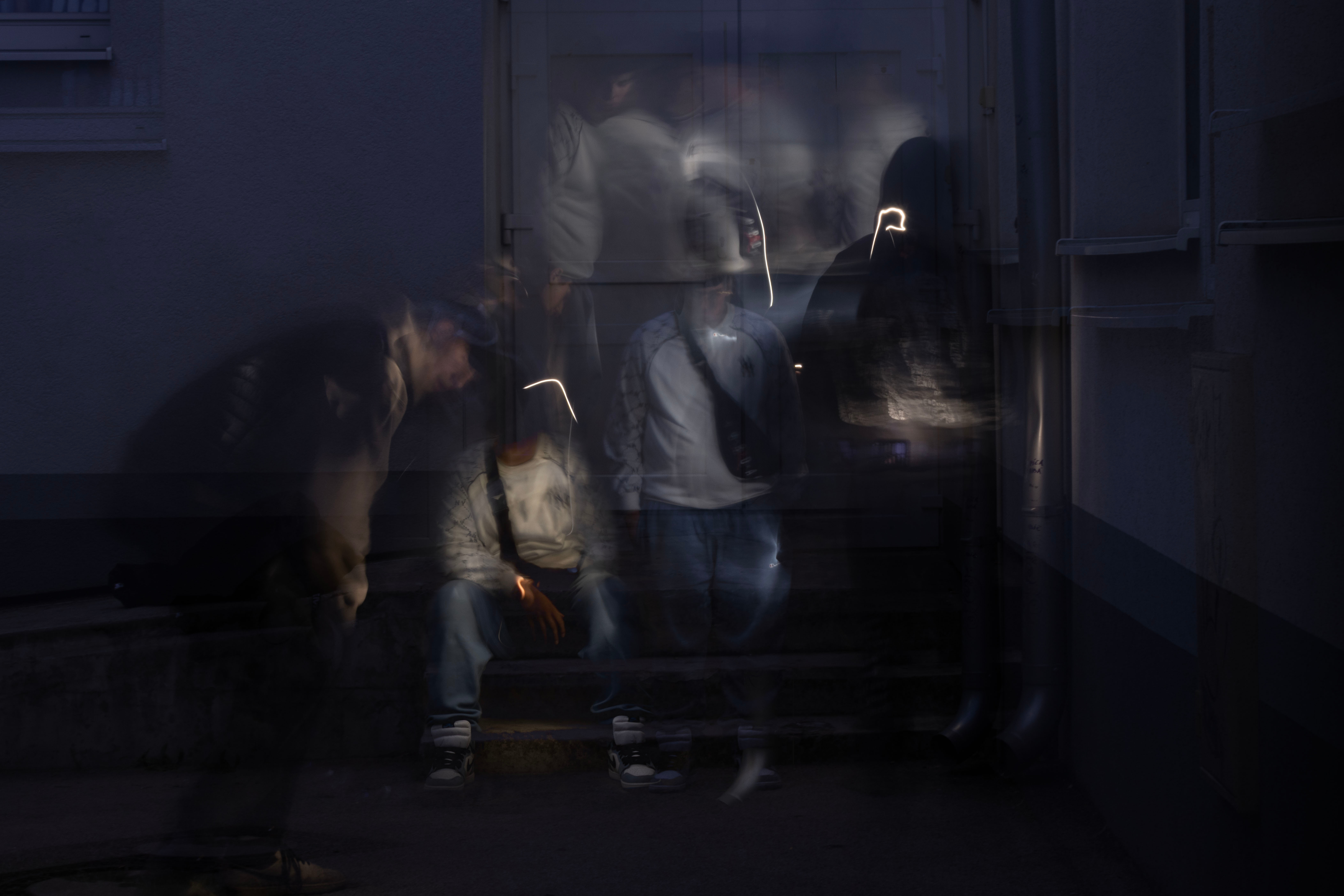 Na týchto schodoch sme sedávali celé večery, kecali sme o všeličom a smiali sa bez dôvodu. Každý rozhovor tam nechal kúsok z nás. Rozmazané postavy sme my spomienky, čo sa síce strácajú, ale nikdy úplne nezmiznú.