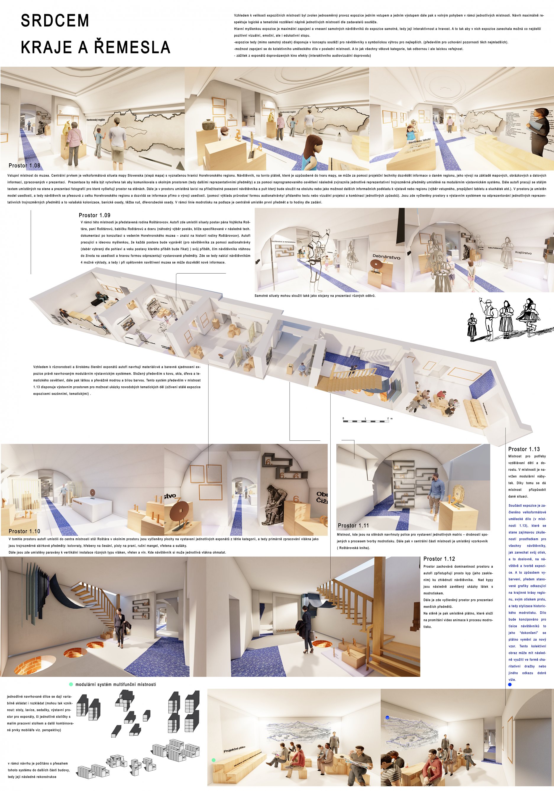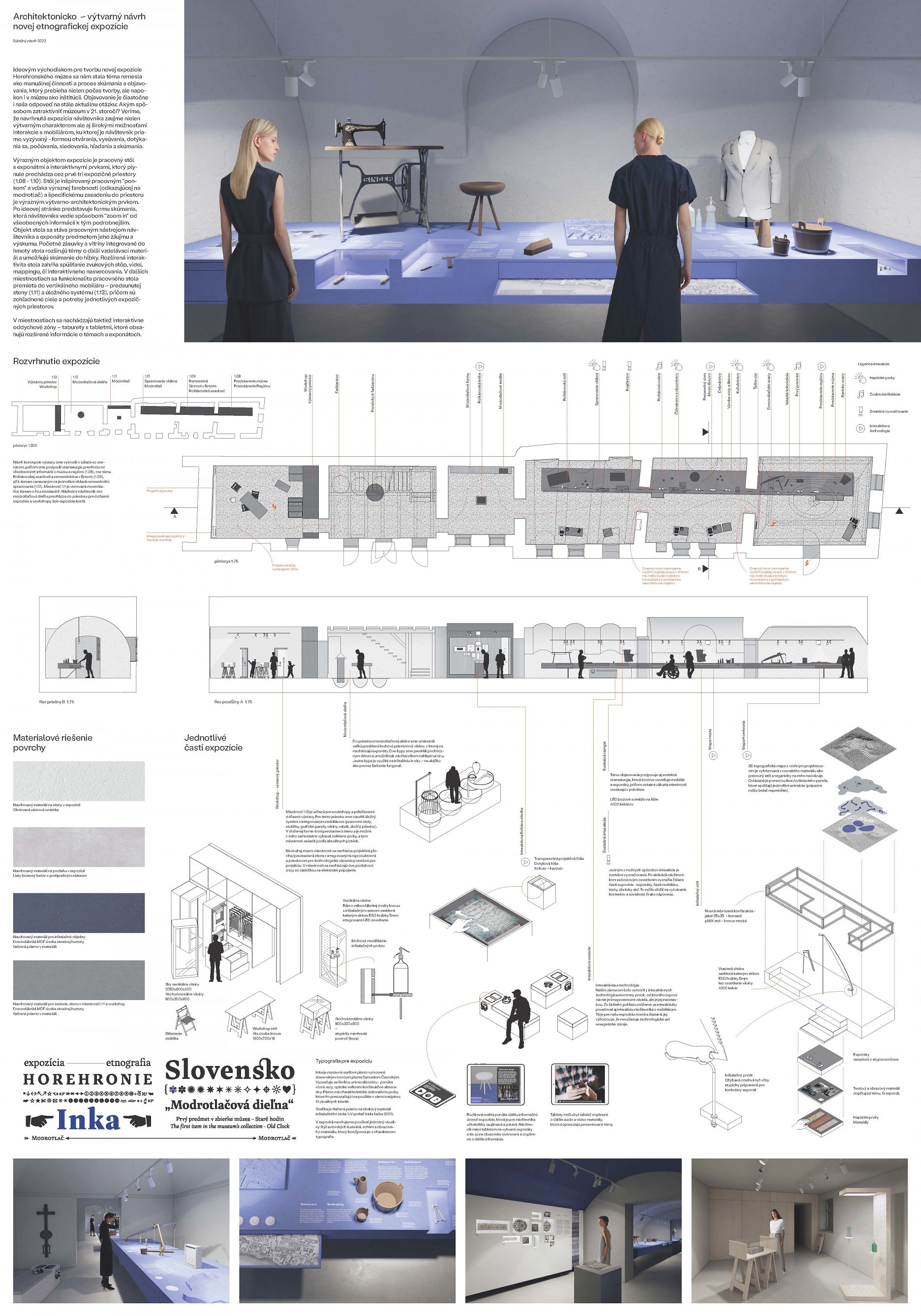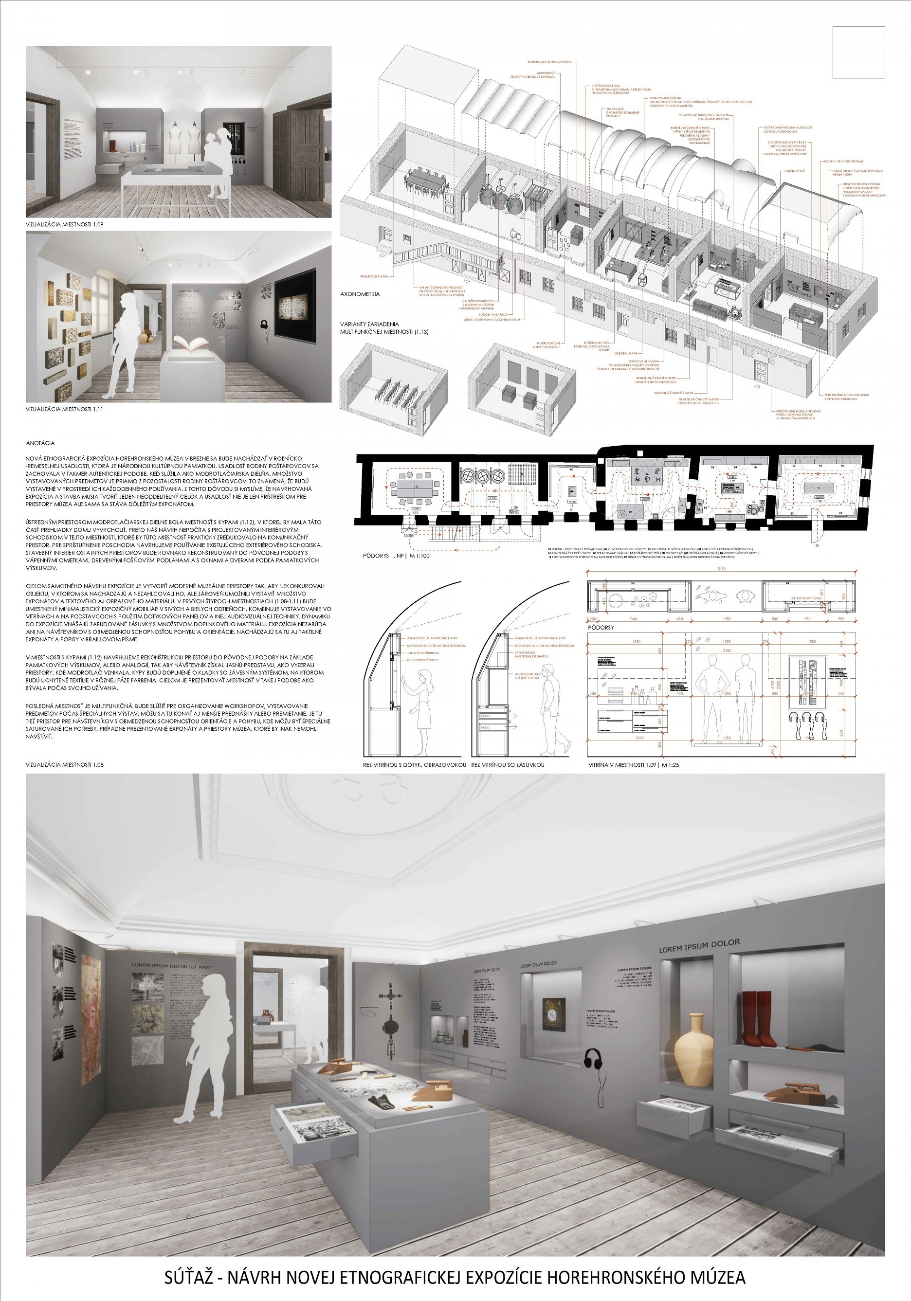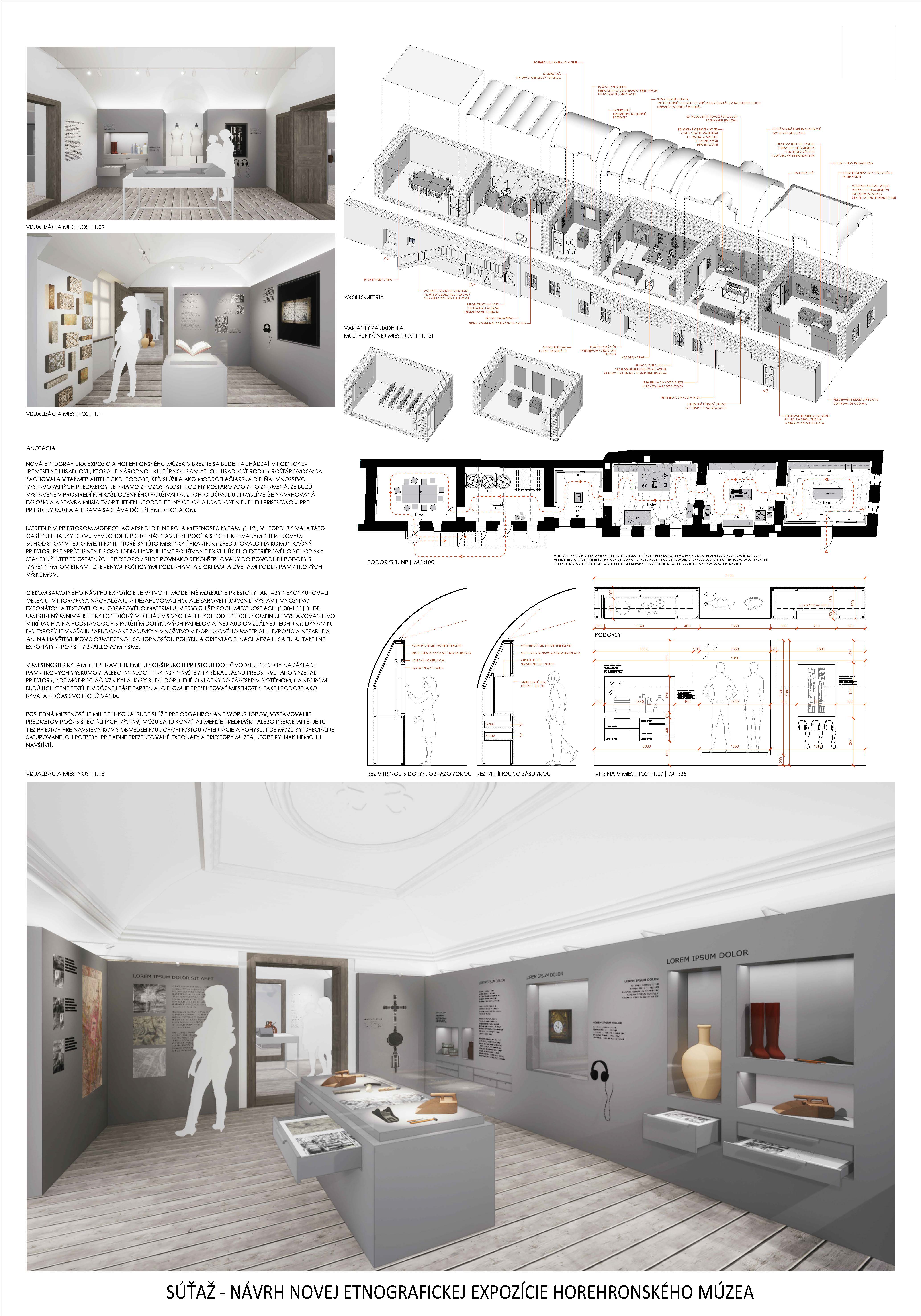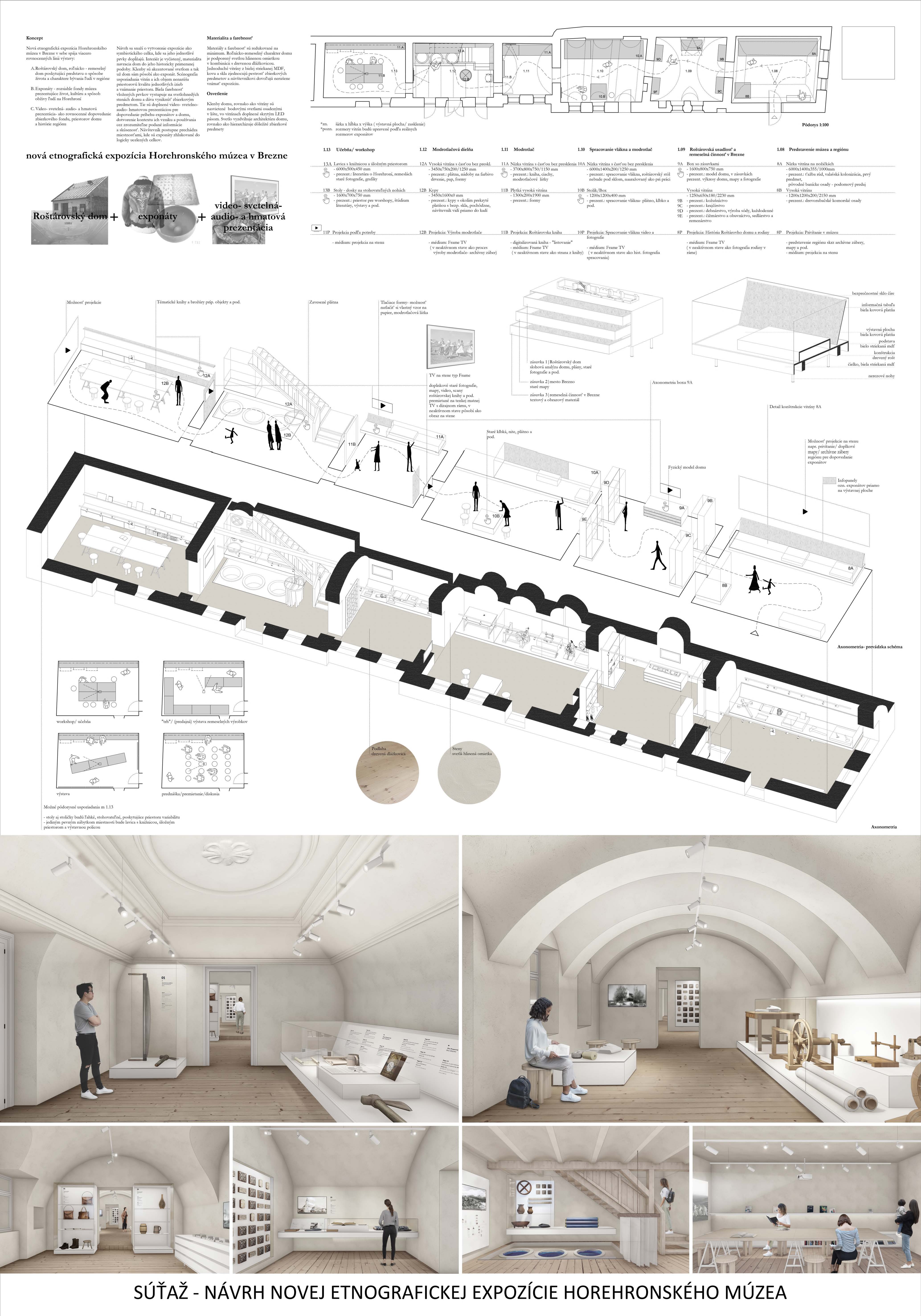 Komplexný dobre zvládnutý návrh pracujúci s výrazným dizajnom vitrín. Autorka neriešila len vizuál samotnej expozície, ale aj predpolie a dvor. Porota oceňuje v rámci návrhu expozície subtílnosť vitrín, ktoré dovoľuje použitý korten, no zároveň pochybuje o filozofickej/kontextuálnej vhodnosti tohto materiálu v etnografickej expozícií Horehronského múzea. Porota sa zhodla na tom, že zvolené architektonické riešenie vstupnej miestnosti nie je jednoznačne čitateľné, vitríny pôsobia „univerzálne” a poloha zbierkových predmetov je nejasná. Porota však oceňuje vizuálne pôsobenie fotografií v modro-bielom prevedení v kontexte s textilnou inštaláciou prezentujúcou modrotlač. Silnou stránkou návrhu je aj to, že autorka pracovala s myšlienkou kombinácie materiálov v podlahe. Porote sa tiež páčilo, že nové schodisko je tvarovo jasným odkazom na historické kypy a umožňuje im vystúpiť z tieňa pôvodného schodiska. Predmetný návrh je kvalitne spracovaný, ale svojou univerzálnosťou a nižšou mierou interaktivity dostatočne nepresvedčivý.