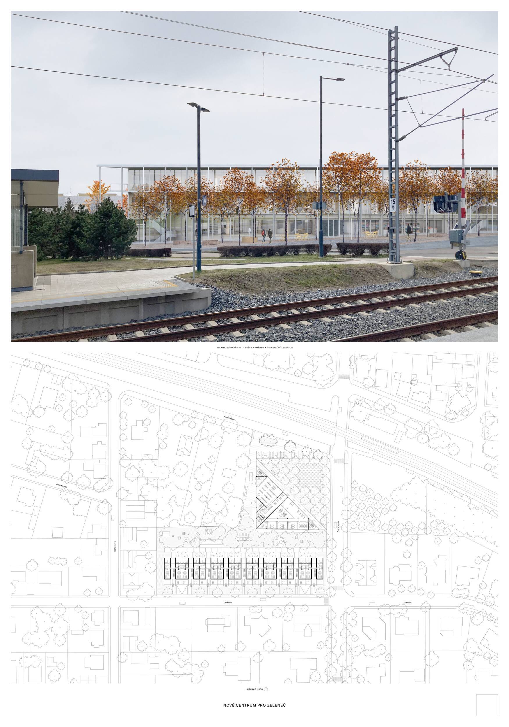 Rýchlo rastúcej obec Zeleneč na okraji Prahy v súčasnosti chýba obchodno-správne centrum. K dispozícii však má brownfieldový areál v blízkosti železničnej zastávky, ktorý má potenciál túto potrebu naplniť.
