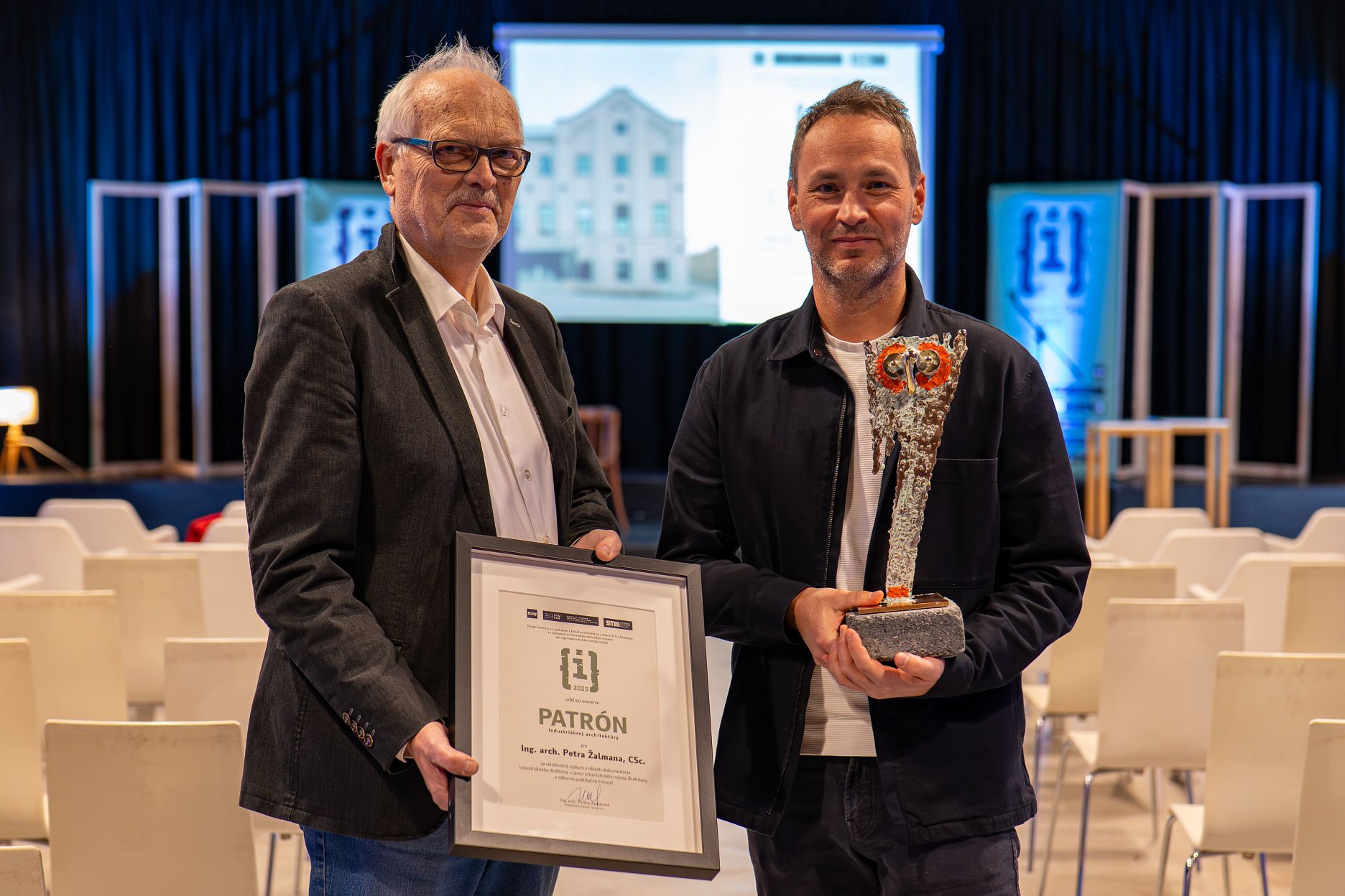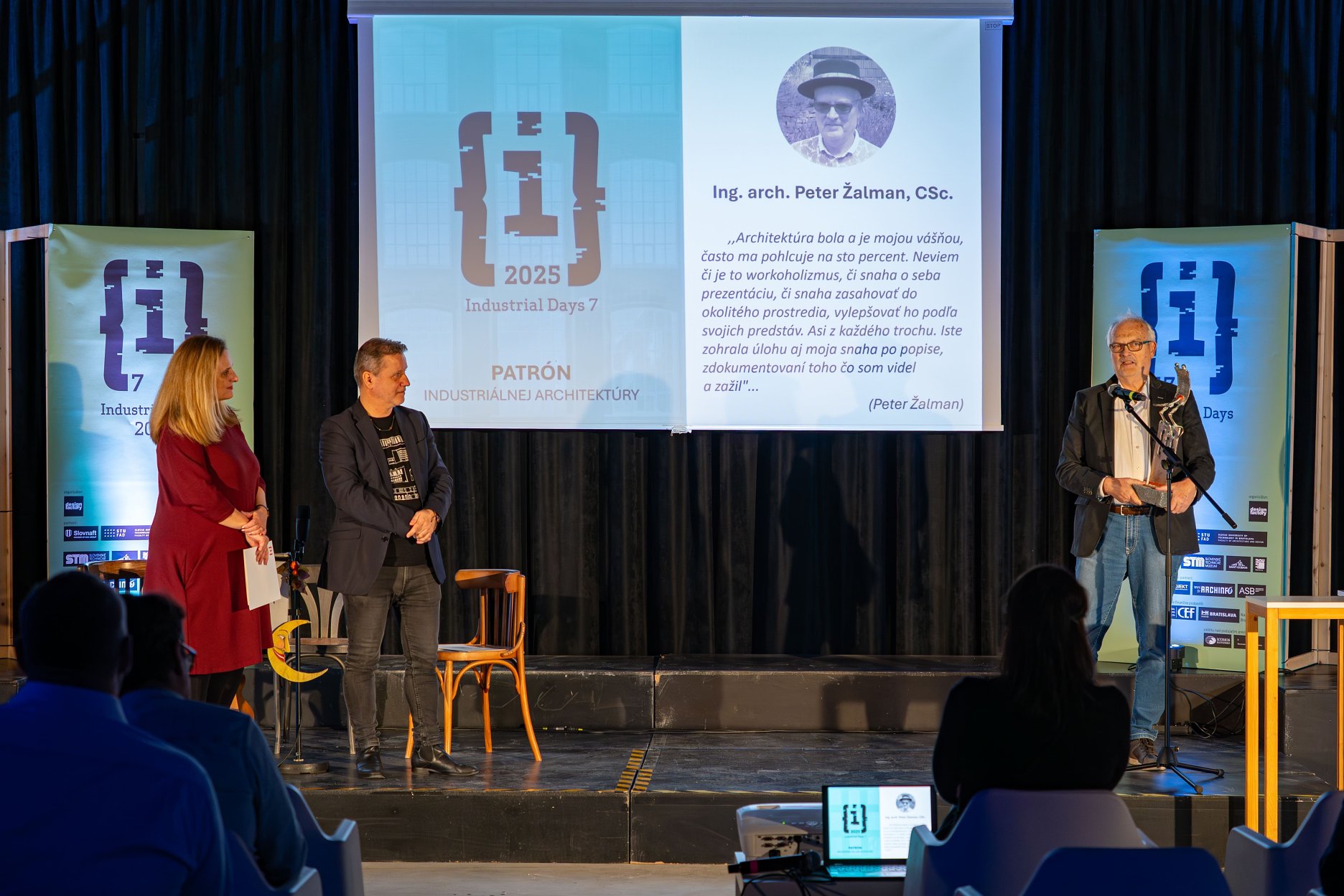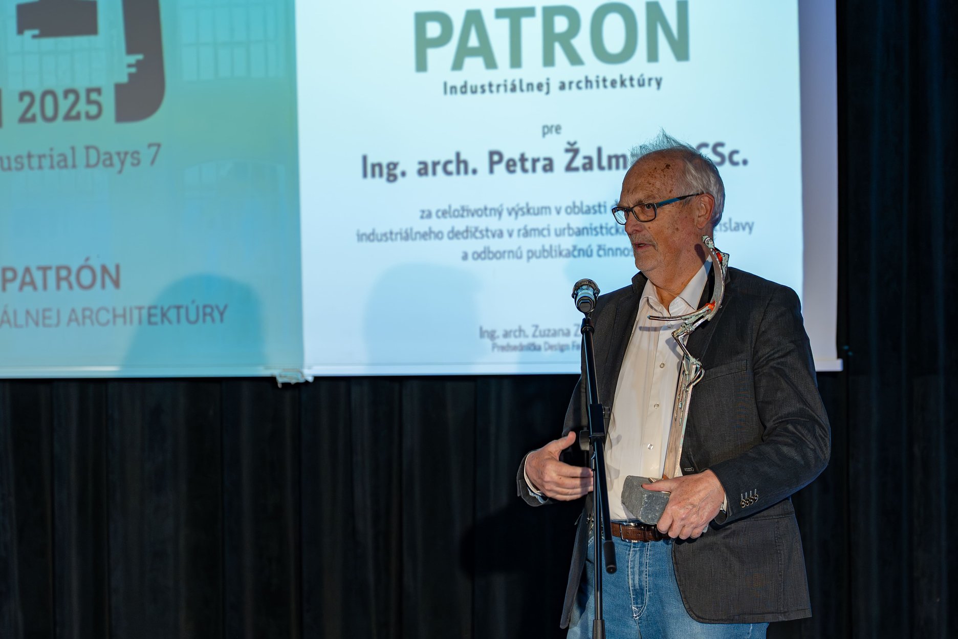 Organizátori súťaže sa pri tejto príležitosti opäť rozhodli udeliť aj ocenenie PATRÓN industriálnej architektúry. Je to cena pre osobnosť alebo organizáciu zasluhujúcu sa o osvetu a propagáciu priemyselného dedičstva. Prvou laureátkou sa v roku 2022 stala doc. Ing. Eva Kráľová, CSc. za jej celoživotnú prácu v oblasti osvety, ochrany a obnovy industriálneho dedičstva Slovenska. Vo štvrtok večer si ocenenie prevzal Ing. arch. Peter Žalman, CSc. za odbornú činnosť v oblasti výskumu industriálneho dedičstva a urbanistického vývoja Bratislavy, zároveň aj za odbornú publikačnú činnosť.