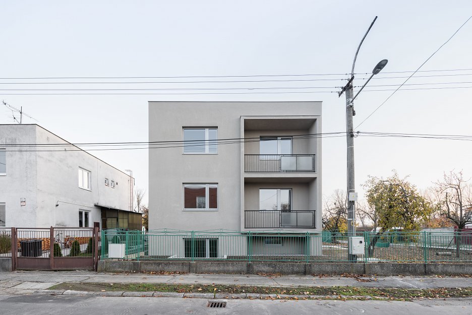 Rekonštrukcia rodinného domu, tzv. socialistickej kocky, prebehla s rešpektom k tvaroslovnému usporiadaniu pôvodnej budovy, s dôrazom na jej architektonické detaily. Zmena v uvažovaní o takýchto budovách tkvie v premene rodinného domu na malý bytový dom s tromi samostatnými bytovými jednotkami.