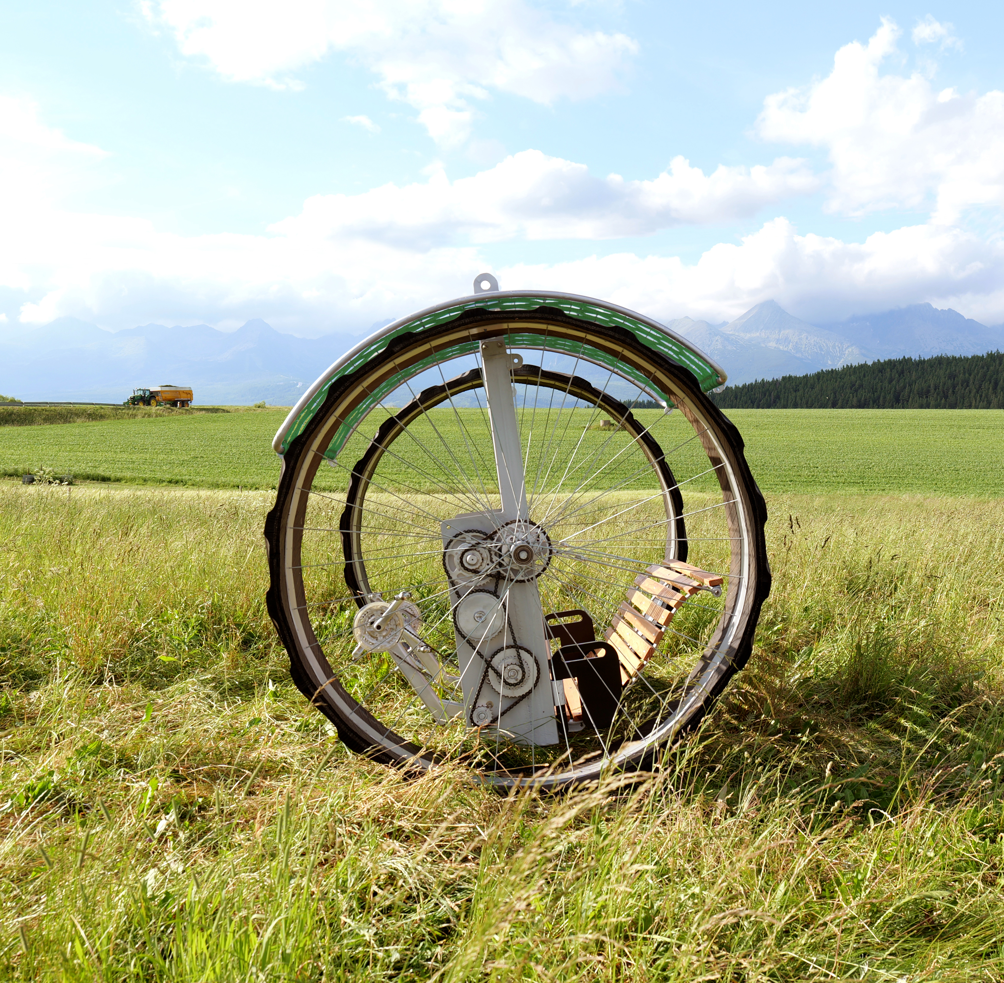 Inštalácia naznačuje, že technológia budúcnosti môže byť o symbióze. Posun vpred je možný len vtedy, keď sa stretne úcta k minulosti s odvahou formovať budúcnosť. Ak sa jedno koleso spomalí alebo zastaví, z0t0r zmení smer alebo sa začne točiť na mieste. Tento pohyb však nie je len mechanický – nesie silnú metaforu. Točenie na mieste pôdu rýchlejšie ničí. A posun vpred symbolizuje potrebu rovnováhy medzi tým, čo je nám blízke, a tým, čo nás presahuje. Agrofuturizmus nie je únikom do utópie. Je návratom k pôde. K tichu. K semienku, ktoré ešte nevie, či z neho vyrastie obyčajná púpava alebo hortenzia s revolučným potenciálom.