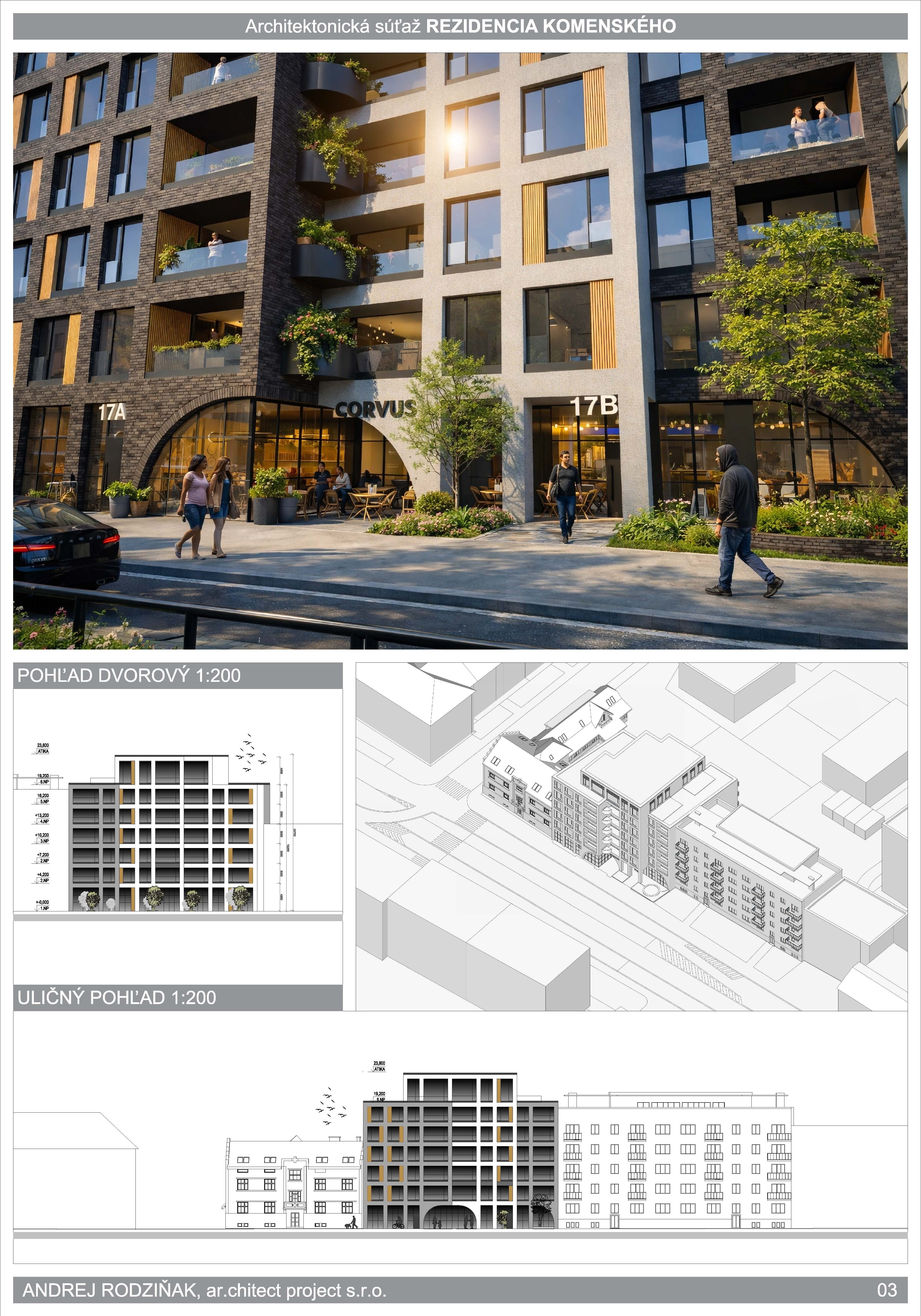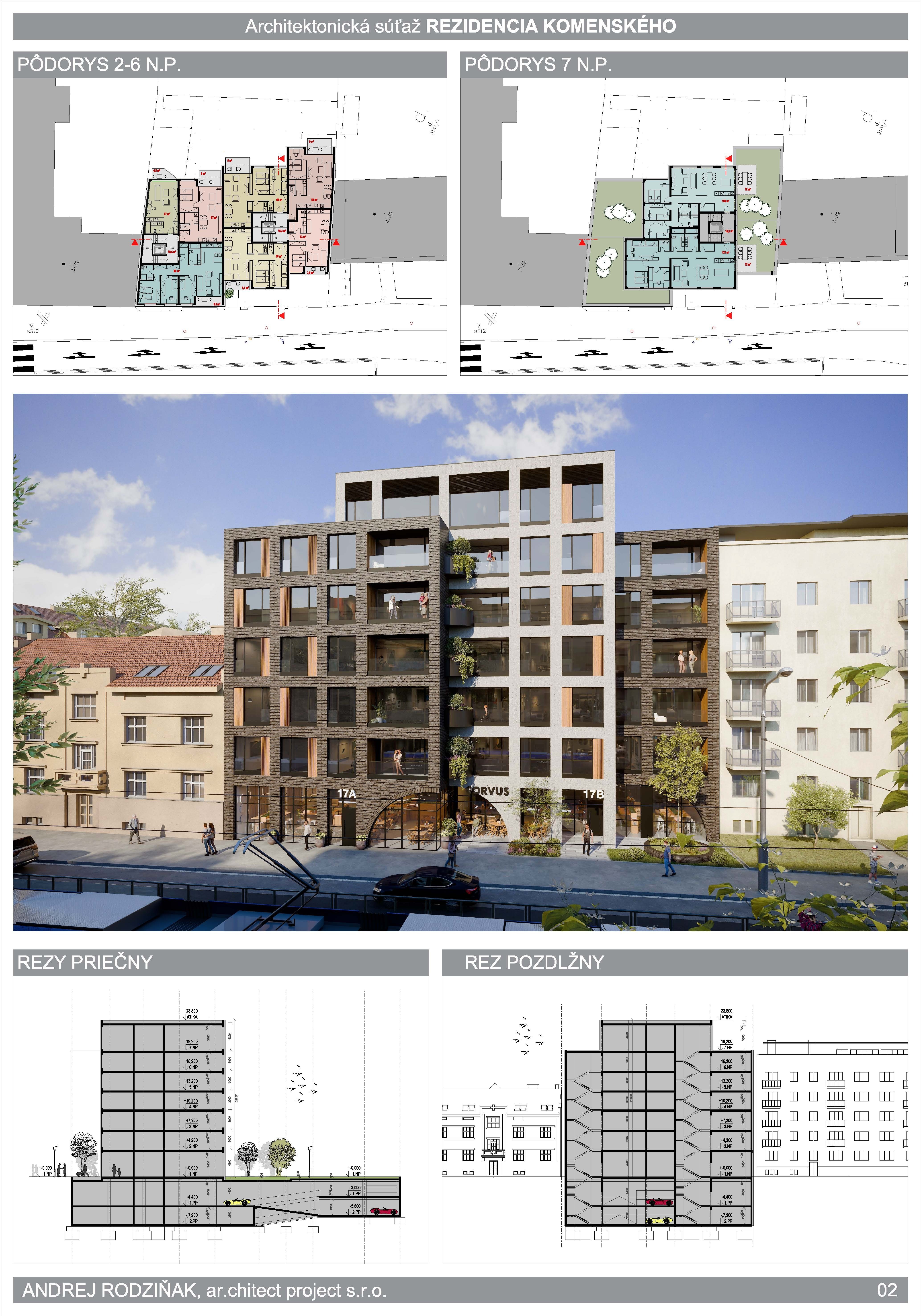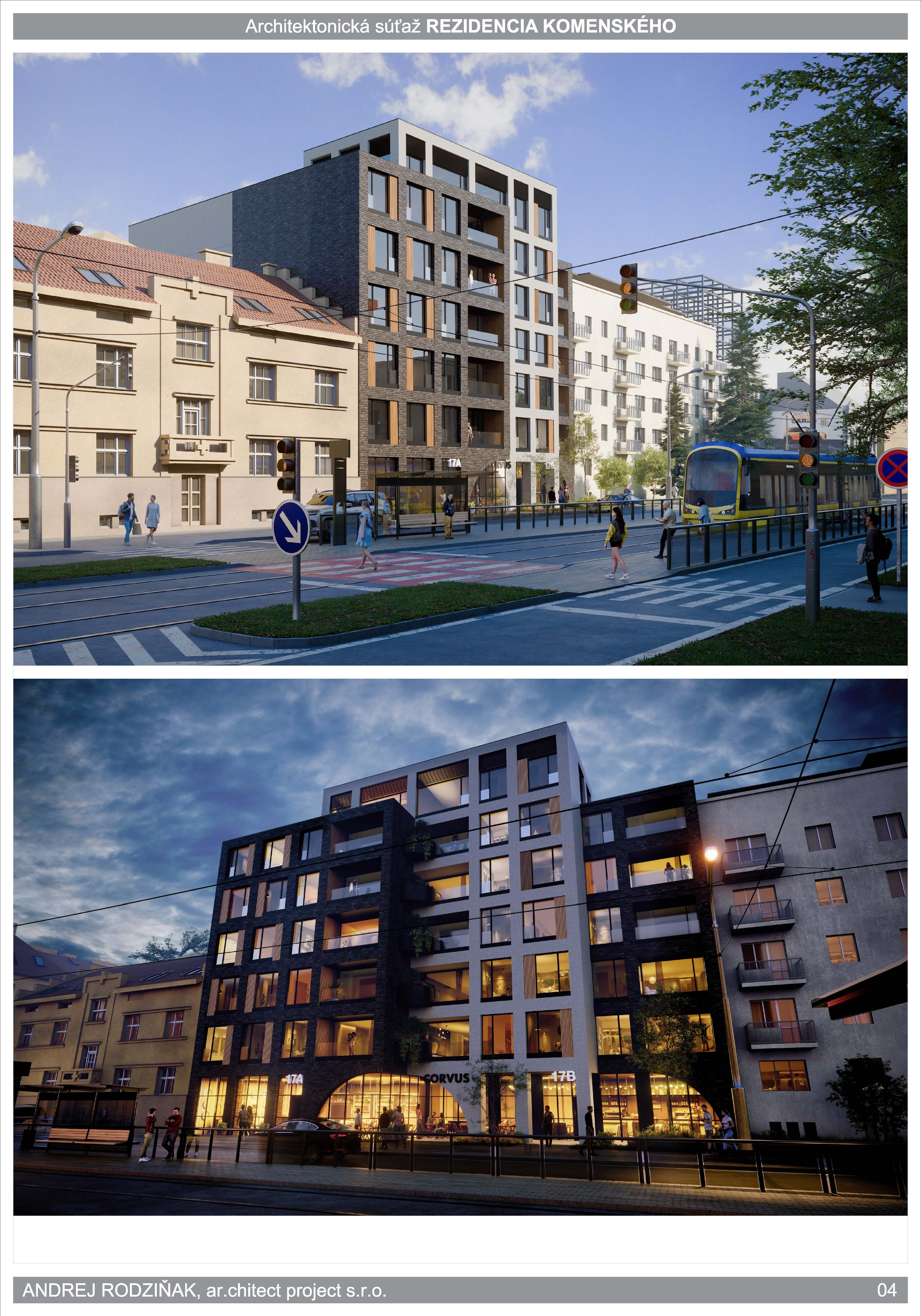 Vyhlasovateľ IMONICE INVEST, s.r.o. spustil v novembri minulého roka jednoetapovú architektonickú súťaž na návrh nového mestského bytového domu Rezidencia Komenského. Súťaž prebiehala podľa Súťažného poriadku Slovenskej komory architektov a bola overená SKA pod číslom KA-1427/2025.