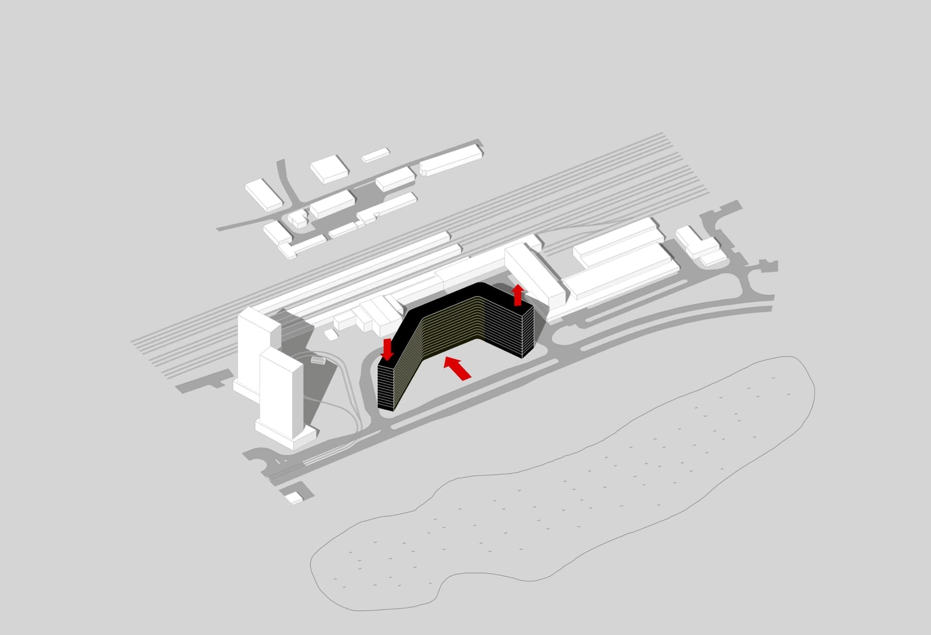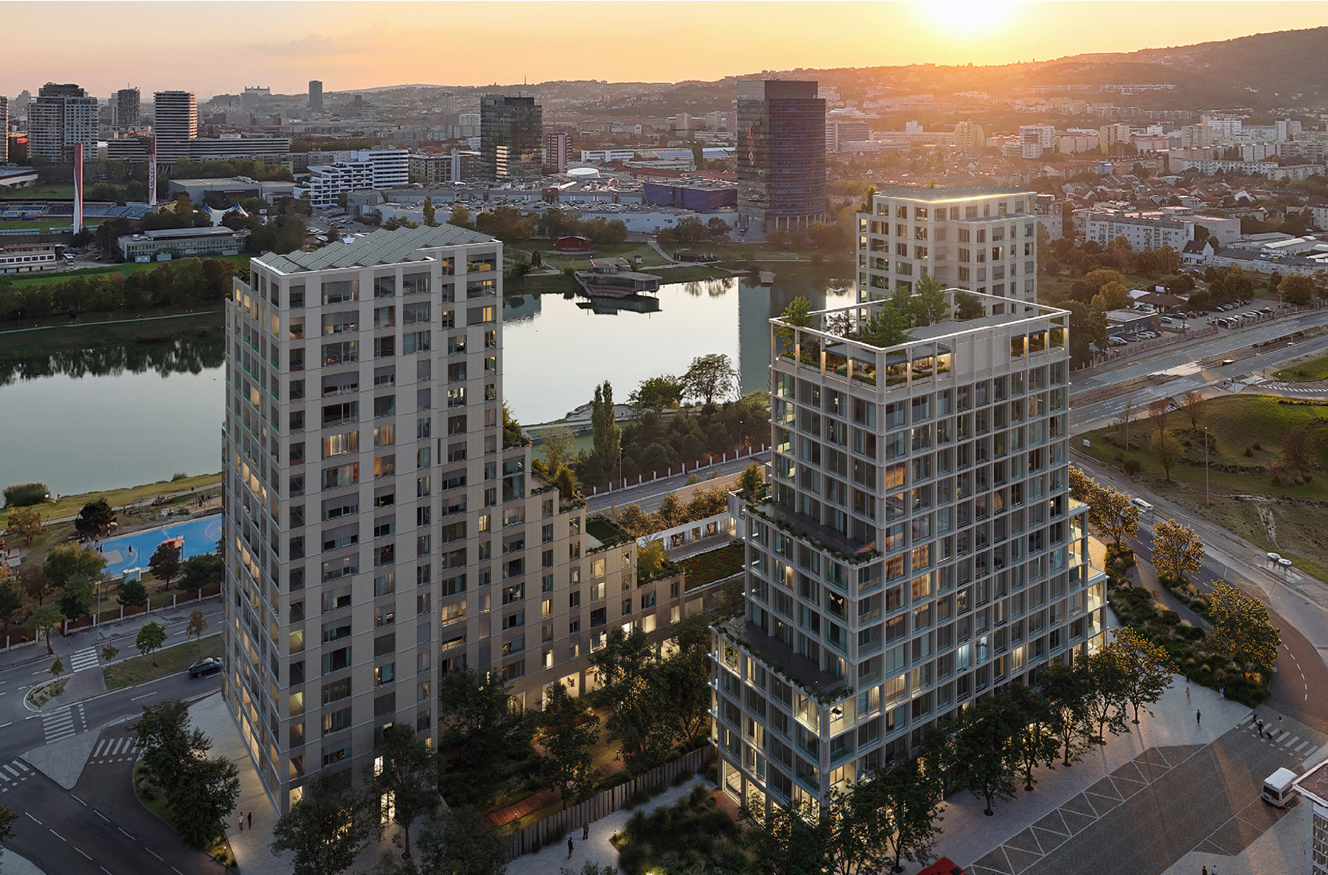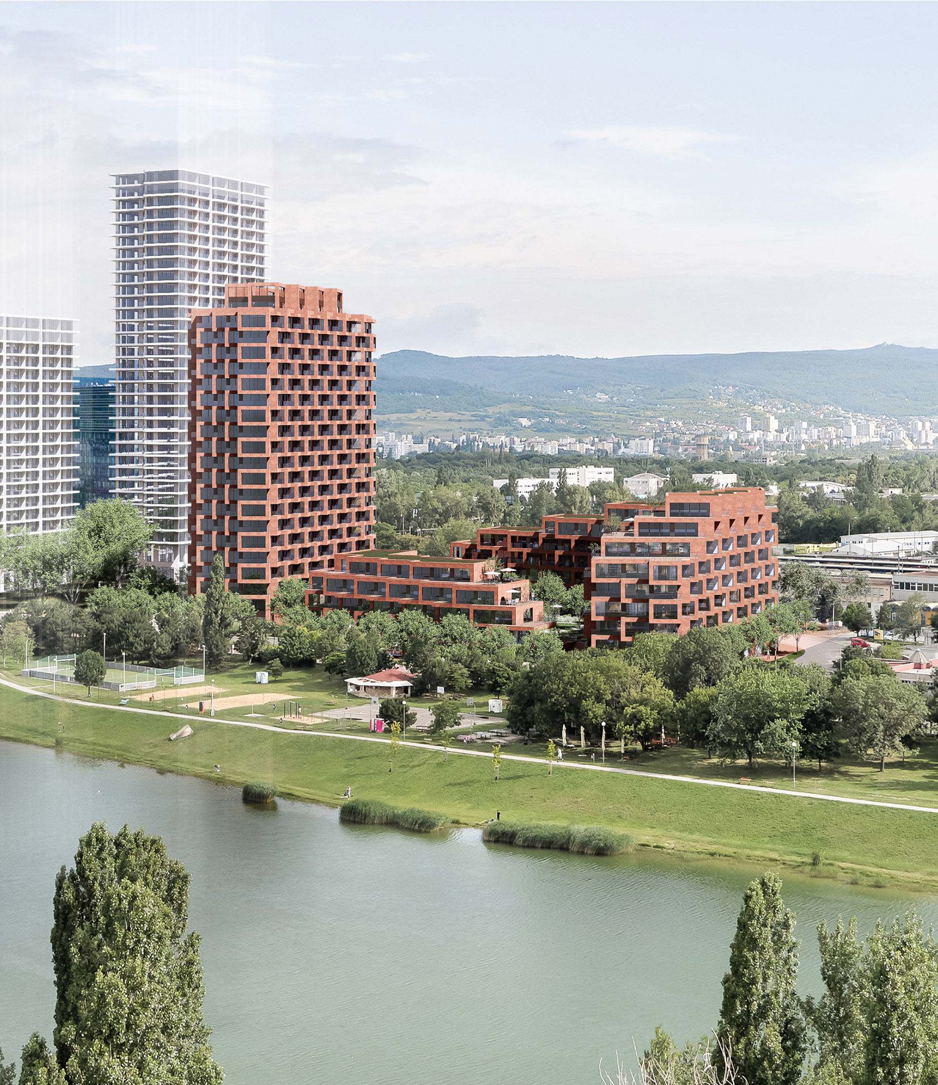 "Návrh architektonického štúdia Superatelier rešpektuje genius loci lokality a zároveň prináša rozpoznateľné riešenie. Projekt má vďaka nápaditej stupňovitej architektúre potenciál stať sa novým orientačným bodom lokality. Poskytne presvetlené bývanie s priamymi výhľadmi a premyslený záliv, ktorý budúcim obyvateľom poskytne viac súkromia, možností aj zelene... ...Organický záliv sa stáva pulzujúcim centrom projektu a je ideálnym miestom na športové aktivity, stretávanie sa, či trávenie voľného času. To všetko je možné zdvihnutím o 4,5 metra nad úrovňou chodníka. Vzniknutá hmota definuje jasné uličné profily. Tento výškový rozdiel chráni rezidenciu pred dopravou na Tomášikovej ulici, vytvára priestor pre bezpečný prechod peších či cyklistov pred budovou a rozširuje ponuku služieb lokality."