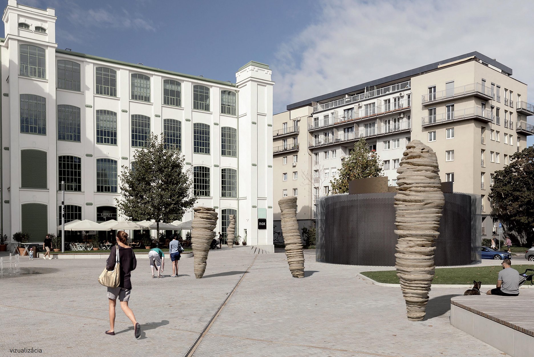 "Sochy sa stávajú súčasťou záhrad nového námestia a vzájomne ich prepájajú. Naším cieľom je, aby medzi nimi prebiehala pohybová komunikácia. Obohacujú tento priestor o príbeh minulosti a dodávajú mu jedinečnú atmosféru. Dielo na námestí je rozvrhnuté tak, aby prerozprávalo cestu po pamäti robotníčok z továrne,“ vysvetľujú autori v popise svojho súťažného návrhu.