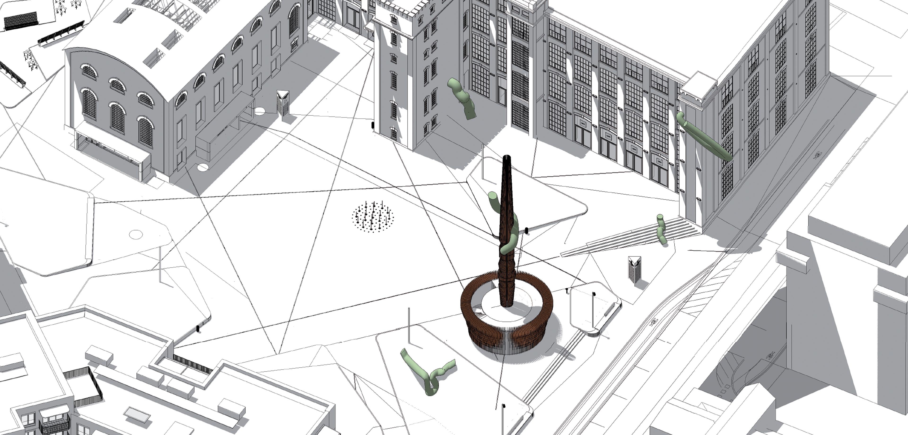 Umelecké dielo doplní verejný priestor projektu ZWIRN, ktorý vzniká na území bývalej Bratislavskej cvernovej továrne a ktorého podoba tiež vzišla z architektonickej súťaže. Tú v roku 2016 vyhral ateliér Compass Architekti s konceptom troch rezidenčných blokov obklopujúcich uzavreté dvory a dominantným verejným priestorom v podobe námestia pri zrekonštruovanej Národnej kultúrnej pamiatke Pradiareň 1900.