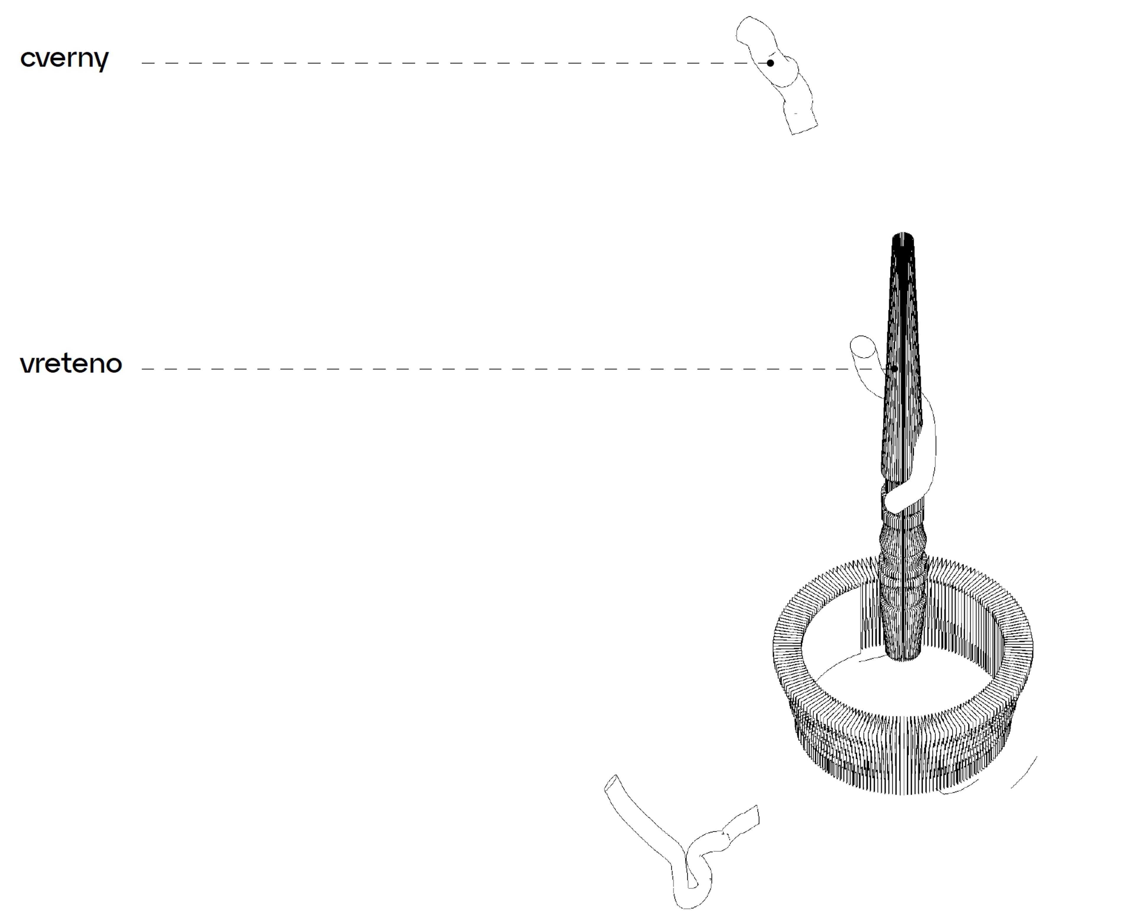 Rotačný pohyb, ktorý mechanizmus vykonáva zároveň odkazuje na pohyb pri navíjaní nití na cievky. Inšpiráciou pre autorov tak bol aspekt fyzickej práce a jej kreatívny prínos pre rozvoj cvernovej továrne po celú jej minulosť. Jednotlivé objekty symbolizujú rôzne príbehy. Ten pod názvom "tichá drina" napríklad poukazuje na premenlivosť a dočasnosť ručnej práce, ďalšia pod názvom "nerovnováha" zas odkazuje na nerovnováhu finančného aj spoločenského ohodnotenia ženskej práce.