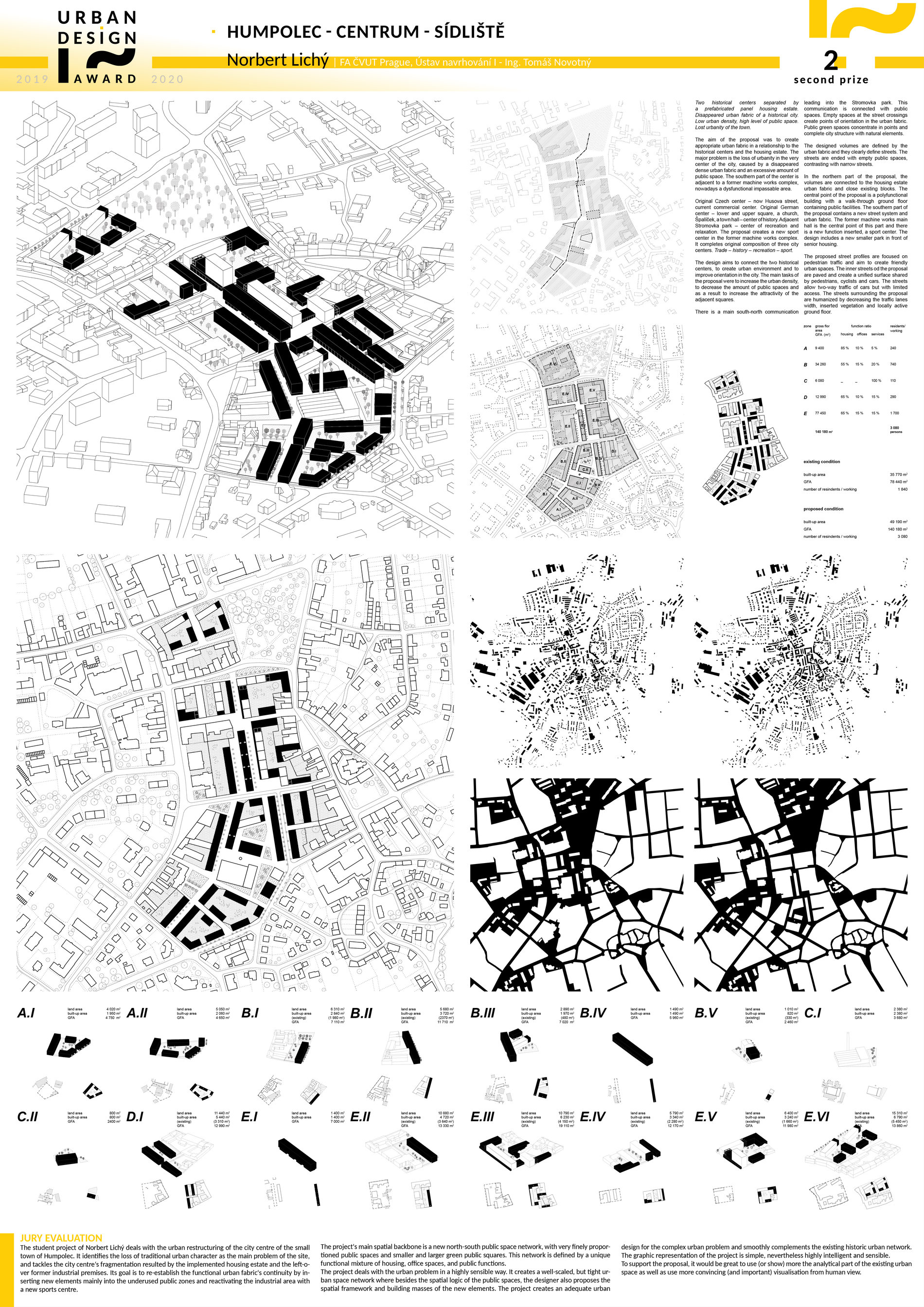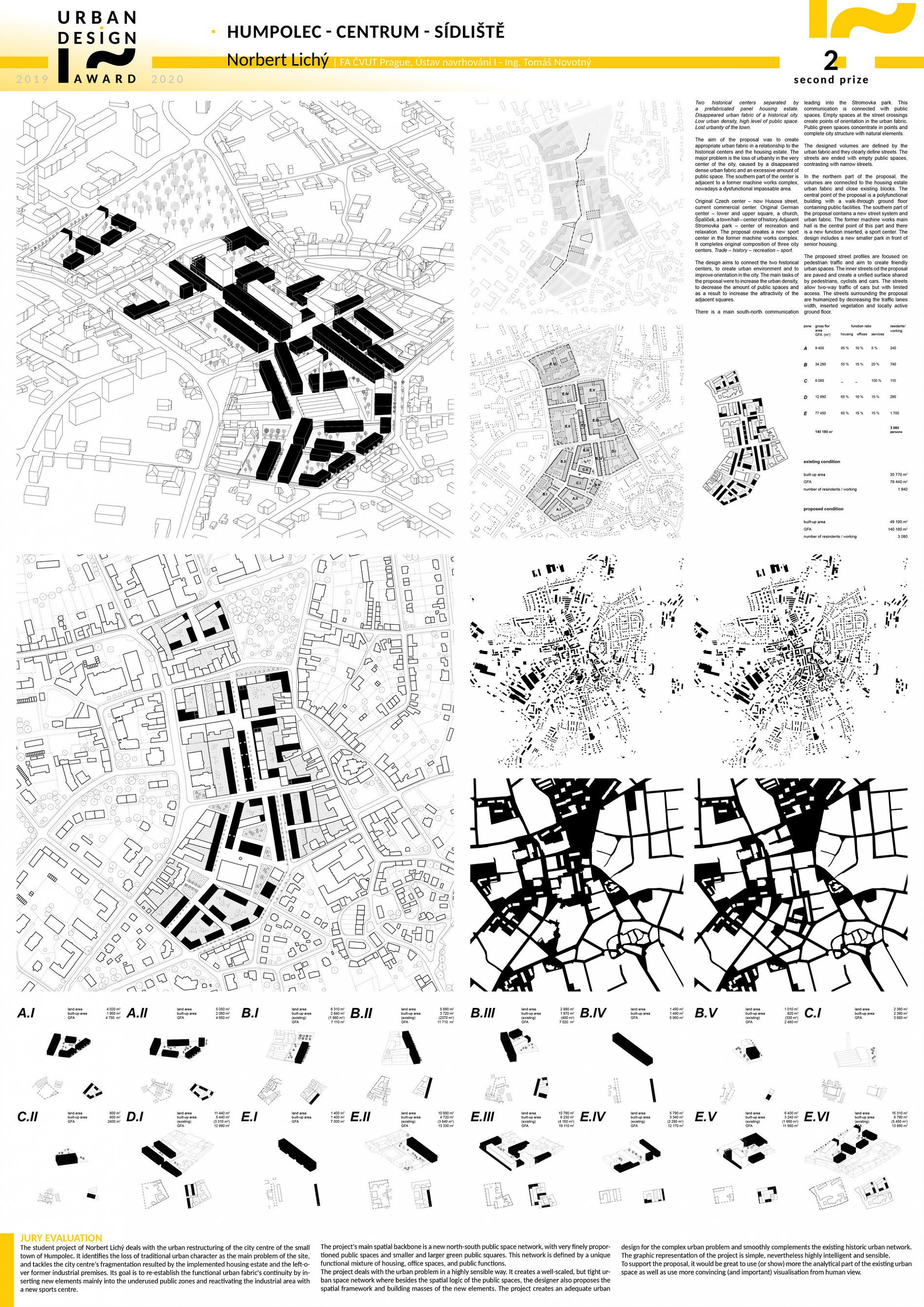 Studentský projekt Norberta Lichého se zabývá urbanistickou restrukturalizací centra města Humpolec. Identifikuje ztrátu tradičního městského charakteru jako hlavní problém lokality a řeší fragmentaci centra města způsobenou realizovaným sídlištěm a zbylými bývalými průmyslovými areály. Jejím cílem je obnovit kontinuitu funkční městské struktury zavedením nových prvků zejména do málo využívaných veřejných zón a reaktivací průmyslového areálu s novým sportovním centrem.