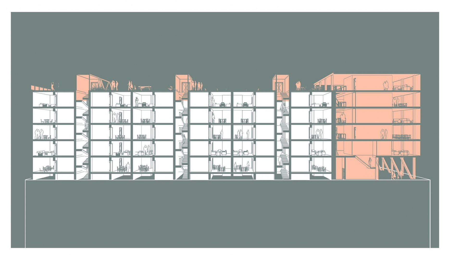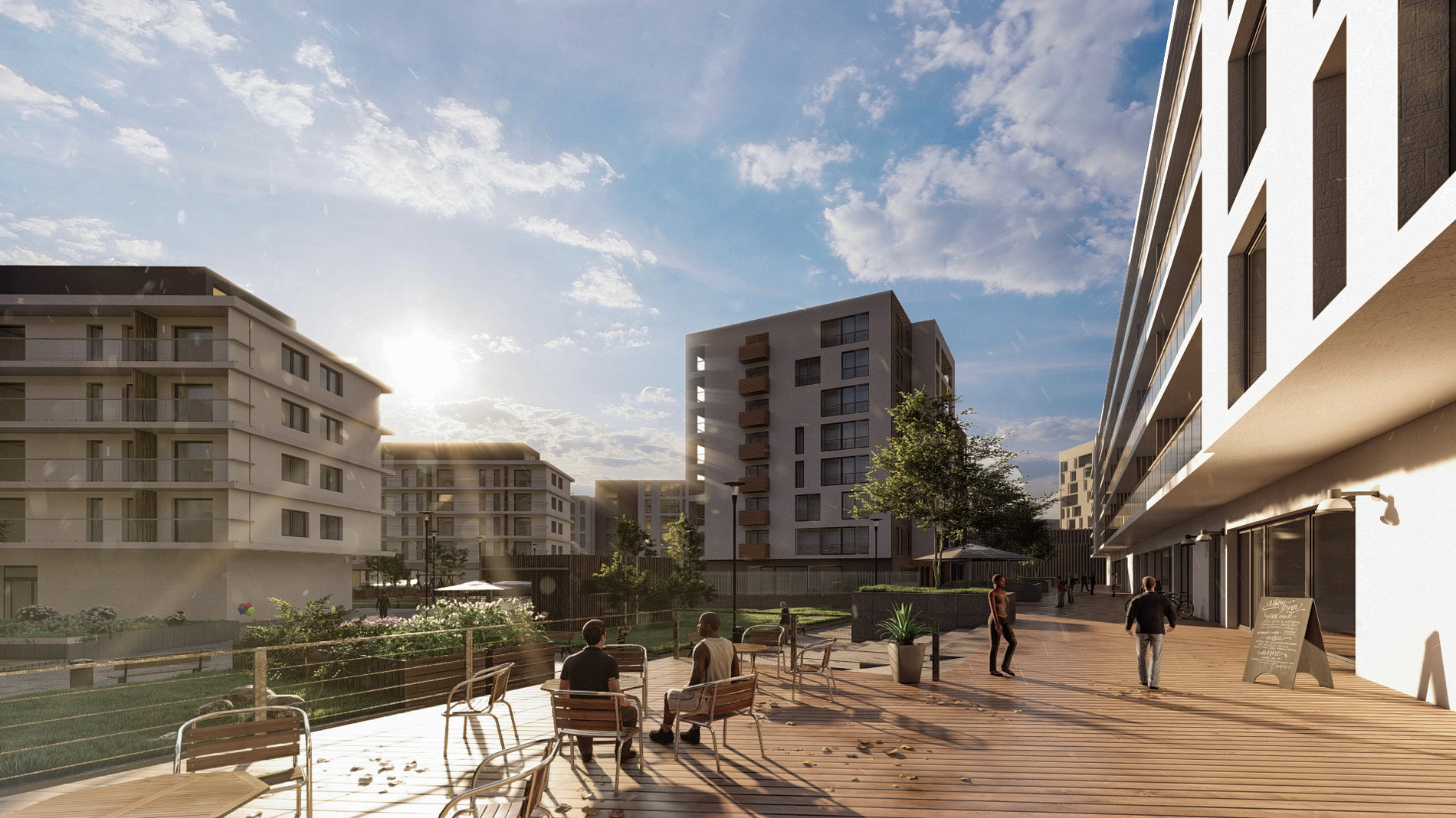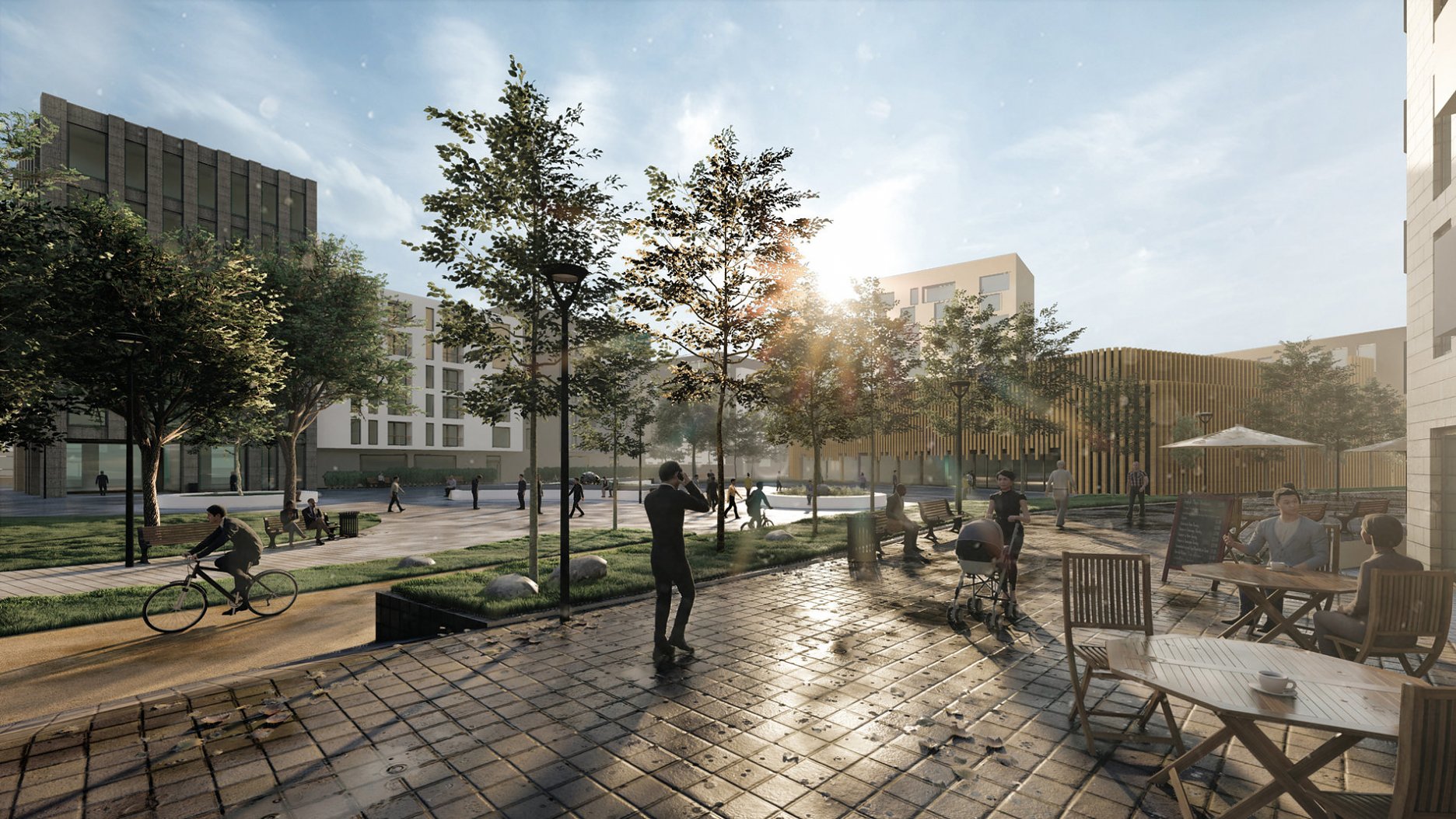 Hlavní prostorovou páteří projektu je nová síť veřejného prostoru sever-jih s velmi jemnými proporcemi veřejného prostoru a menšími a většími zelenými veřejnými náměstími. Tato síť je definována jedinečnou funkční kombinací bydlení, kancelářských prostor a veřejných funkcí.