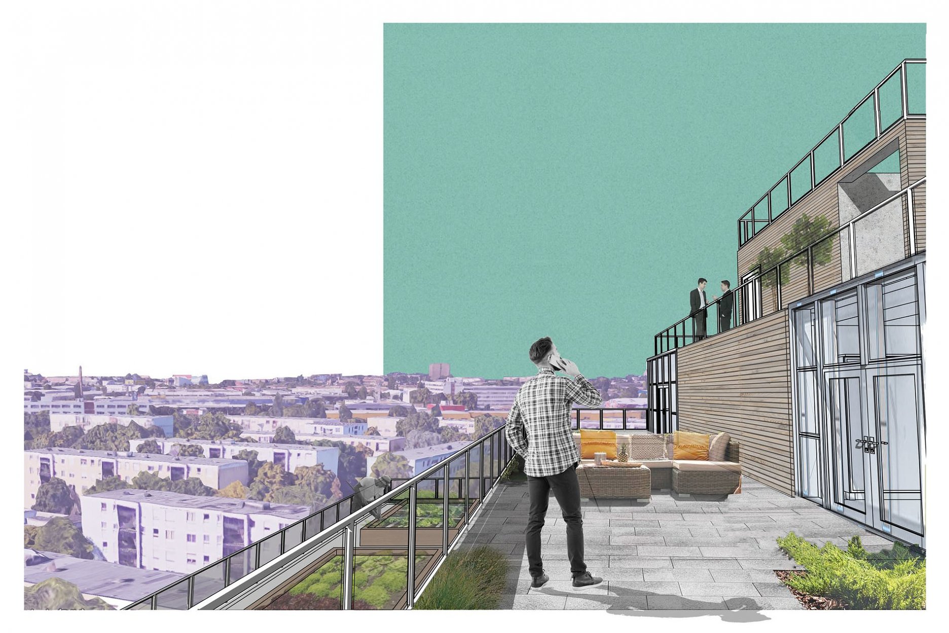 "Návrh rieši transformáciu bratislavskej lokality s podielom priemyselných a skladových budov s dobrou dopravnou dostupnosťou. Ružinovská zóna sa mení na obytno-administratívnu štvrť s potrebnou vybavenosťou. teda tému, ktorá je v súčasných mestách veľmi častá."