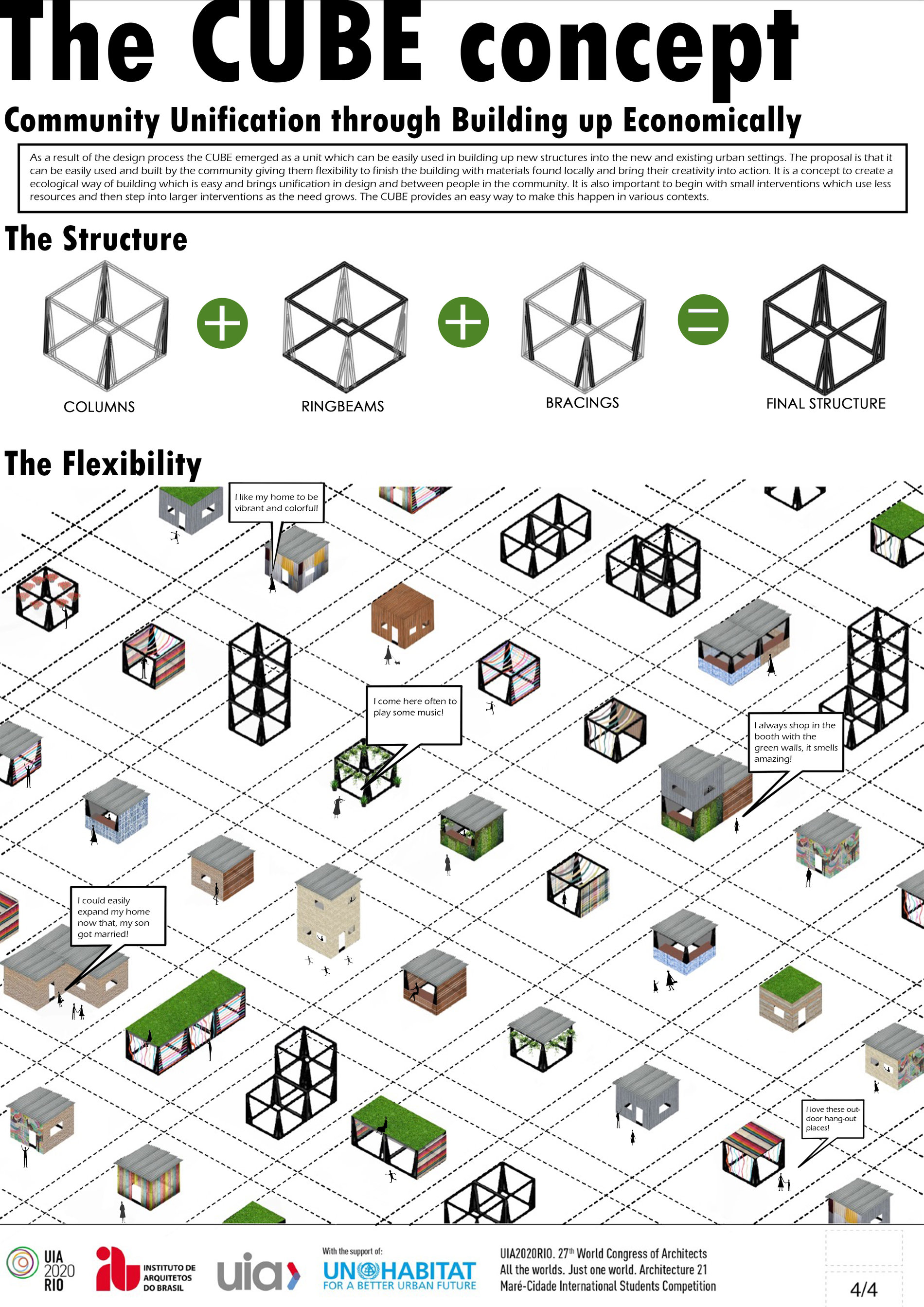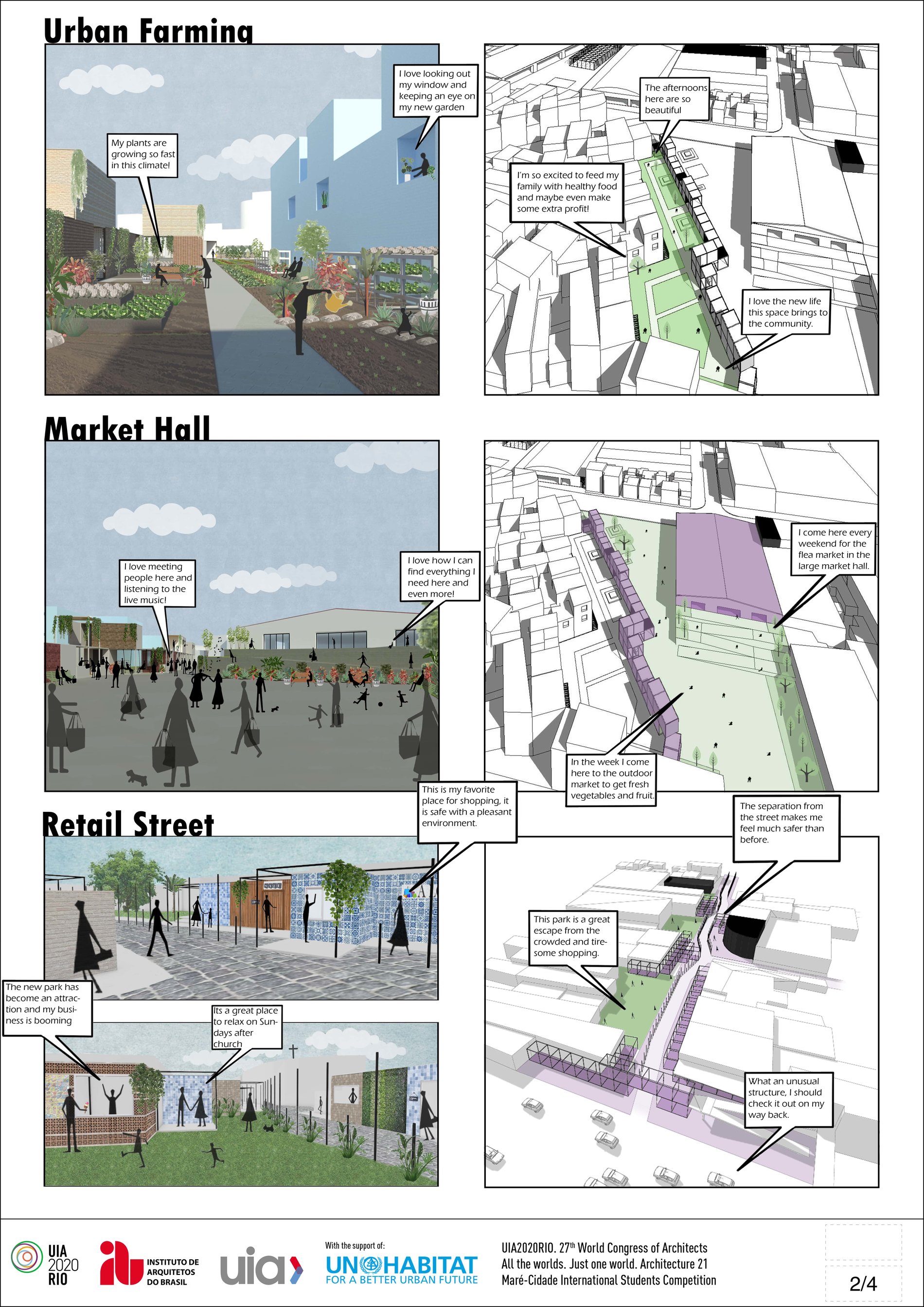 Projekt byl vytvořen na základě pokynů mezinárodní soutěže nápadů UIA 2020 Rio pro studenty architektury s cílem navrhnout zásady regenerace měst, které zohledňují principy udržitelného rozvoje OSN. Konkrétně se zabývá návrhem urbanistické regenerace chudinské čtvrti (favely) Maré v brazilském Riu de Janeiru. Pomocí výstižných krátkých hesel analyzuje stávající situaci a také naznačuje strategii řešení – nejdříve by ve spolupráci s významnými místními institucemi, jako je např. církev, mělo dojít k posílení místních komunit. Jednotlivé ideové teze se pak zhmotňují v dílčích urbánních intervencích. Základní stavební jednotkou, která se uplatňuje v návrzích, je kostka, jednoduchá modulární a flexibilní jednotka na oživení vytipovaných lokalit. Silnou stránkou práce je aktuálnost tématu, lapidárnost architektonicko-urbanistického sdělení a kvalitní grafické zpracování. V jednoduchosti a přílišné schematičnosti se ale na druhé straně skrývá také největší slabina této práce.