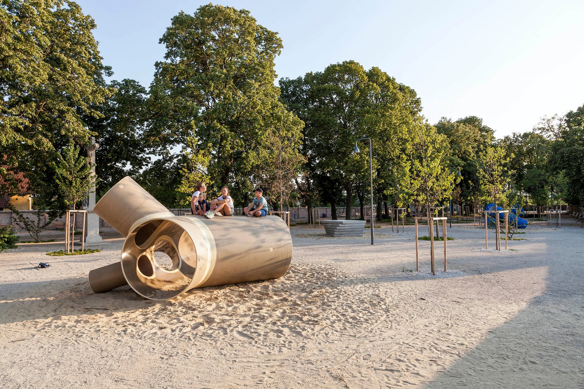 Park s detským ihriskom na mieste starého cintorína. Prírodne poňatá revitalizácia verejného priestoru v širšom centre mesta, umelecky stvárnené herné prvky, výsledok otvorenej architektonickej súťaže...