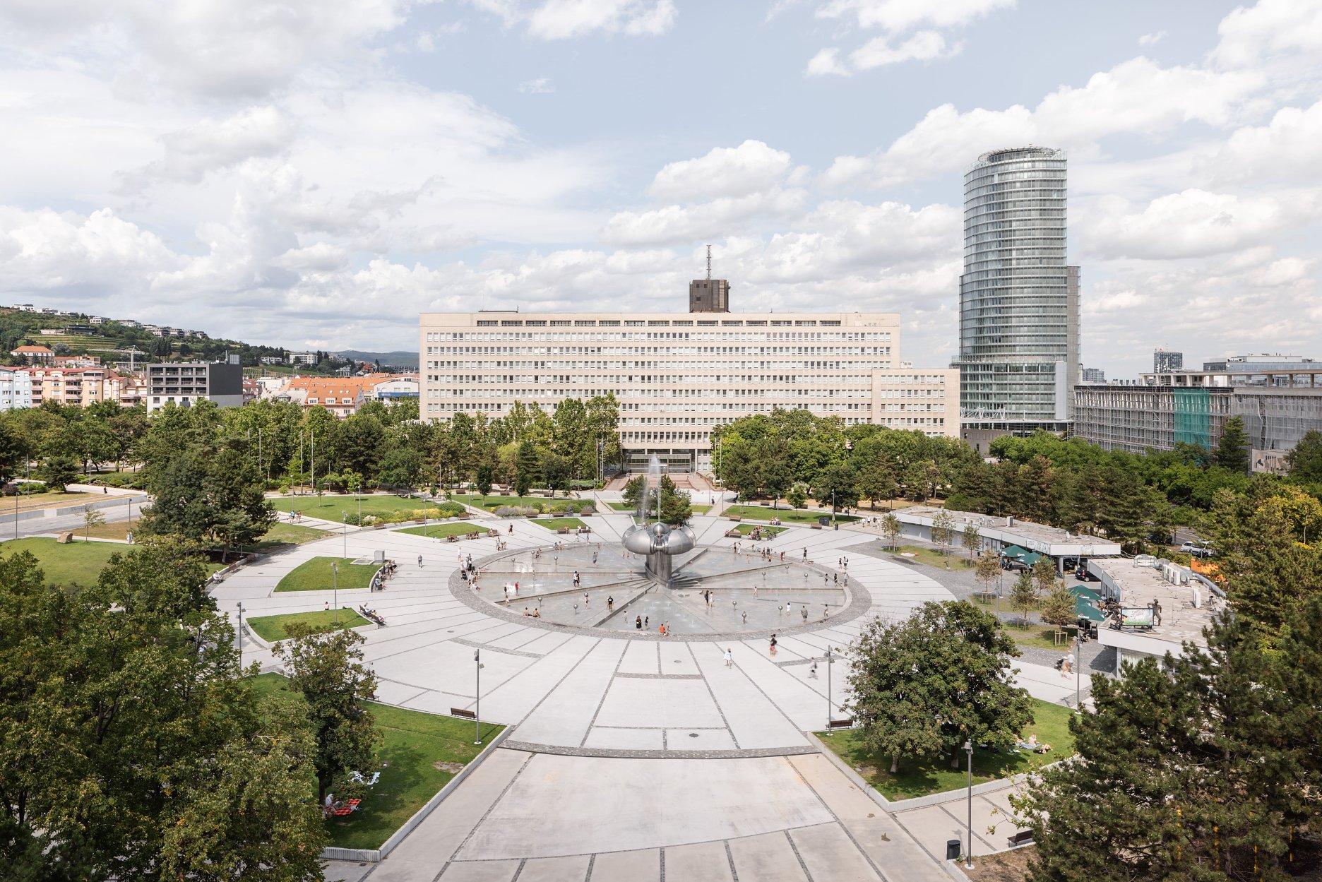Priestor okolo fontány Družba, prešiel po desaťročiach prvou etapou komplexnej obnovy. Východisko projektu tvorí návrh z verejnej architektonickej súťaže. Pôvodná štruktúra námestia je nanovo interpretovaná. Bazény fontány sa zmenili na prístupné kaskády, pôvodnú dlažbu nahradilo exteriérové terazzom s recyklovaným kamenivom a doplnila ju nová výsadba. Priestor sa zmenil na príjemn miesto, ktoré sa stalo skutočným „námestím slobody“.