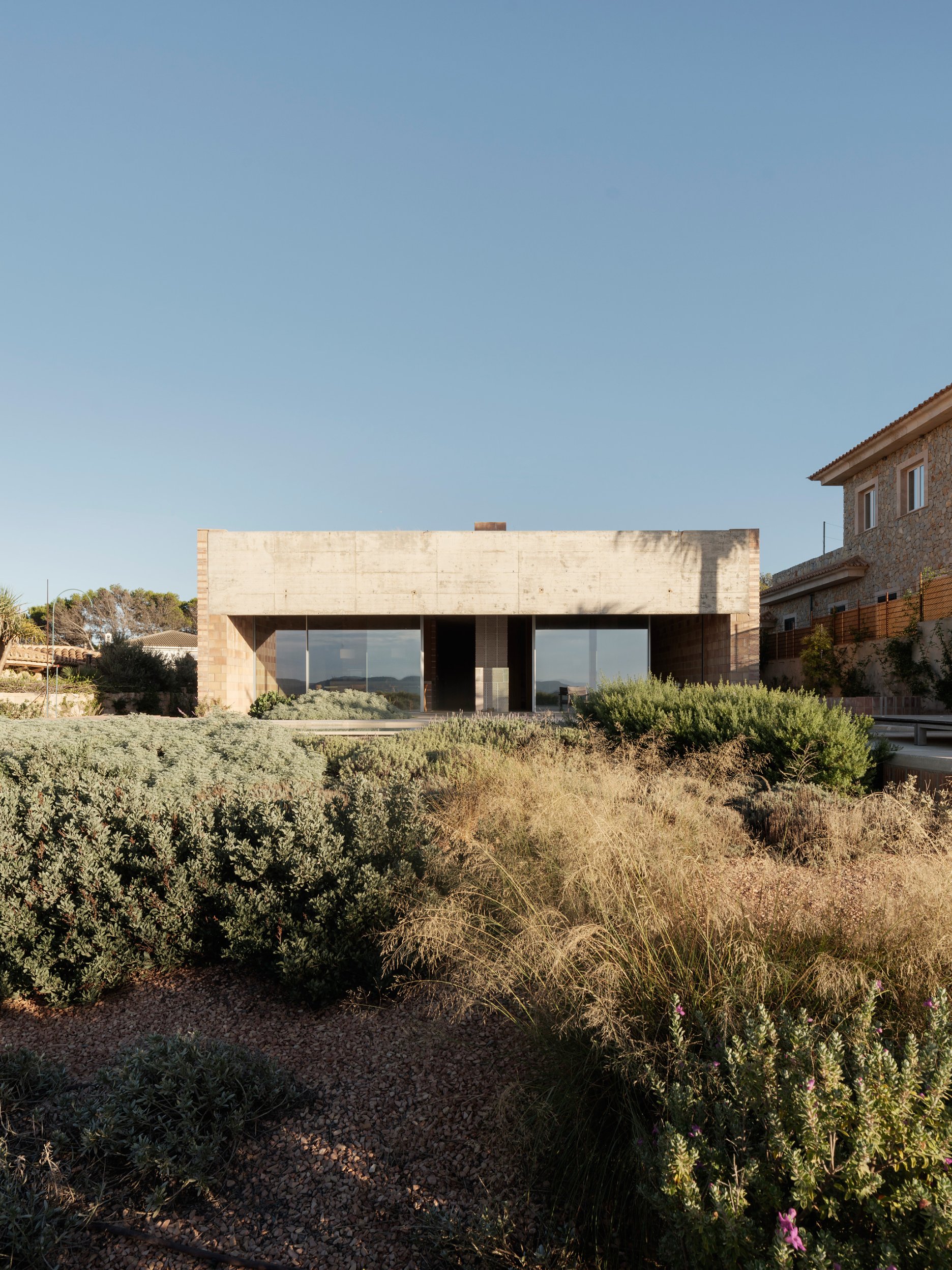 Dom stojí na útesoch pri mori v obci Calvià na Malorke a reaguje na exponovanú polohu medzi hustou zástavbou a otvoreným horizontom Stredozemného mora. Dve masívne paralelné tehlové steny rámujú výhľad na more a zároveň chránia interiér pred pohľadmi susedov. masívne steny nesú zelenú strechu a vymedzujú veľkorysú krytú verandu, ktorá kombinuje charakter dolmenu a jaskyne. Použitie miestneho kameňa, tehly a vegetácie zlepšuje mikroklímu a komfort bývania.