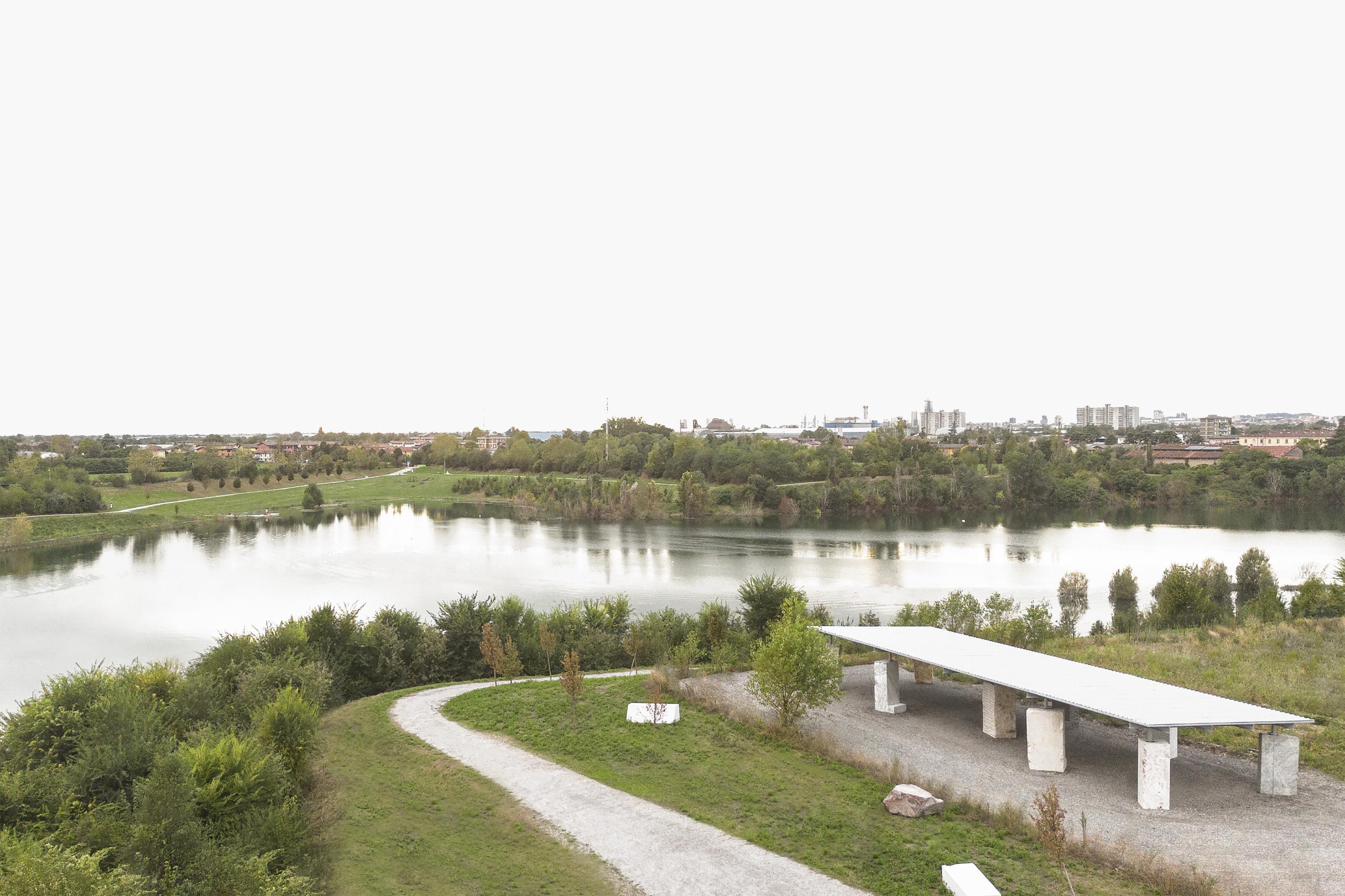 Verejný prístrešok Stones Venue v parku Parco delle Cave v Brescii vyrastá na mieste bývalej pieskovej bane, dnes premenenej na rekreačnú krajinu pre obyvateľov mesta. Pavilón je vytvorený z kamenných blokov a vzdáva hold baníckej tradícii regiónu. Každý monolitický stĺp predstavuje iný druh kameňa a spolu vytvárajú symbolický priestor pre stretnutia.