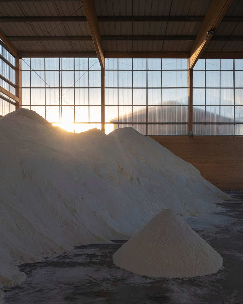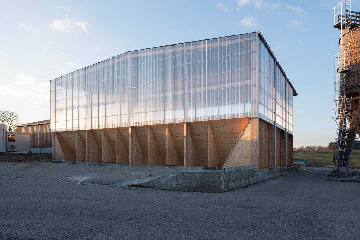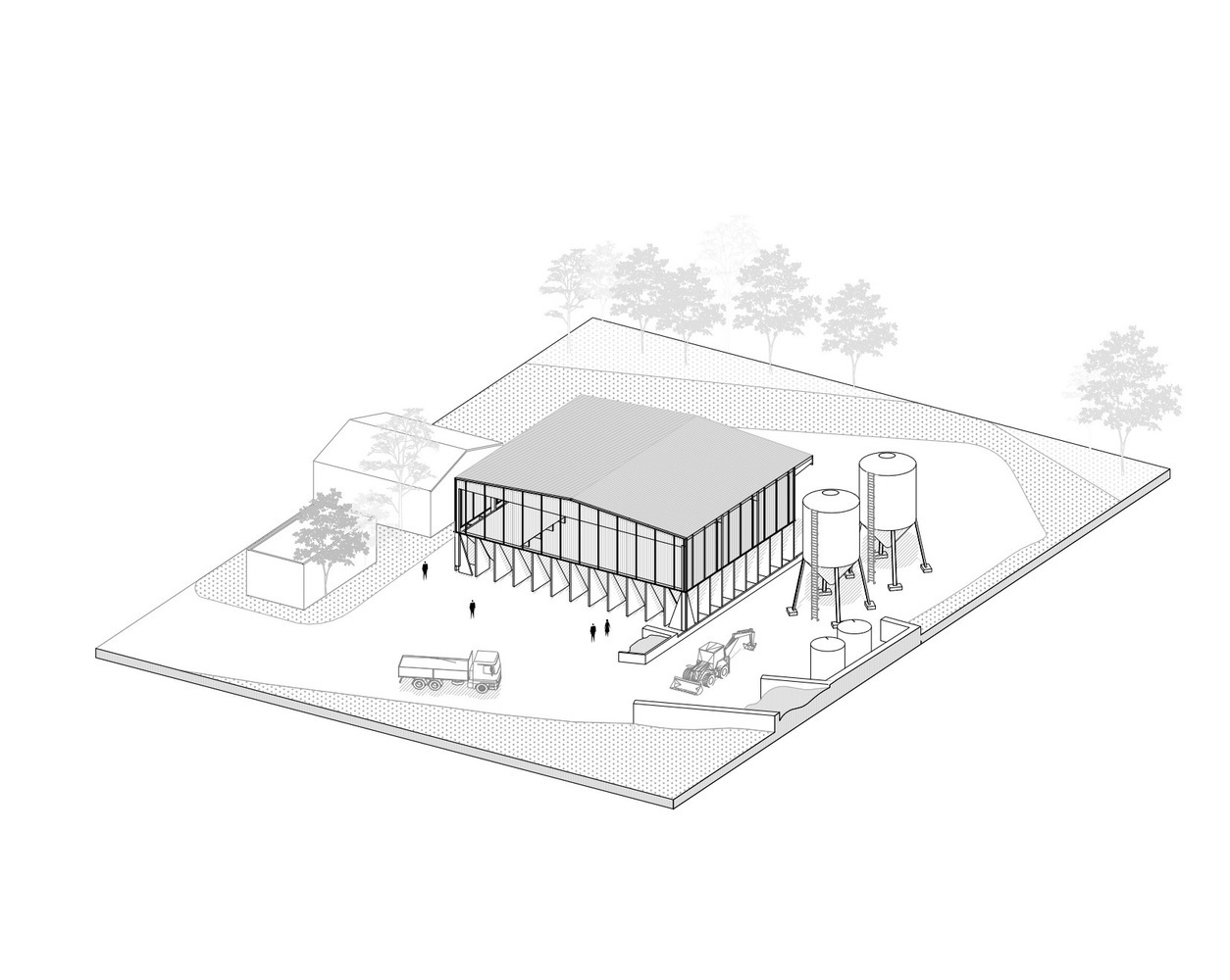 Utilitárna stavba - infraštruktúra v rámci poľnohospodárskeho areálu. Trojloďová prejazdná hala s bazilikálnym osvetlením. Štandardná konštrukcia z plnostenných oceľových valcovaných profilov. Plášť z vlnitého plechu a profilovaného skla. Technický priestor bez akýchkoľvek príkras. Úprimná architektúra, ktorá sa nesnaží zaobaliť do prvoplánovo atraktívneho obalu. Zodpovedá kontextu, priznáva svoj účel.