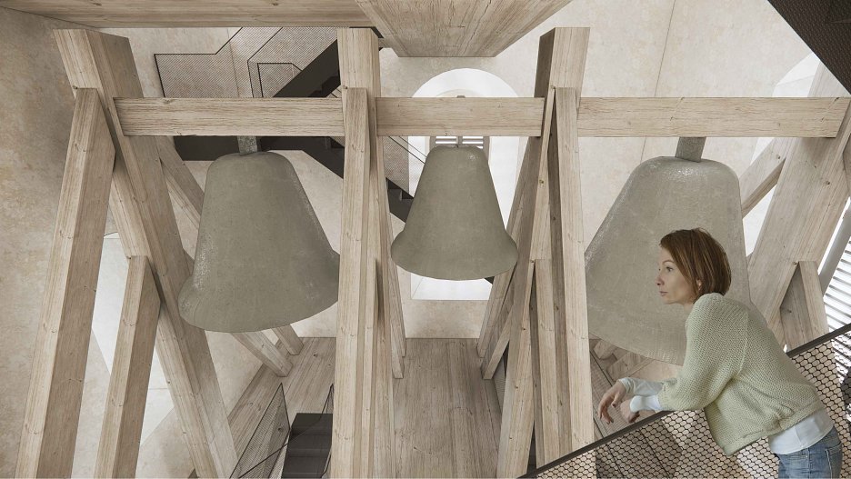 Porota kladne hodnotí návrh výmeny oceľovej zvonovej stolice za drevenú, ako aj prehliadkovú  lávku nad nosnou konštrukciou zvonov.