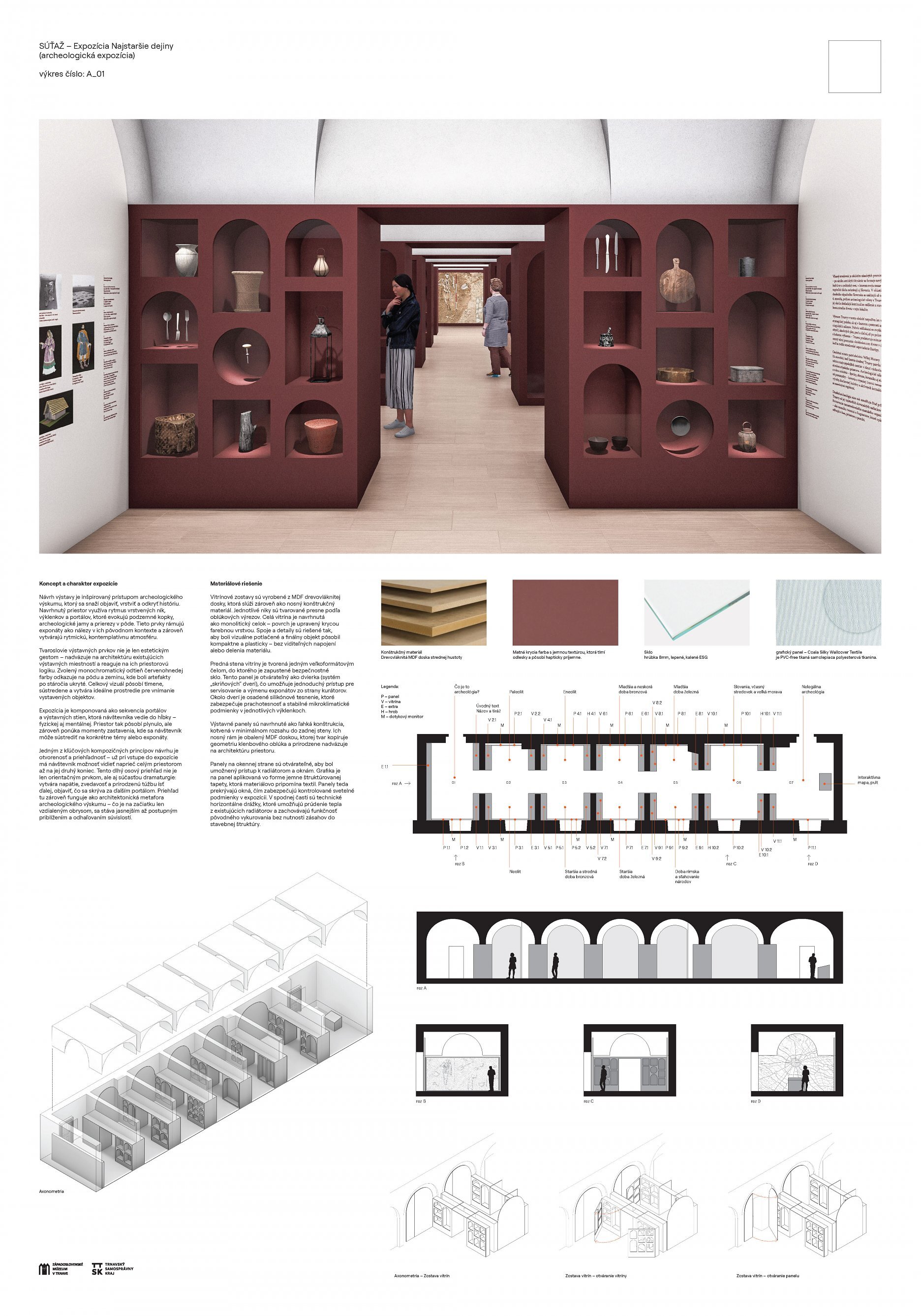 Návrh obsahuje príliš málo miesta na uloženie rôznorodých a veľkostne rôznych zbierkových predmetov. Orientuje sa skôr na digitálne technológie, vystavené solitéry pôsobia ako doplnok, nie ako nosný prvok expozície. Navrhnutý výstavný mobiliár nie je vhodný na prezentáciu archeologických nálezov ani z hľadiska farebnosti, ani z hľadiska počtu. Ťažká hmota výstavného mobiliáru zároveň zmenšuje už tak dosť obmedzený výstavný priestor. Miestnosti pôsobia uniformne čo by mohlo postupne každou ďalšou podobnou miestnosťou znižovať pozornosť návštevníka. Autor nerešpektoval požiadavku v zadaní na celkové zatemnenie priestoru a prácu so svetlom. Výrazným negatívom návrhu je vertikálna prezentácia hrobov, ktorá je nielen neprirodzená ale navyše by bola i zložitá (uchytenie veľkého počtu drobných pozostatkov na vertikálnom podklade).