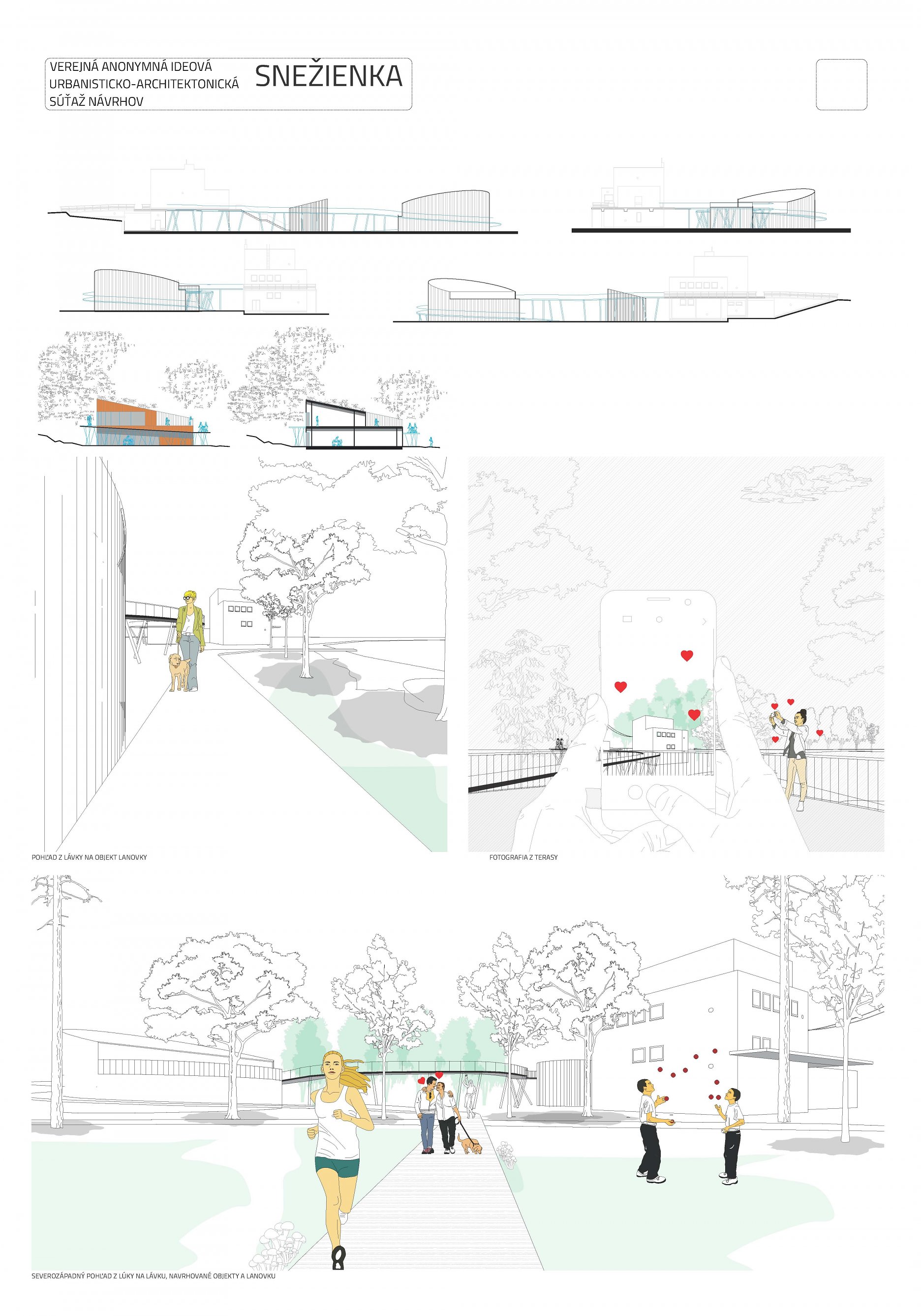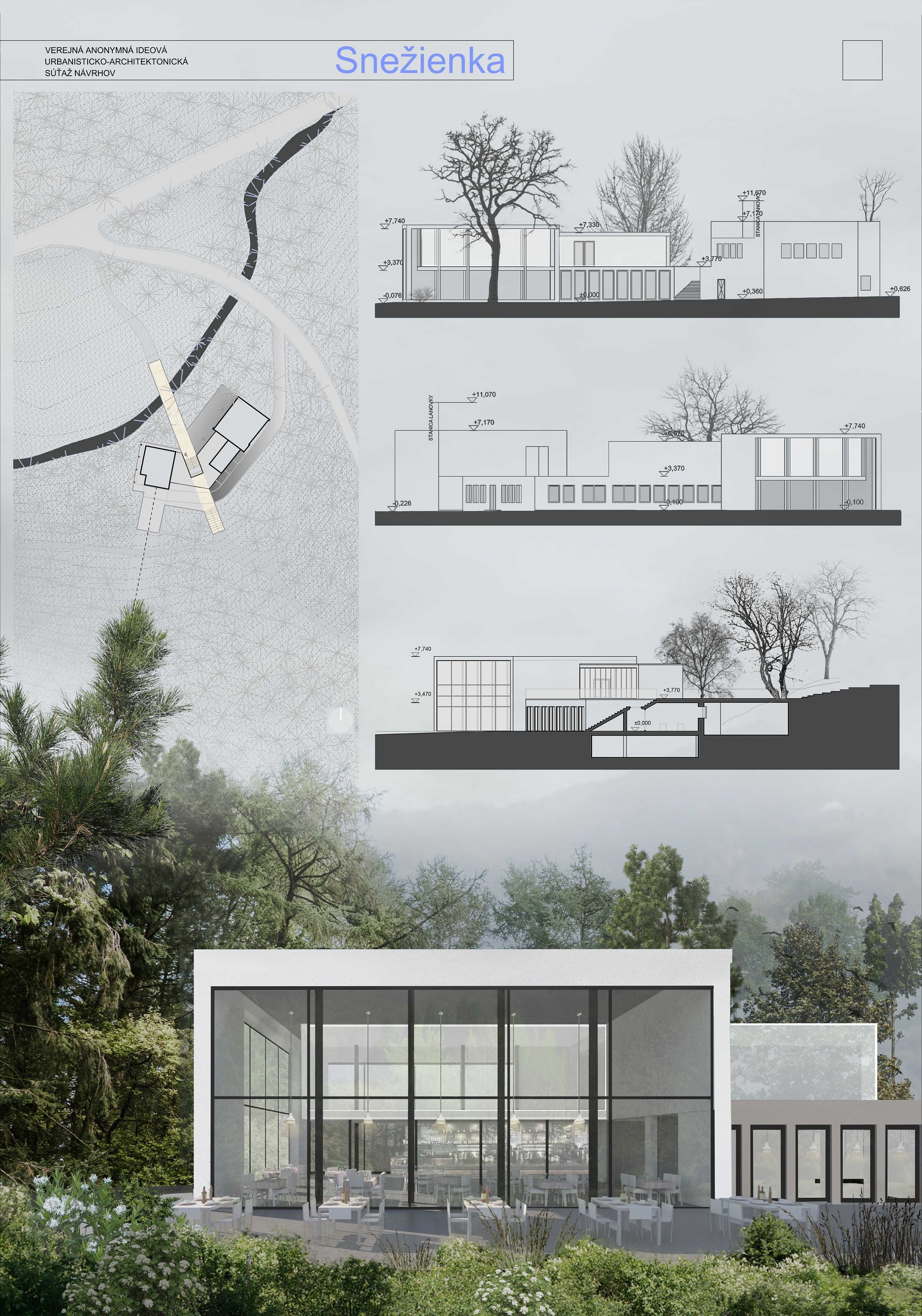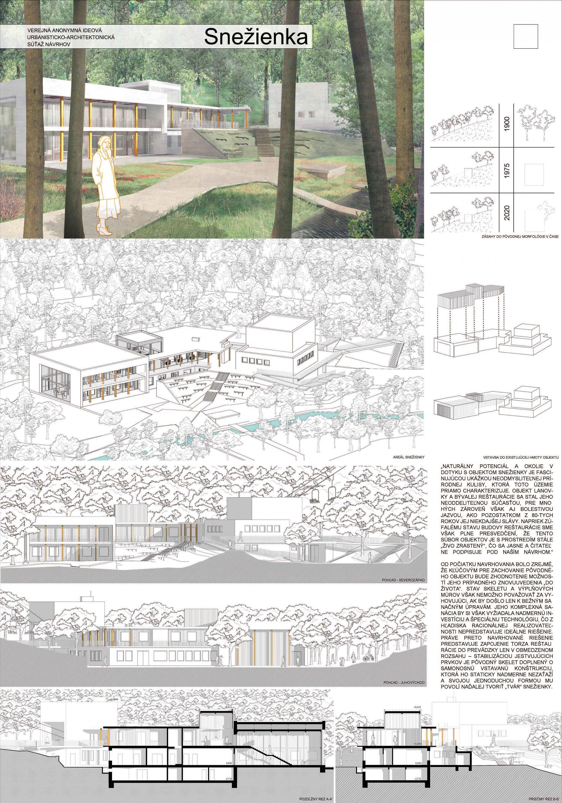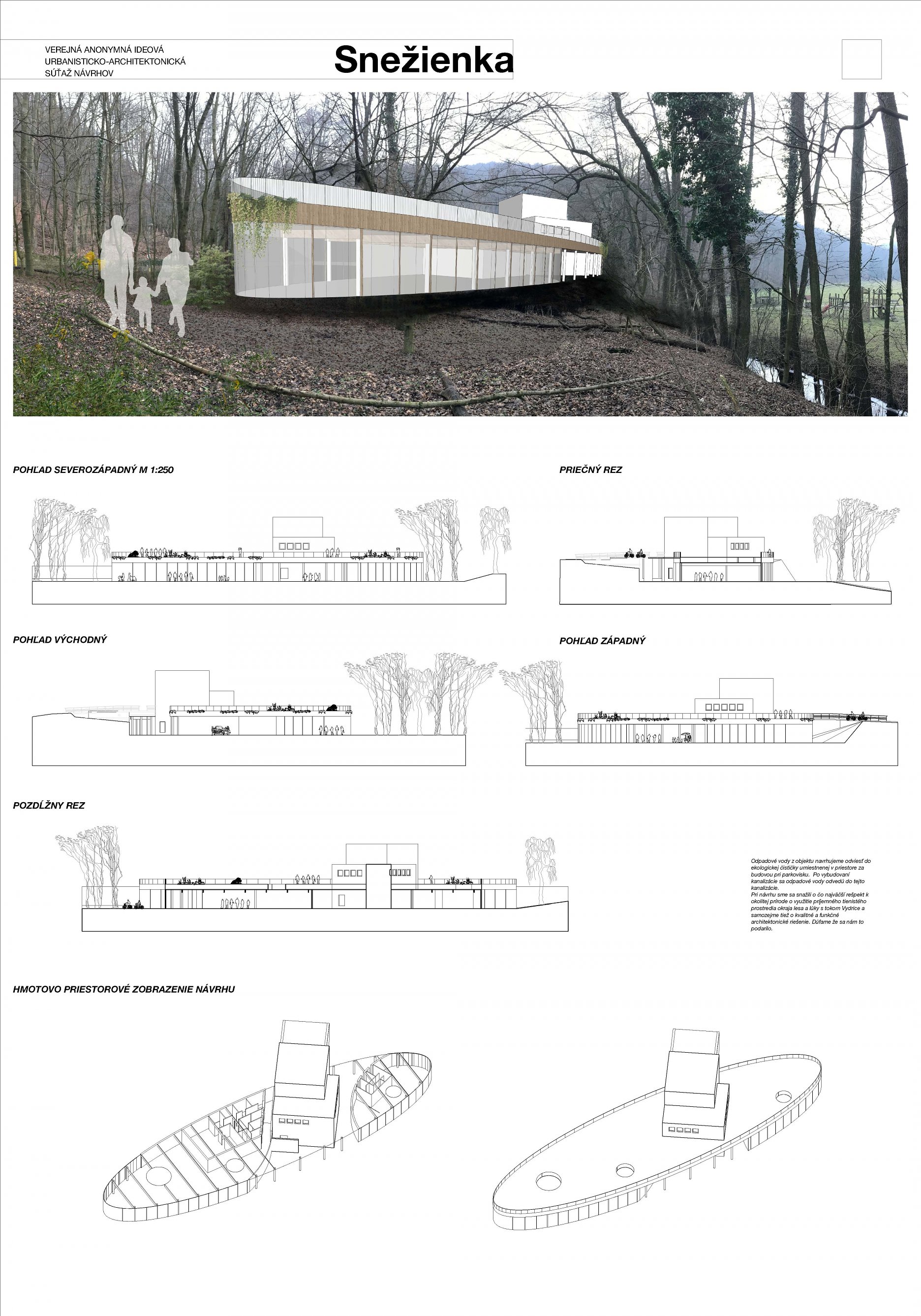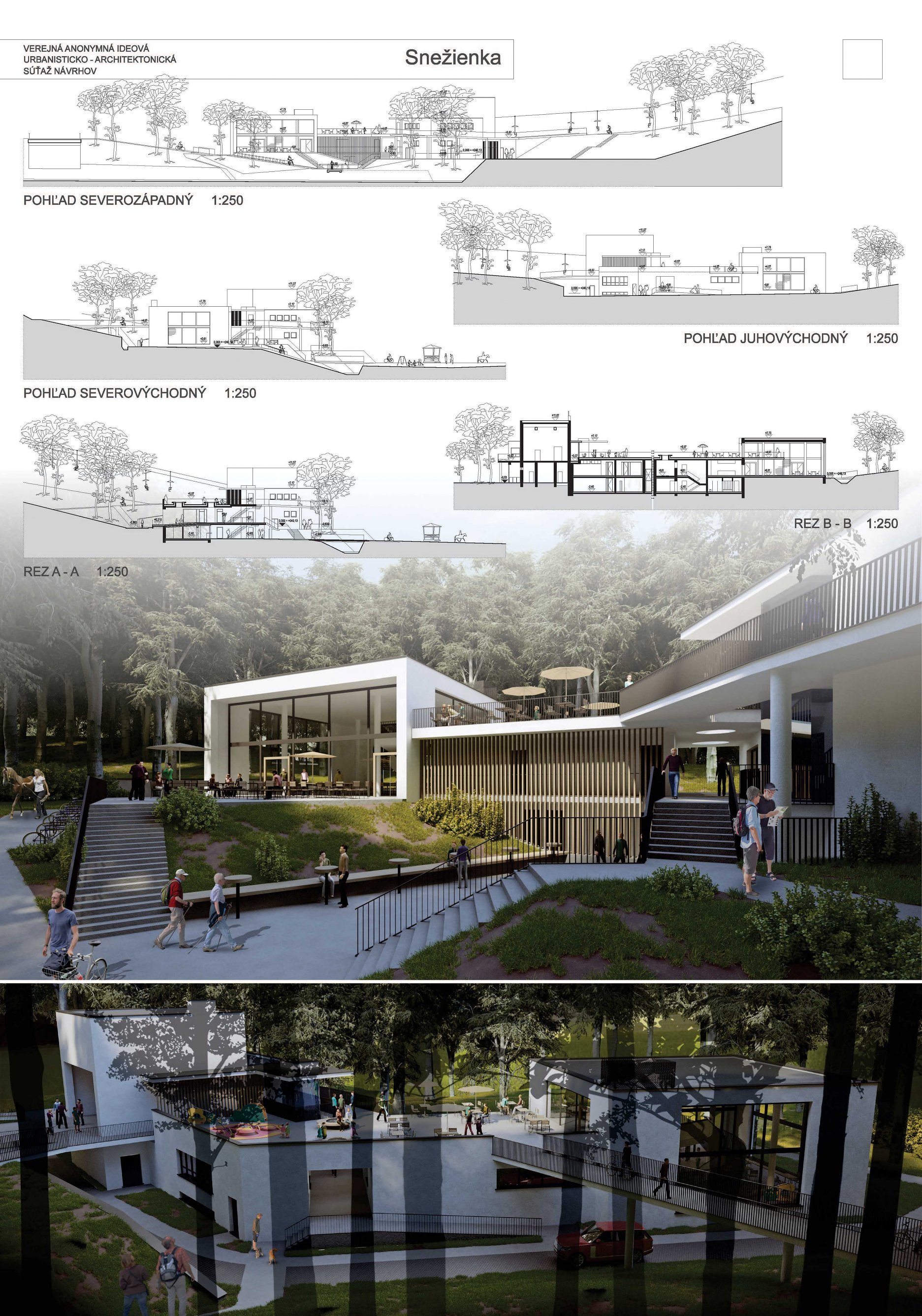 Členovia poroty ocenili urbanistické a architektonické kvality návrhu, ktorý prináša návrh otvoreného konceptu dvoch samostatných objektov a návrh úplne nového verejného priestoru, prírodného amfiteátra v bezprostrednom zázemí novej Snežienky, orientovaného do kľudovej prírodno-oddychovej polohy, resp. do polohy nadväzujúcej na lesný masív Malých Karpát.