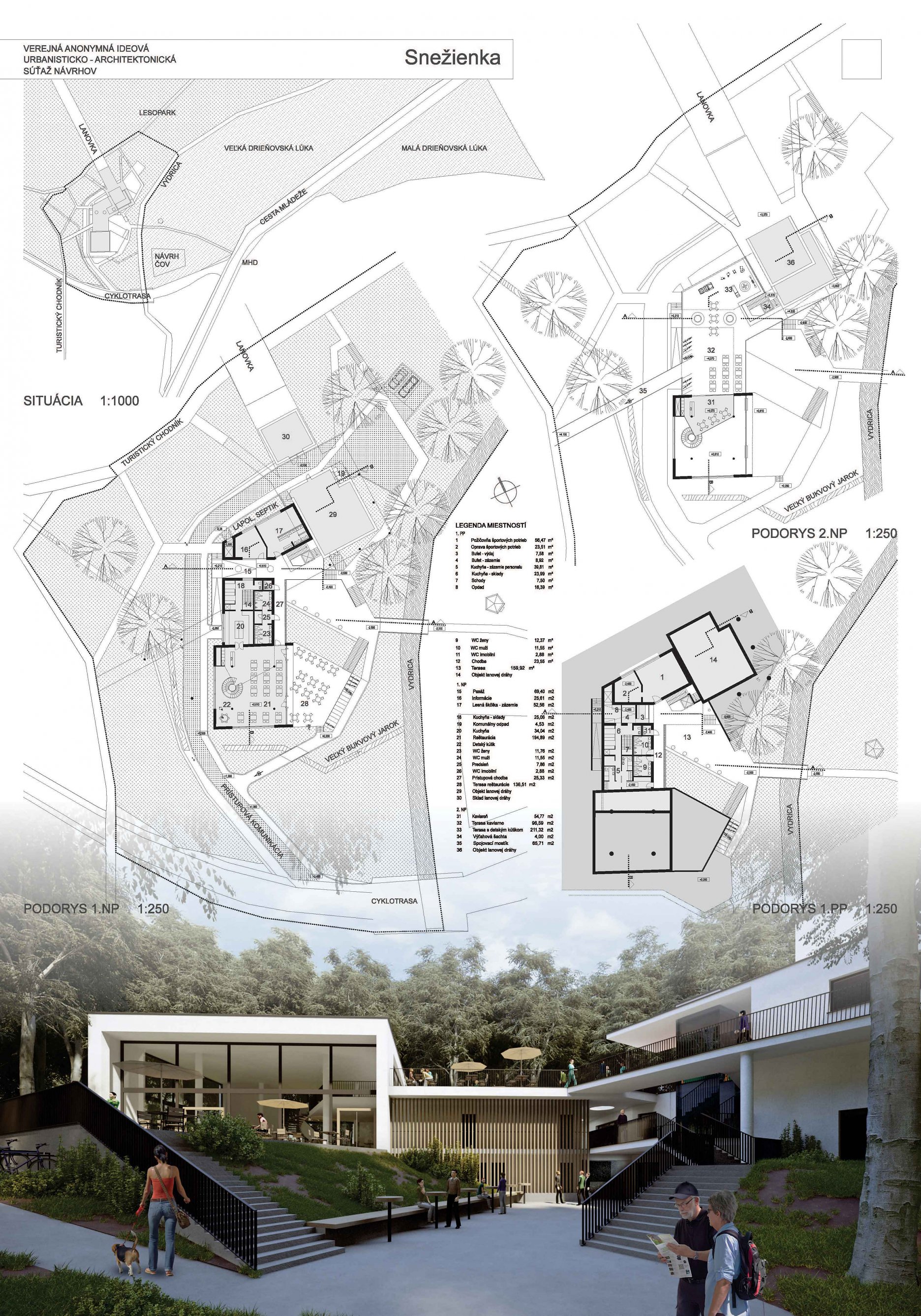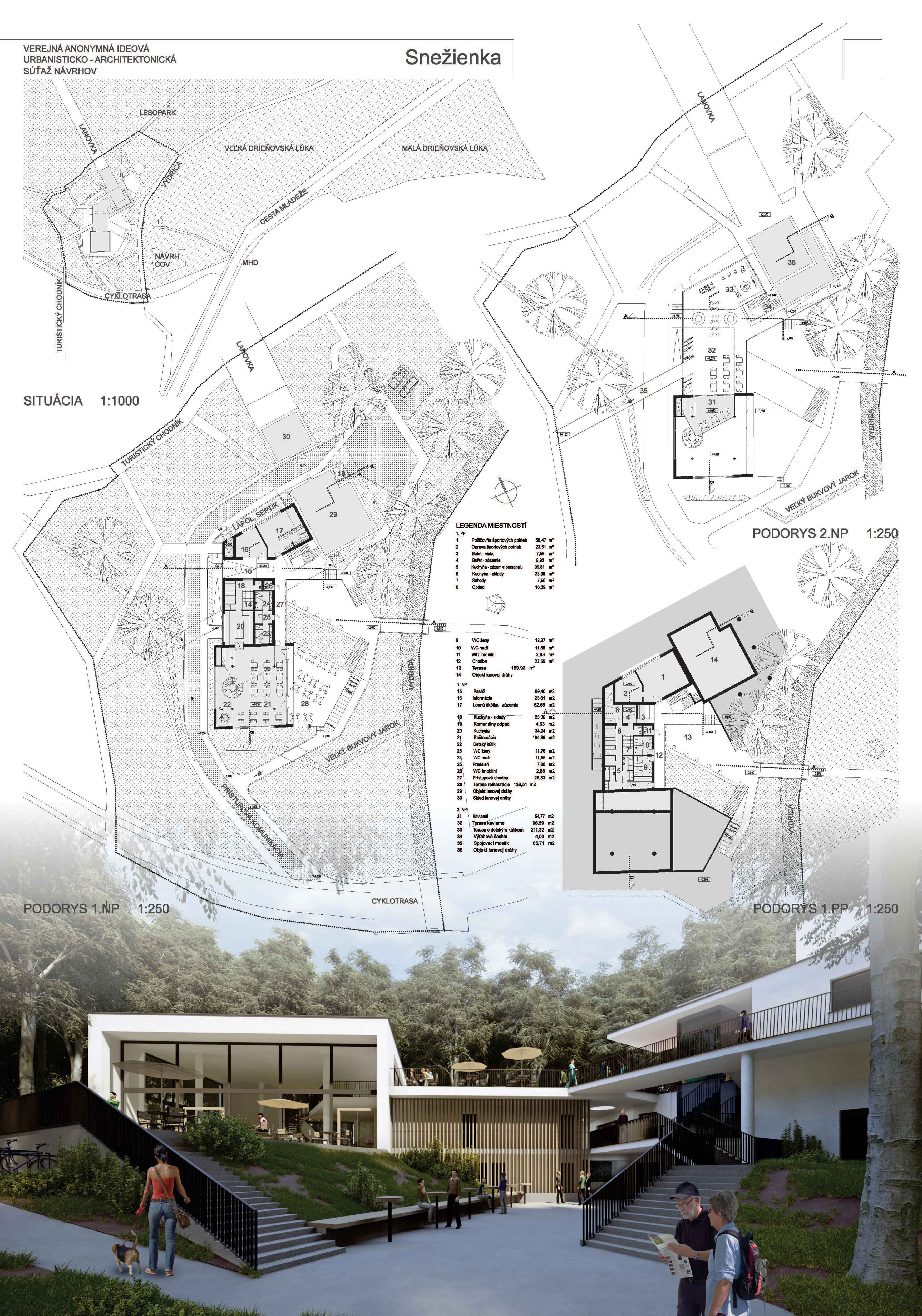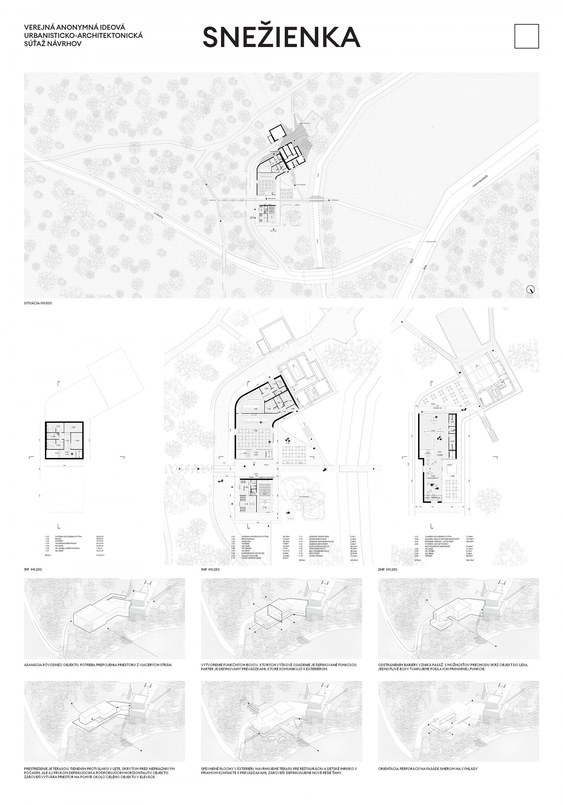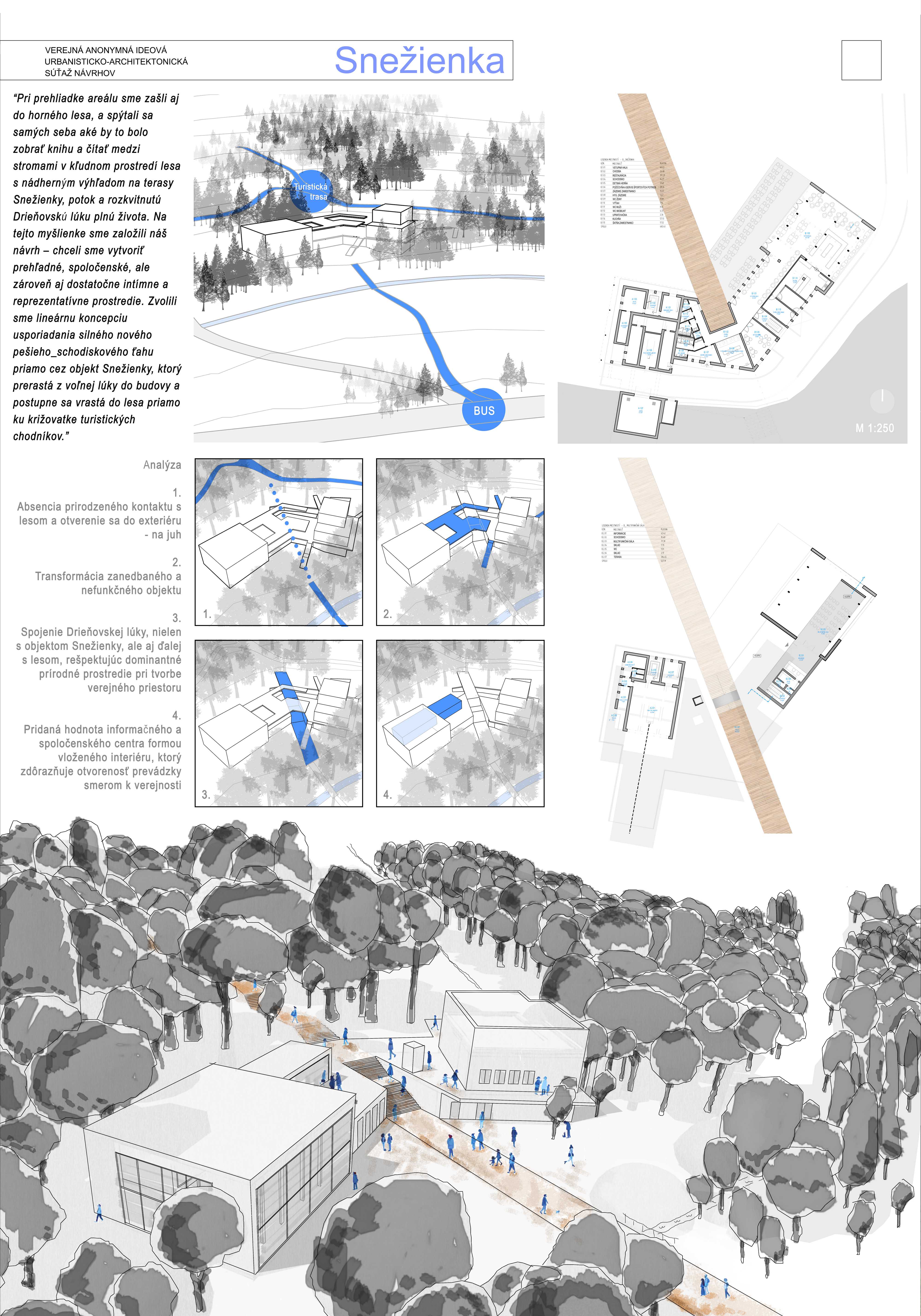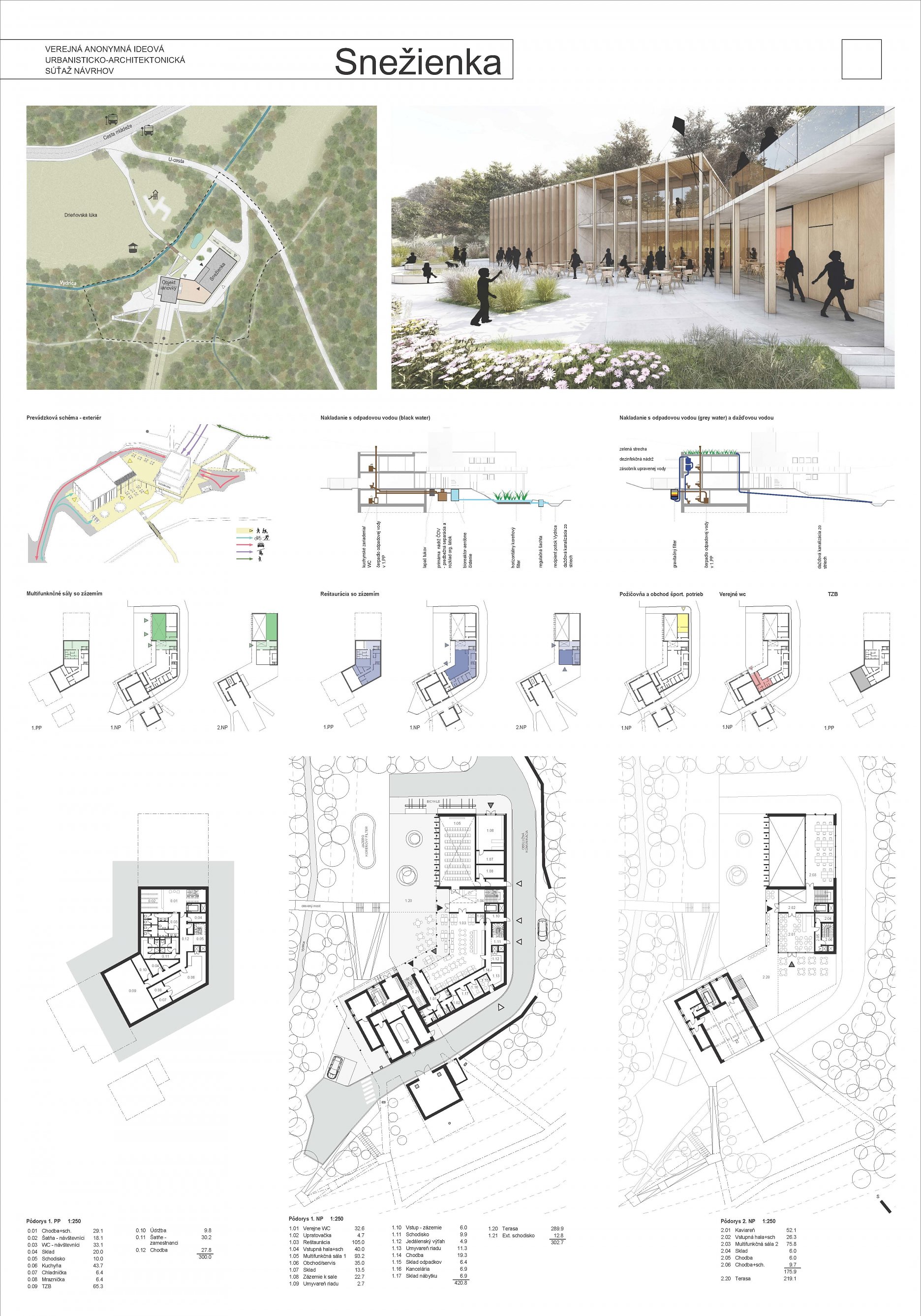 Členovia poroty ocenili urbanistické a architektonické kvality návrhu, ktorý prináša návrh otvoreného konceptu dvoch samostatných objektov a návrh úplne nového verejného priestoru, prírodného amfiteátra v bezprostrednom zázemí novej Snežienky, orientovaného do kľudovej prírodno-oddychovej polohy, resp. do polohy nadväzujúcej na lesný masív Malých Karpát.