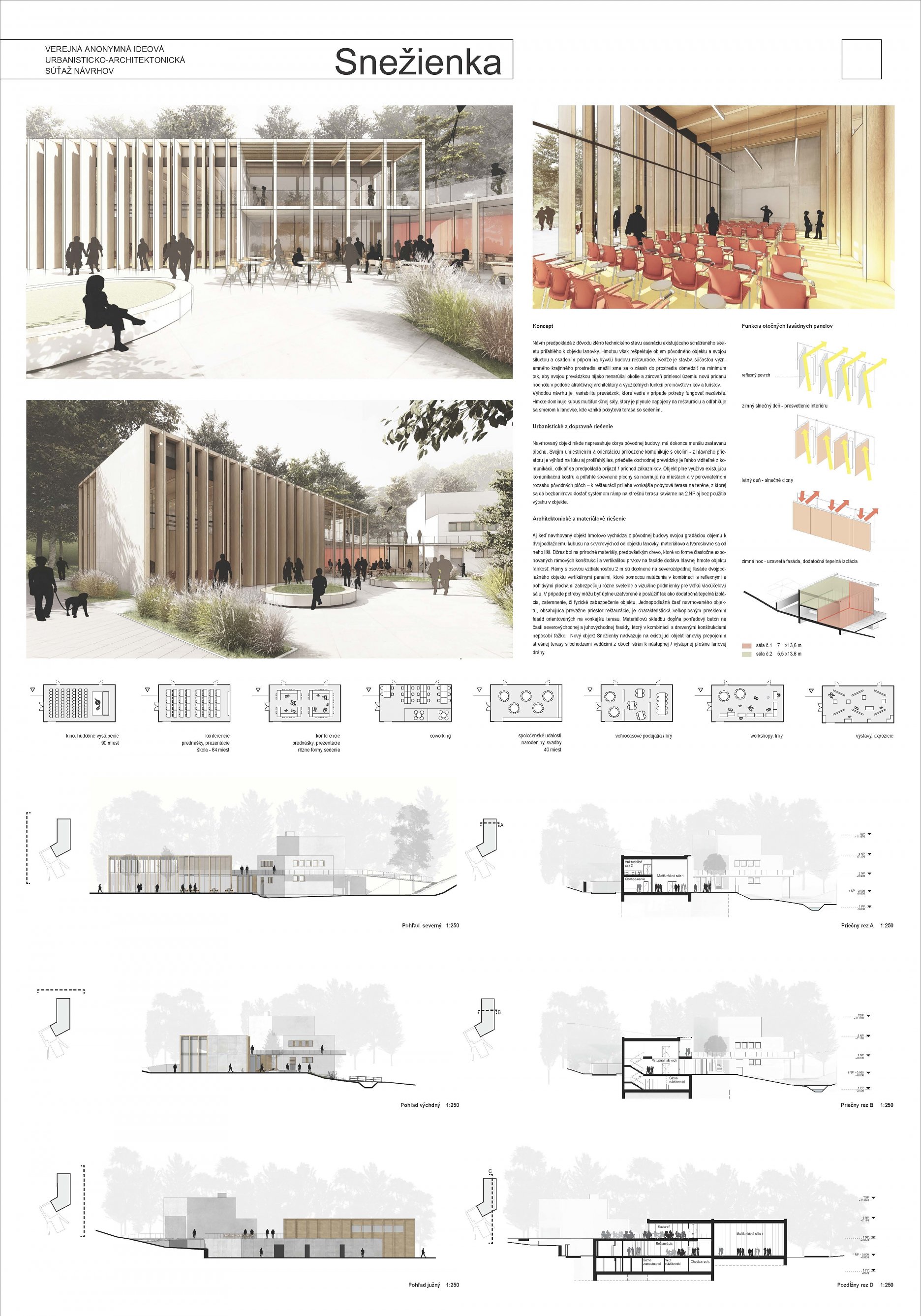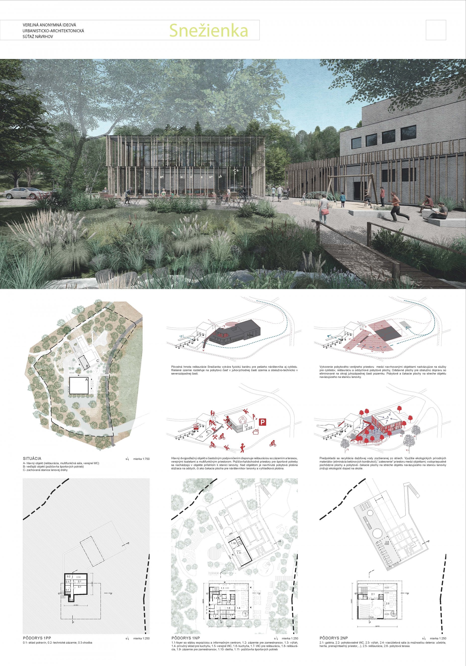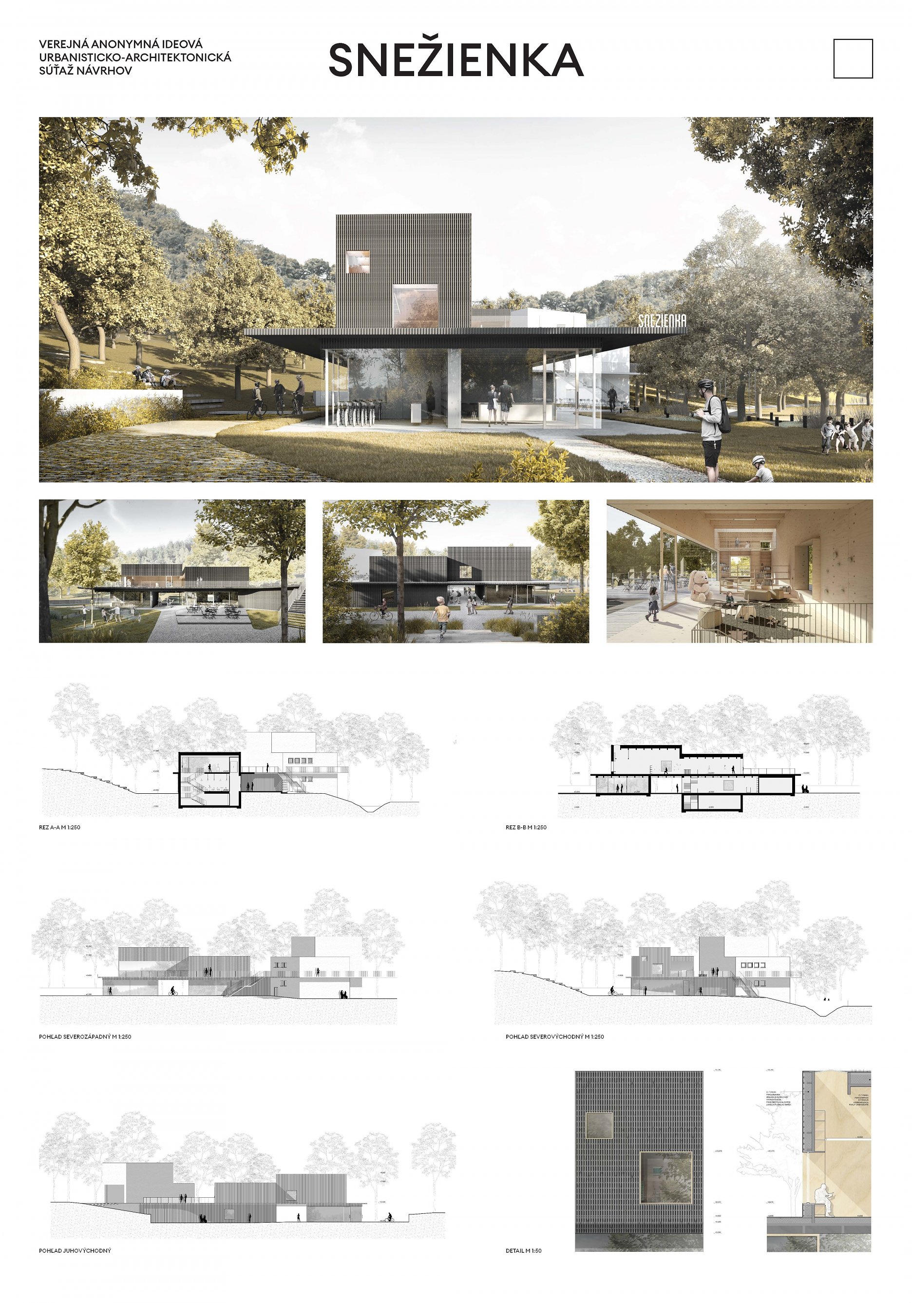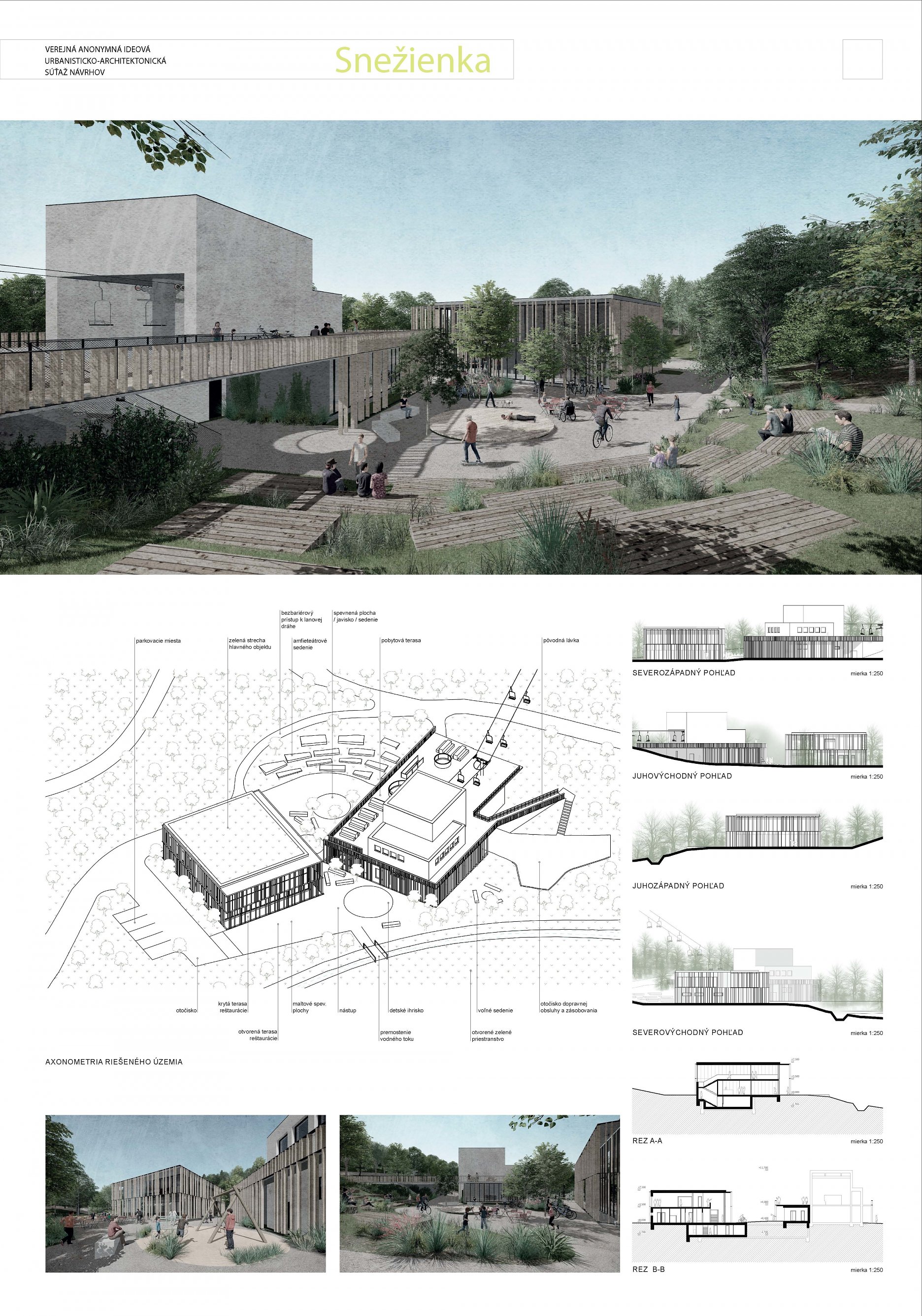 Členovia poroty ocenili návrh nových verejných priestorov v zázemí nového objektu Snežienky a návrh objektu „prívetivého“ k jeho návštevníkom, ktorý by mohol poskytnúť svojím návštevníkom viacero možností trávenia voľného času.