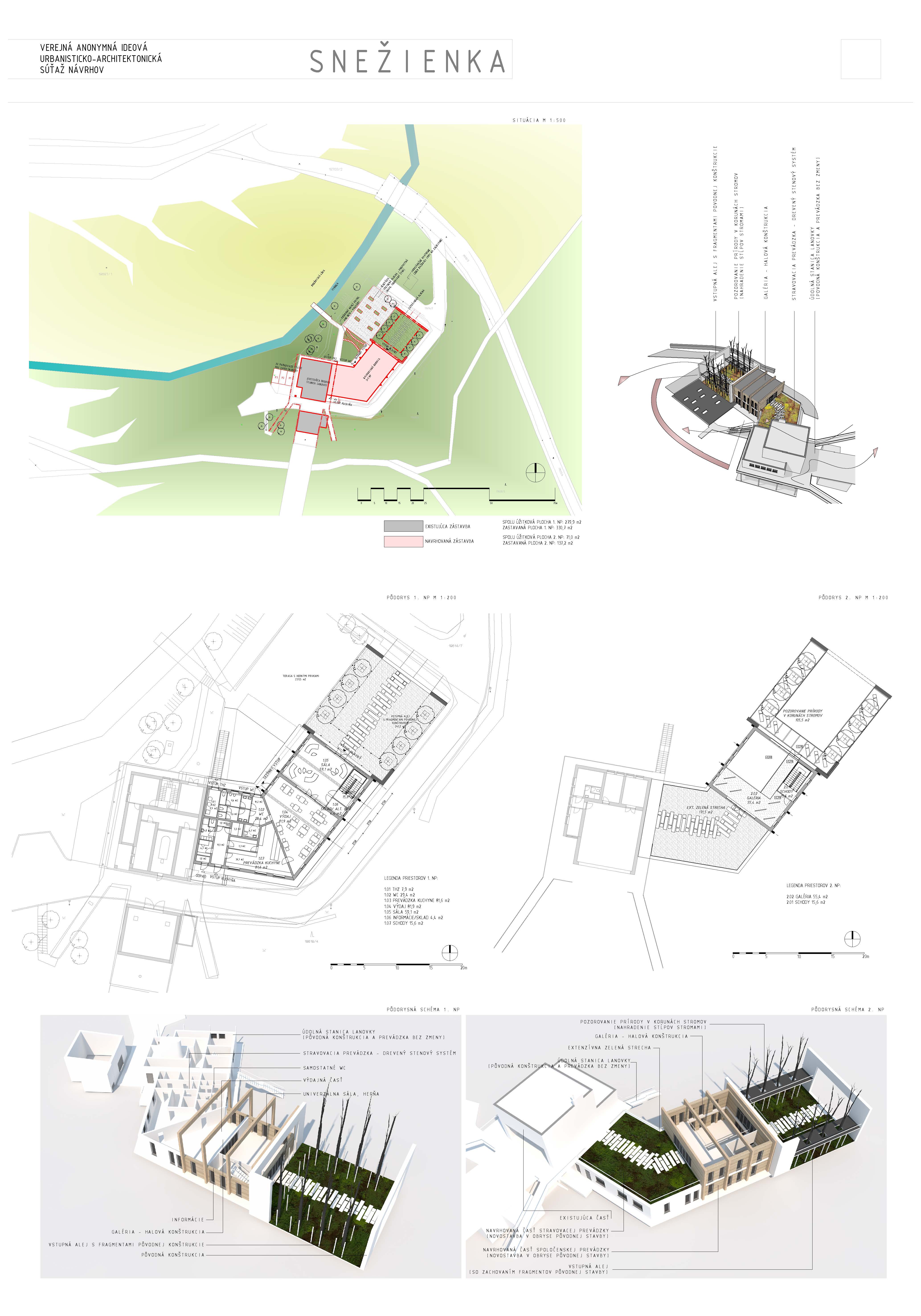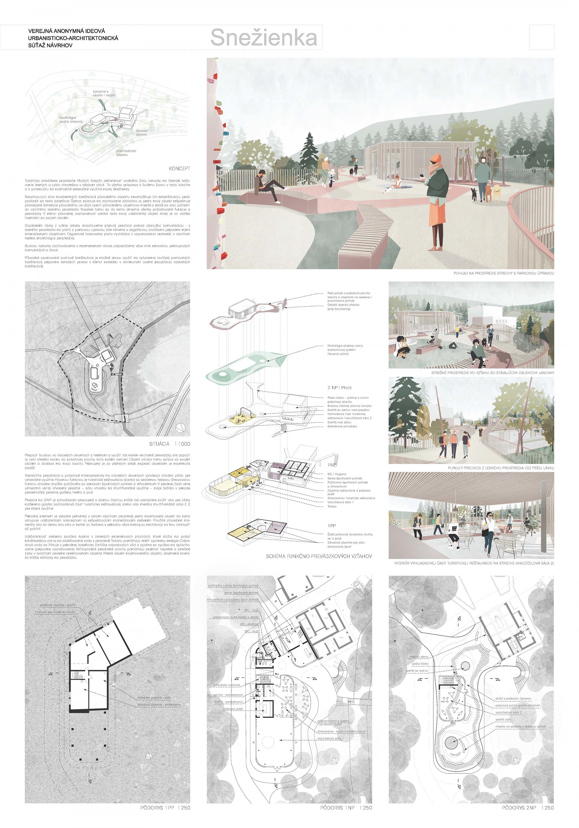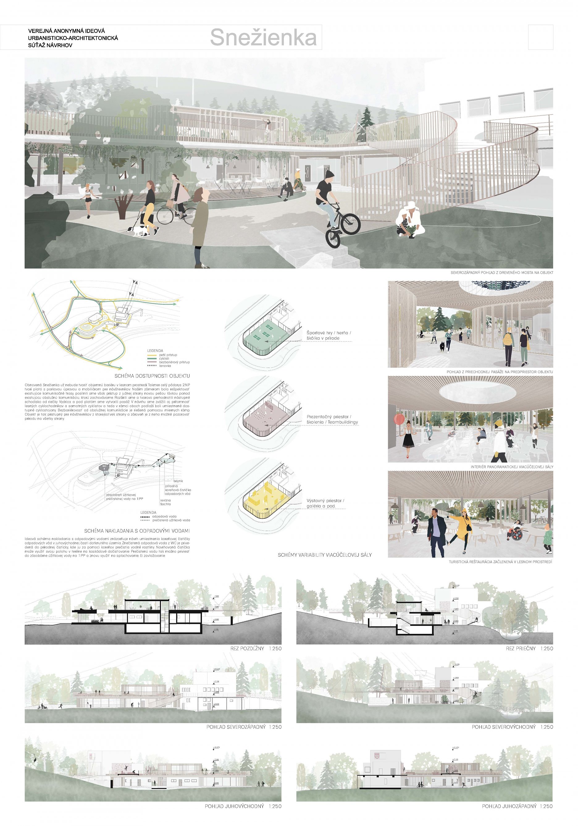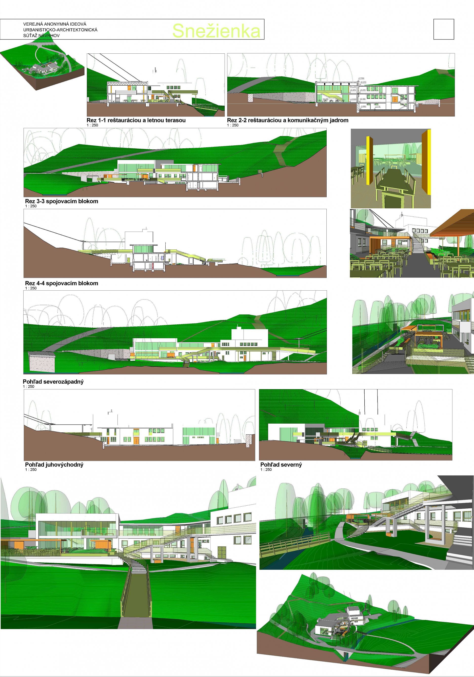 Členovia poroty ocenili návrh nových verejných priestorov v zázemí nového objektu Snežienky a návrh objektu „prívetivého“ k jeho návštevníkom, ktorý by mohol poskytnúť svojím návštevníkom viacero možností trávenia voľného času.