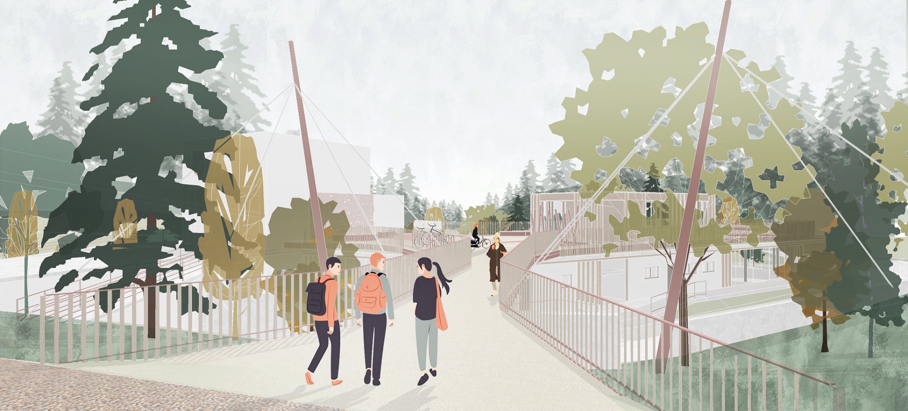 Problematickým prvkom návrhu je samotný jednotiaci element urbanistického konceptu v podobe navrhnutej pešej lávky, vedenej nad povrchom terénu, „vo vzduchu“, ktorá nemá z prevádzkového a ani funkčného hľadiska žiadne opodstatnenie.
