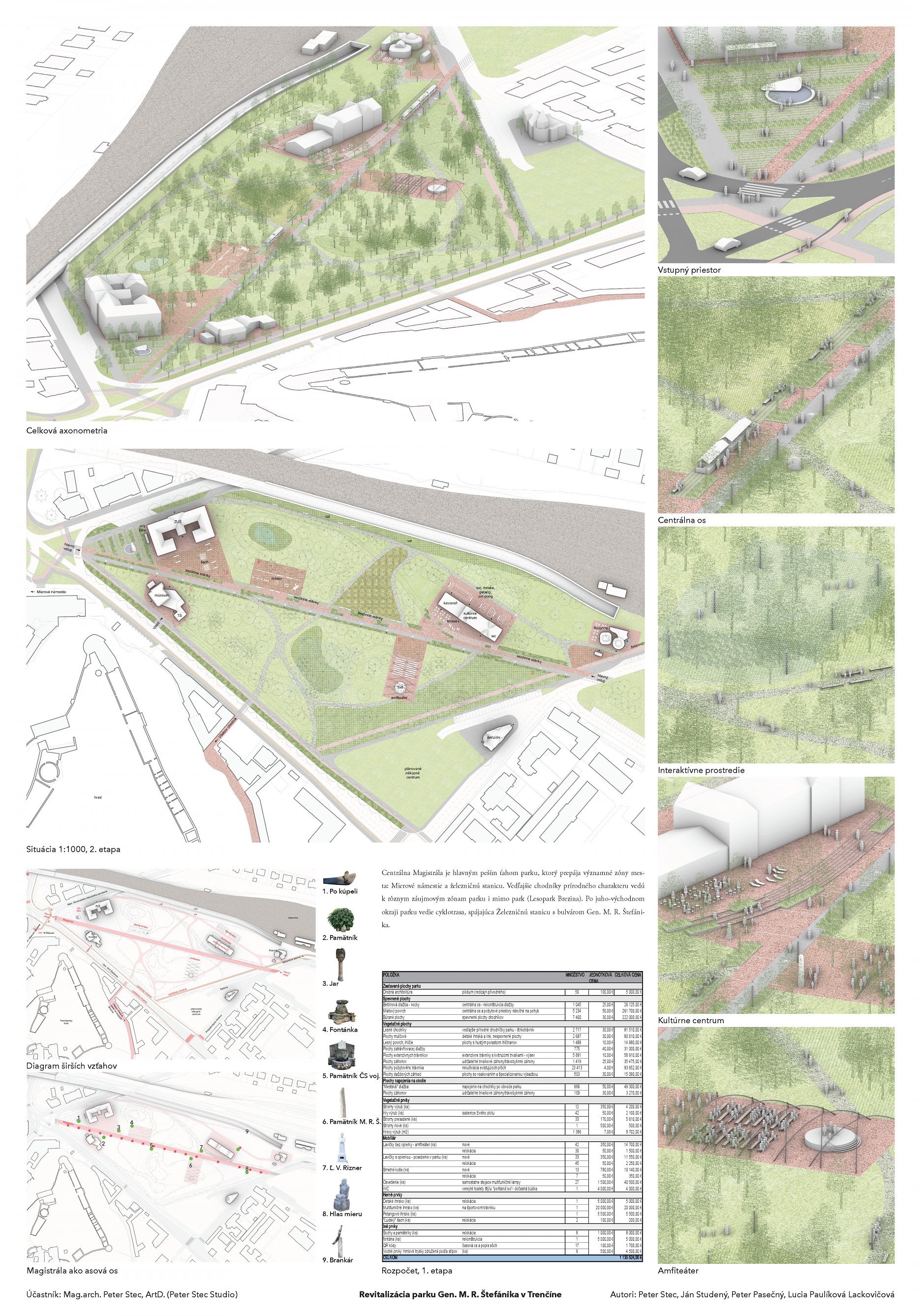 Víťazný návrh v najväčšom rozsahu spĺňa požiadavky mesta Trenčín na revitalizáciu parku Gen. M. R. Štefánika. Návrh najlepšie reaguje na požiadavku zadania – vytvoriť z „tranzitného“ parku kultúrno spoločenský park.