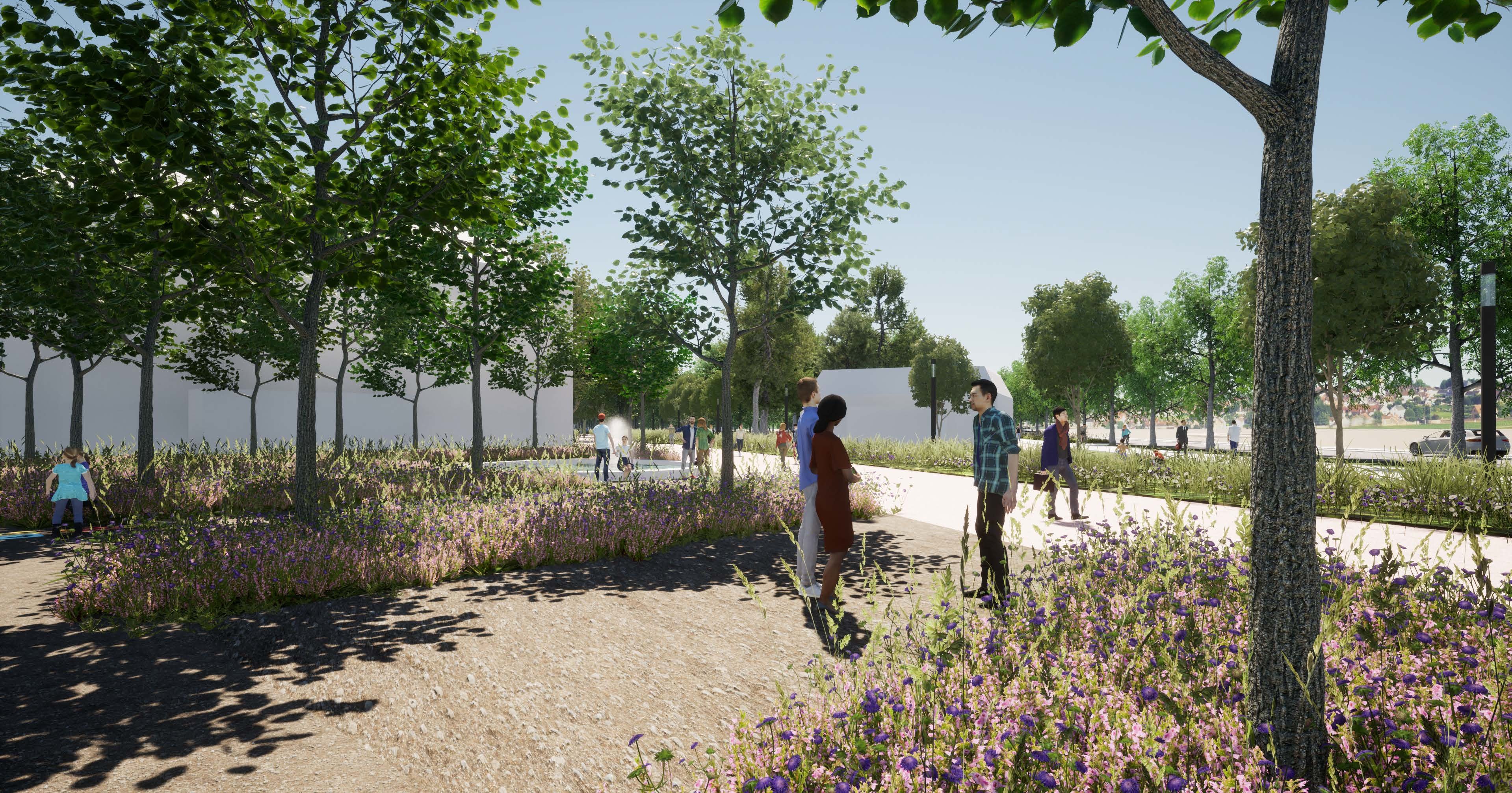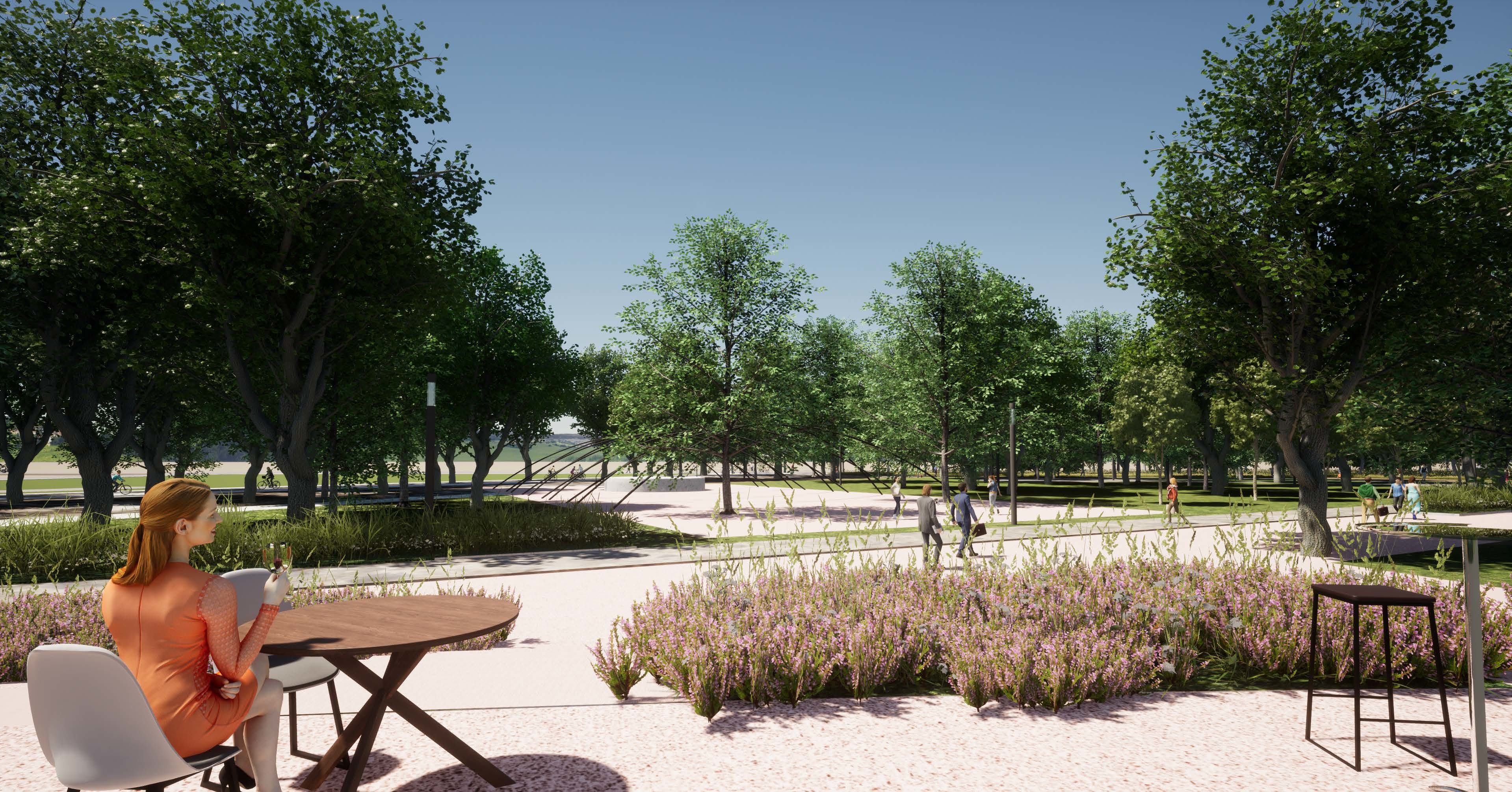 Sústredením spoločenských funkcií pri centrálnej osi zároveň vznikajú možnosti v ostatných častiach parku vytvoriť kľudnejšie miesta s intímnejšou atmosférou.
