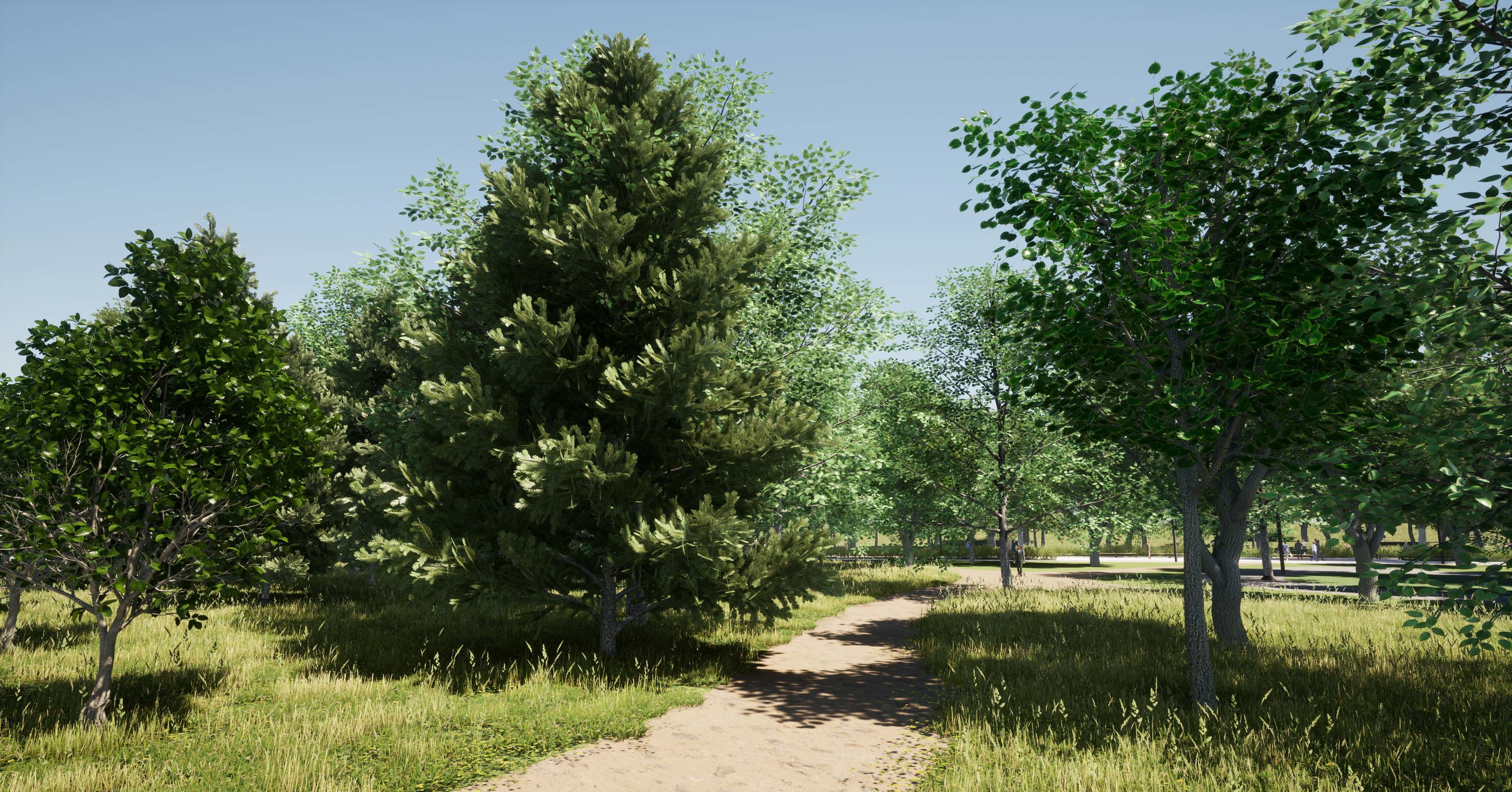 Návrh je spracovaný citlivo k existujúcim prírodným atmosféram jednotlivých častí parku, vytvára atraktívne presvetlené miesta, čím vhodne reaguje na možnosti rozptýlenia návštevníkov aj mimo centrálnej osi parku.