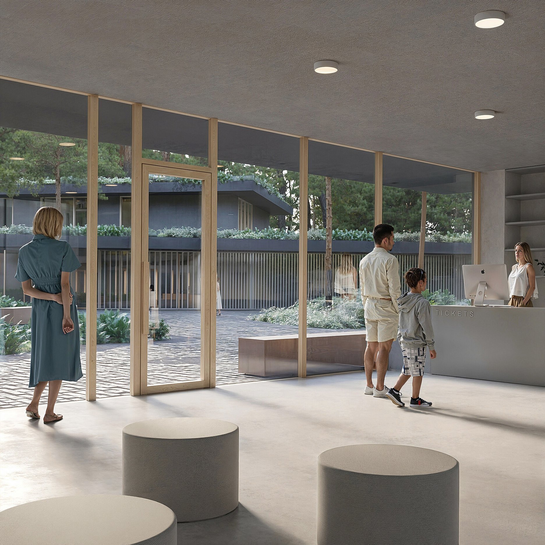 - umístění provozní budovy v druhém plánu s mícháním provozů návštěvníků a personálu