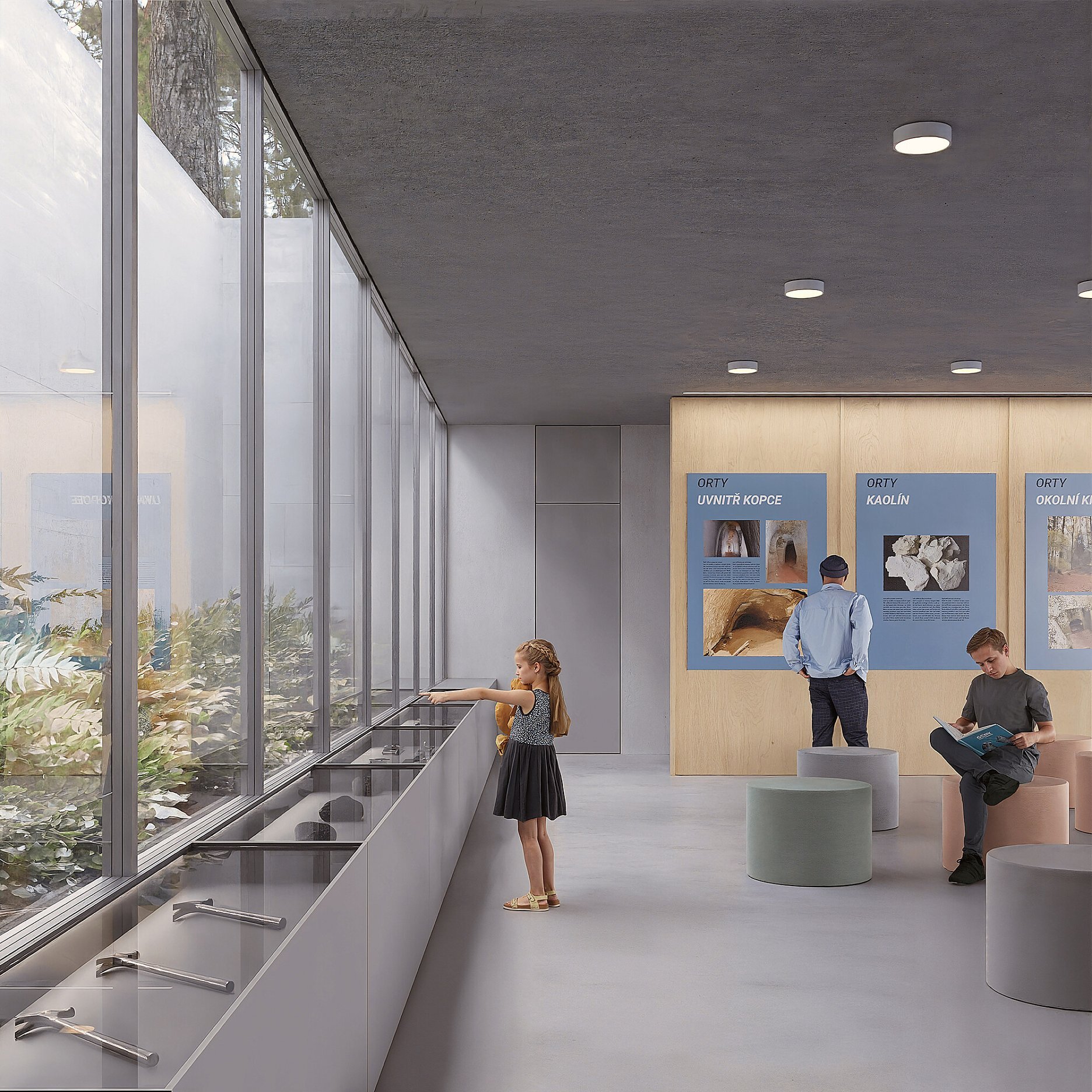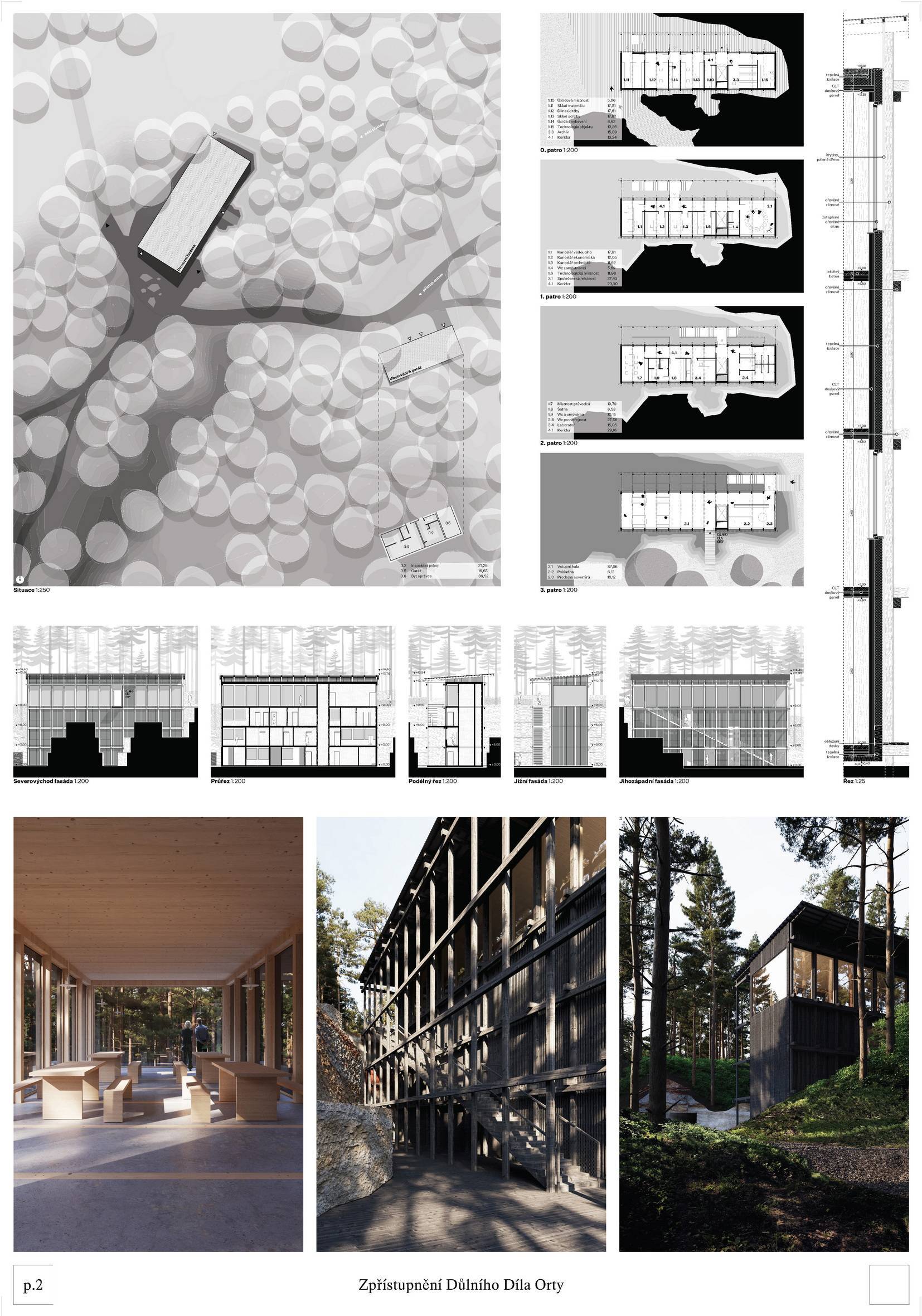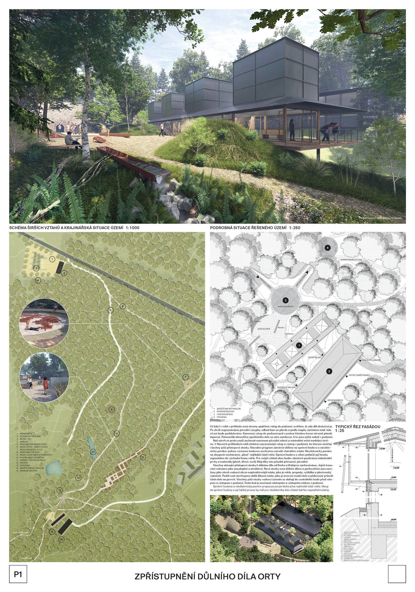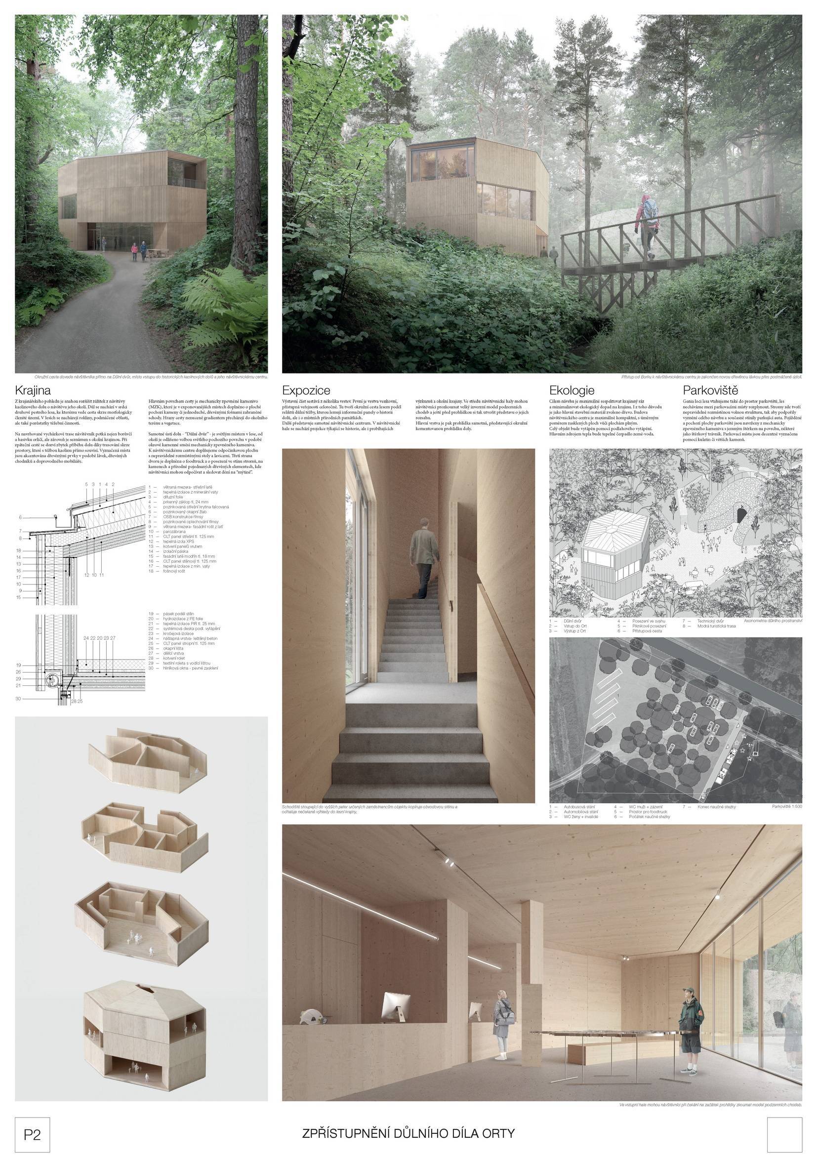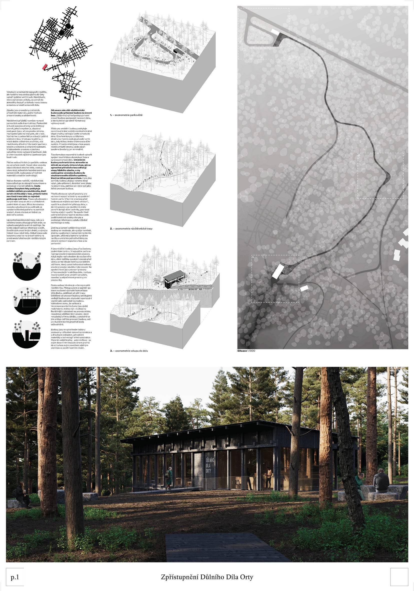 Porota navržené řešení hodnotí jako architektonicky i krajinářsky kvalitní odpověď na soutěžní zadání, které se nejlépe vypořádalo s požadovaným stavebním programem a zasazením stavby do stávající situace. Přestože jde o vizuálně atraktivní stavbu, svým výrazem a měřítkem je přiměřená danému místu. Navržená kompozice vhodně reaguje na morfologii terénu a rámuje navrženou situaci centrálního prostranství které je vymezené návštěvnickým objektem, provozním objektem a vstupem a výstupem do důlního díla. Měřítko budov i prostranství je vhodně zvoleno s ohledem na předpokládanou kapacitu a návštěvníkům poskytne přehlednou orientaci v celém areálu. Dispoziční řešení je racionální a funkční, zvolená forma a konstrukce zároveň poskytuje prostor pro případnou variabilitu. Zvolené materiálové řešení je odůvodněné jak po konstrukční, tak estetické stránce a dotváří charakter specifického místa. Kvalitní krajinářský koncept doplňují vhodně zvolené trasy přístupových cest. Řešení parkoviště je v základním principu navrženo správně.