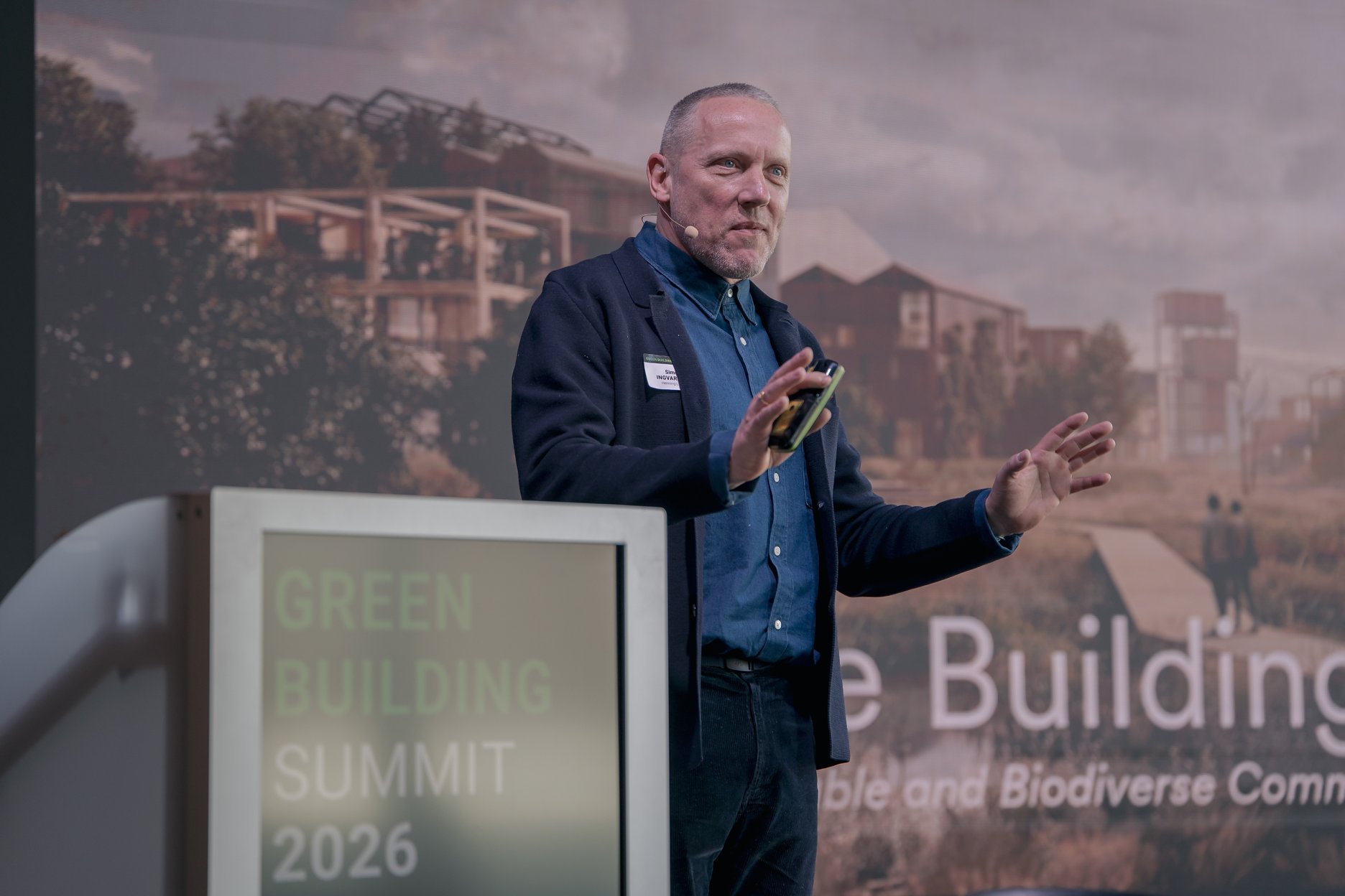 Dánsky architekt Simon Ingvartsen z ateliéru Henning Larsen vo svojej prednáške vysvetlil, prečo je potrebné premýšľať komplexne o celých mestských štvrtiach. Na svojom projekte prvej mestskej štvrte postavenej výlučne z dreva Fælledby v Kodani ukázal, ako môže prepojenie architektúry, krajiny, mobility a infraštruktúry znižovať uhlíkové emisie, podporovať mestskú biodiverzitu a zároveň zlepšovať kvalitu života samotných obyvateľov.