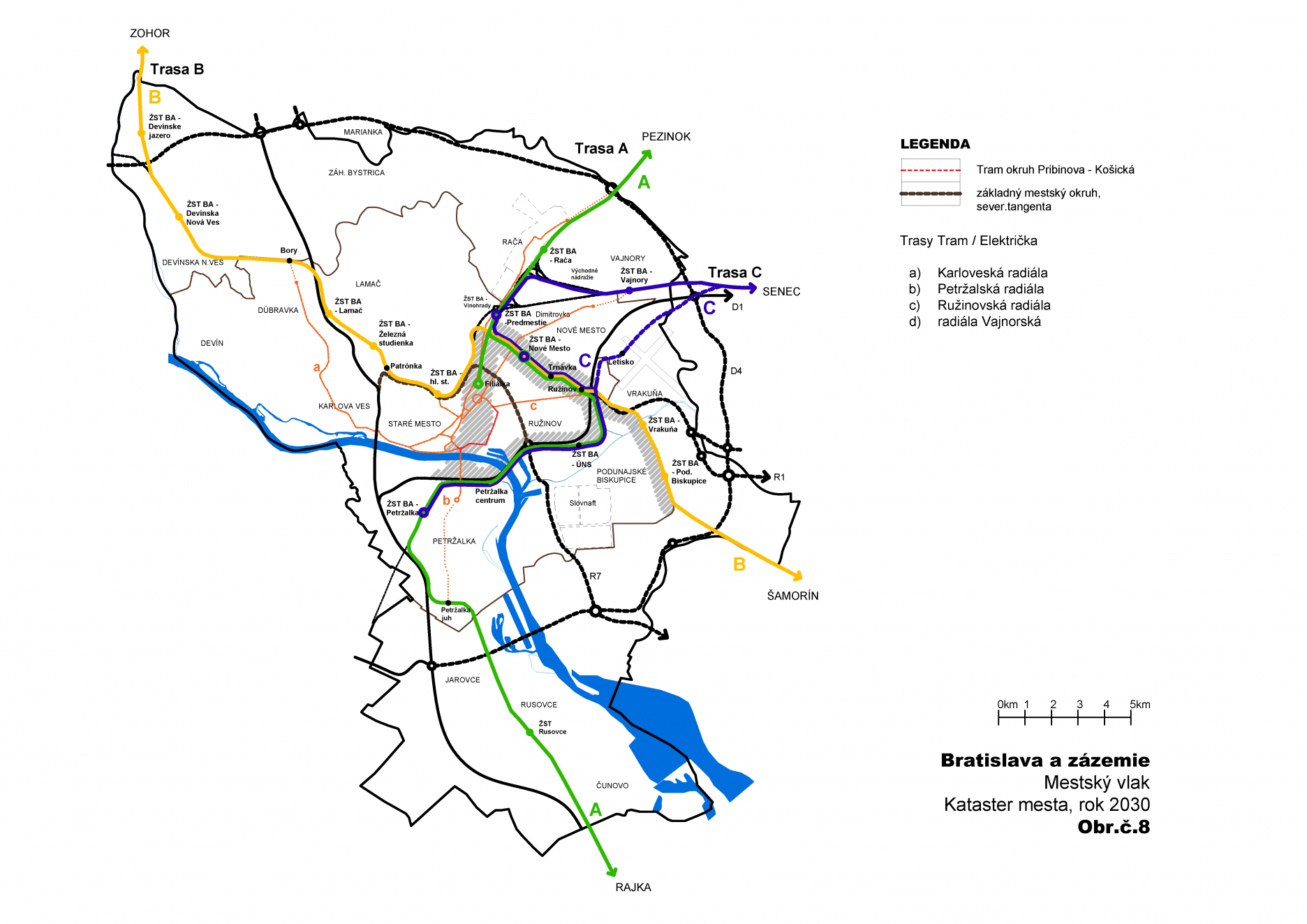 Význam navrhovaného systému prepojenia piatich rozvojových osí cez centrum aglomerácie Bratislava zvýrazňuje aj základný cieľ spracovaných materiálov Magistrátu Bratislava a to zmeniť pomer v mobilite obyvateľstva z dominantného automobilu na koľajové systémy, MHD a ďalšie alternatívne formy pohybu.