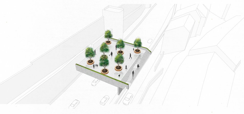 Posledným je náš pokus z minulého roka v rámci druhých bratislavských Mestských zásahov „95 vylepšení Bratislavy“. Pochopili sme, že ak chceme niečo s touto „ranou“ urobiť, je nevyhnutné, aby iniciatívu zobralo do rúk práve mesto a vytvorilo v danom priestore niečo, čoho pridaná hodnota by vysoko presiahla hodnotu finančného zisku jednotlivca – podnikateľa-developera, tým, že to bude zásah prospešný pre všetkých obyvateľov. Jeho „zisk“ bude spočívať napríklad v lepšej možnosti a kultúrnosti používania mesta.