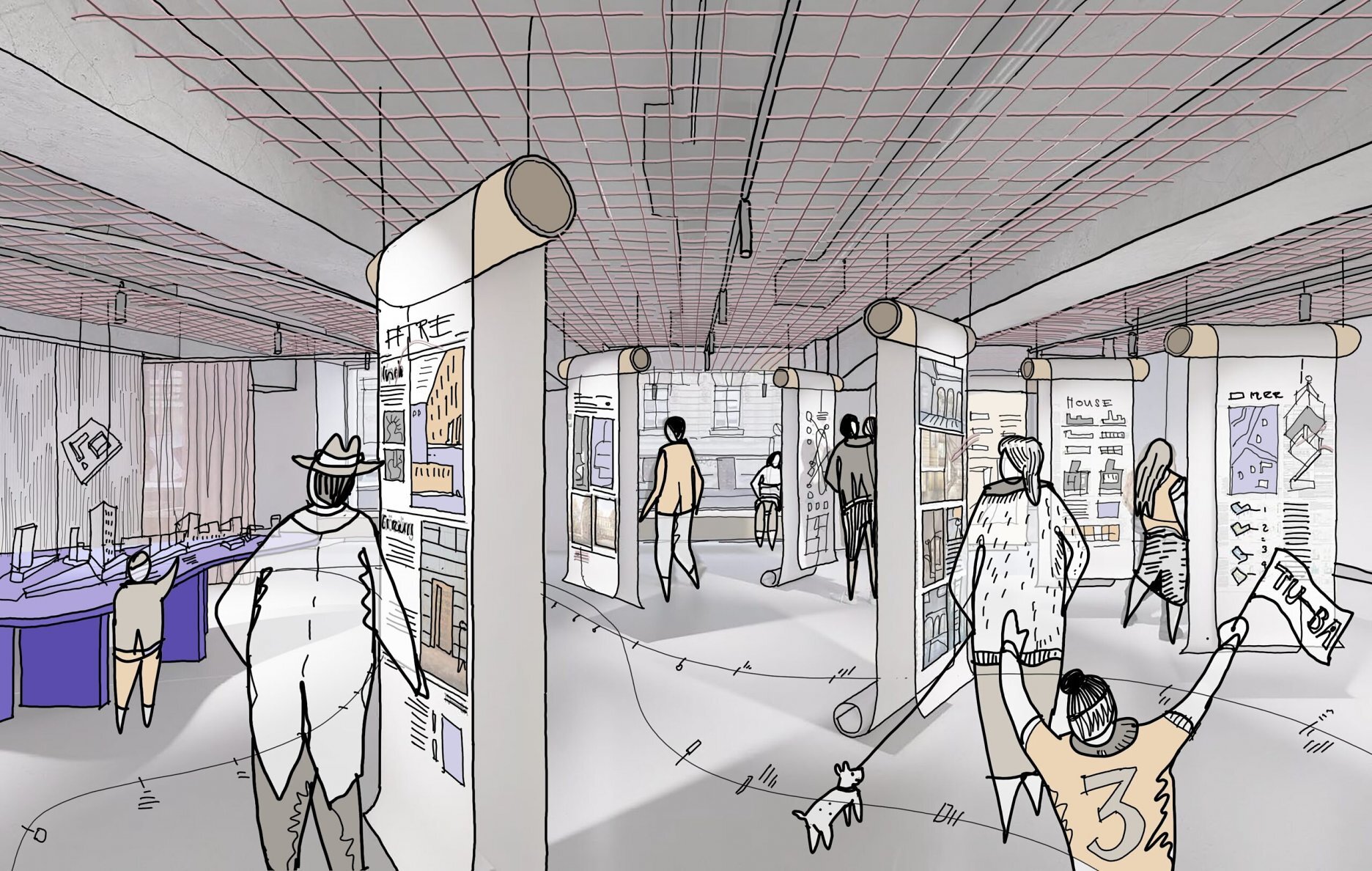 Interiér priestoru navrhlo architektonické duo Kristína Tomanová a Táňa Kuva zo spomínaného ateliéru Diagram. “Zadanie nás, samozrejme, navádzalo vytvoriť priestor pre architektov, ale na prvom mieste je pre nás návštevník. Preto sme sa snažili, aby priestor pôsobil veľmi prehľadne, transparentne a voľne, aby sa tam čo najväčší počet ľudí cítil dobre,” zdôrazňuje Kristína Tomanová.