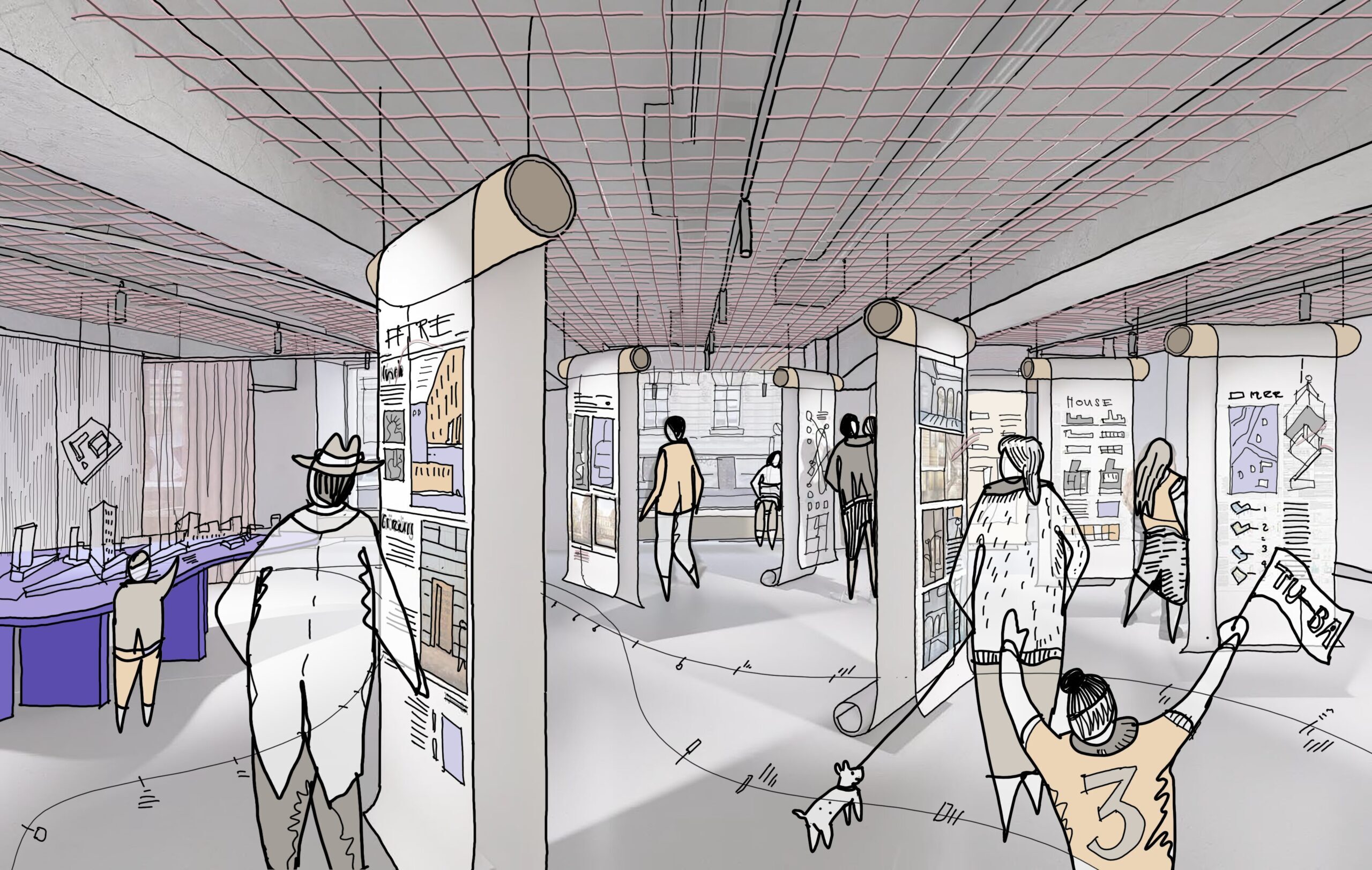 Interiér priestoru navrhlo architektonické duo Kristína Tomanová a Táňa Kuva z ateliéru diagram. “Zadanie nás, samozrejme, navádzalo vytvoriť priestor pre architektov, ale na prvom mieste je pre nás návštevník. Preto sme sa snažili, aby priestor pôsobil veľmi prehľadne, transparentne a voľne, aby sa tam čo najväčší počet ľudí cítil dobre,” zdôrazňuje Kristína Tomanová.