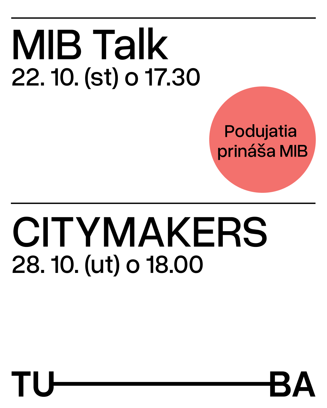 MIB Talk symbolicky otvorí priestor pre diskusie o mestských témach. Základom dobrej debaty sú fakty, preto bude prvou výstavou v TU-BA vizuálna prezentácia mestských dát s názvom Poznáš Bratislavu? Mesto v mapách, grafoch a číslach.
