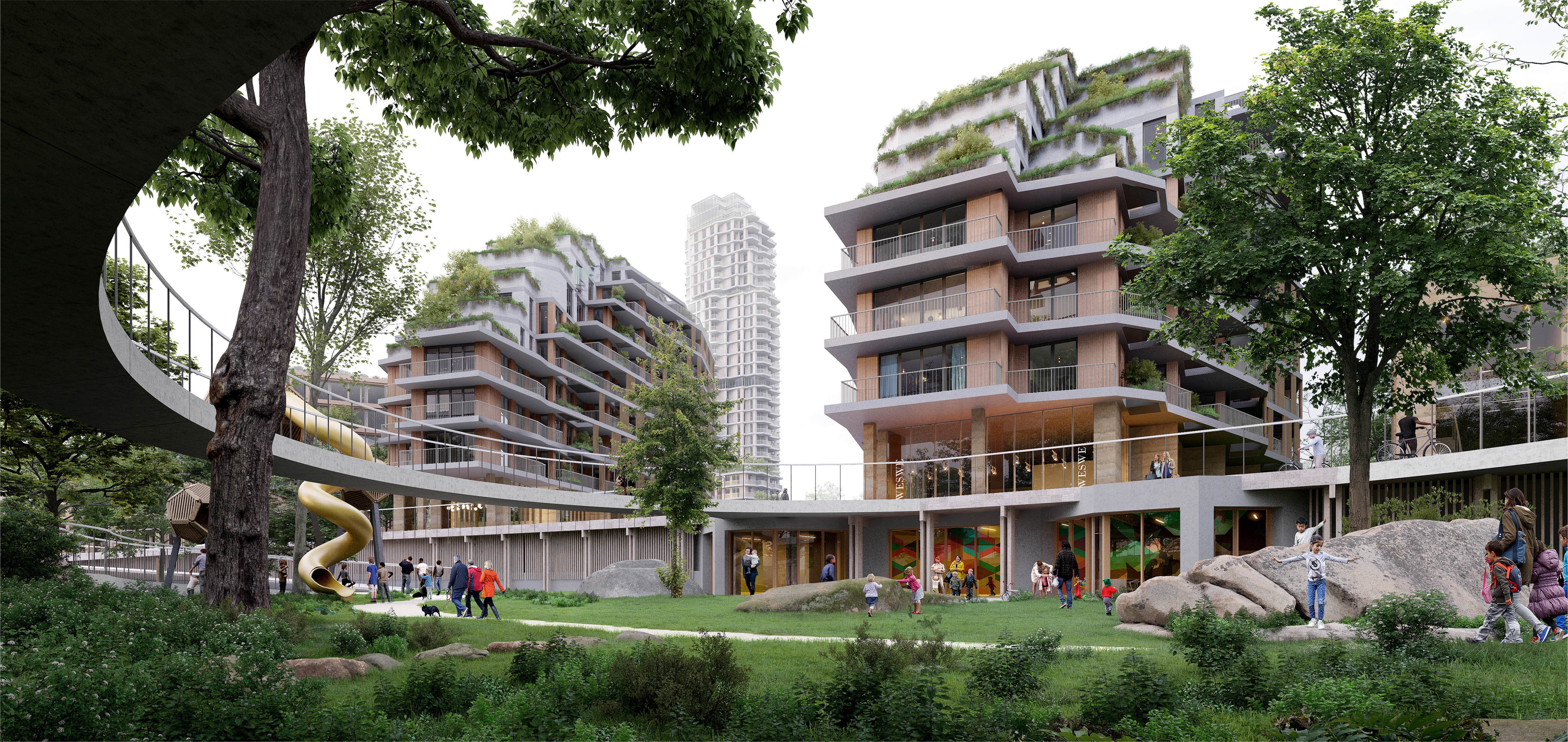 Prezentovaný architektonický koncept rozvíja pôvodný návrh, ktorý medzi jednotlivými stavebnými blokmi vytvára ťažiskové body - "bowls" s rôznym funkčným využitím. "Verejný priestor sa bude rozprestierať na viacerých úrovniach, ktoré budú navzájom prepojené promenádou. Táto promenáda sa stane priestorom pre komunitné stretávanie a hlavným bodom záujmu verejnosti,“ vysvetľuje architekt David West.