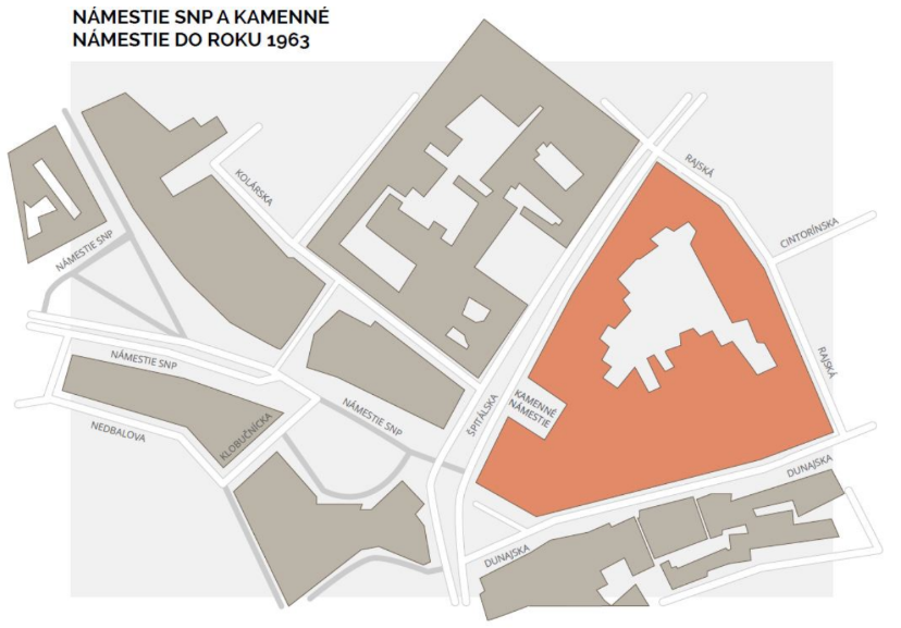 Návrh úpravy Kamenného námestia participačný projekt „Živé námestie“; Bratislava 2018 územia v hraniciach historických stopách uličných čiar. No v každom prípade táto historická citácia pre širšie centrum aglomerácie hlavného mesta s 550 000 tisícami obyvateľov je nevyhovujúca.