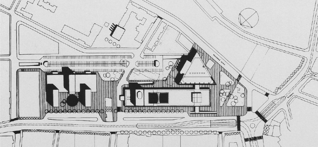 Spojovacia budova je v centrálnej polohe mesta a má iba dve nadzemné podlažia, je nemestotvorná . Nízka dvojpodlažná zástavba je charakteristická skôr pre satelitnú, provinčnú zástavbu. Riešenie je odrazom doby. Povyšuje kompozičné hmotovo - výtvarné riešenie nad racionalitu a funkčnosť.