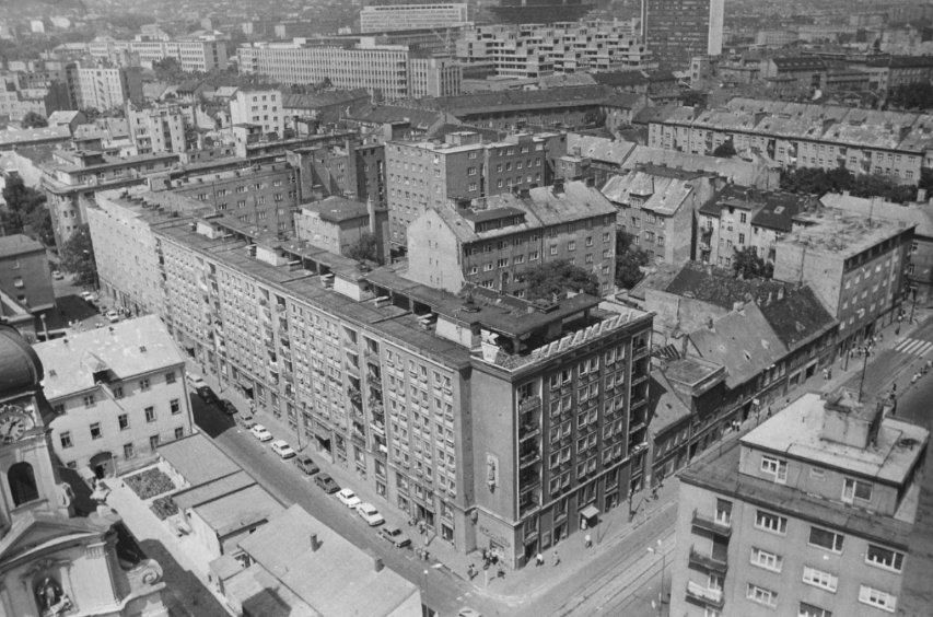 V medzivojnovom i vo vojnovom období boli prevádzky a dožívajúce domy nahradzované v rámci parcelácie novými objektmi jednotnej výškovej zástavby podľa regulačného plánu mesta 7+1 nadzemných podlaží.