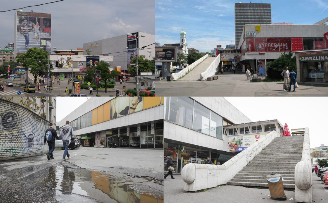 v rámci obnovy uličnej čiary Špitálskej ulice nové námestie a obnovu polyfunkcie mestského priestoru. Už vtedy život ukázal, že 170 m dlhé priečelie hotela Kyjev s dvoma vstupmi do prevádzok obchodu a služieb / z toho jeden do nočného baru / a jednou nefunkčnou pasážou nebolo mestotvorným prvkom. Život mesta bol o 200 m ďalej, na námestí SNP pri vysokoškolskom V klube. Chodník medzi hotelom a parkoviskom na Špitálskej bol domovom vexlákov, šmelinárov, eštebákov , pasákov a luxusných šlapiek. Za rohom bolo čisto a všetko v poriadku, pred vchodom do hotela bol policajný dozor a hotelová služba. Dnes chodník ponúka omnoho viac obchodných prevádzok a služieb neželaných najnižších cenových skupín, chaotické nedisciplinované parkovanie, špinu a sem tam žobráka či bezdomovca. Udržateľná architektúra sa stala neudržateľnou.