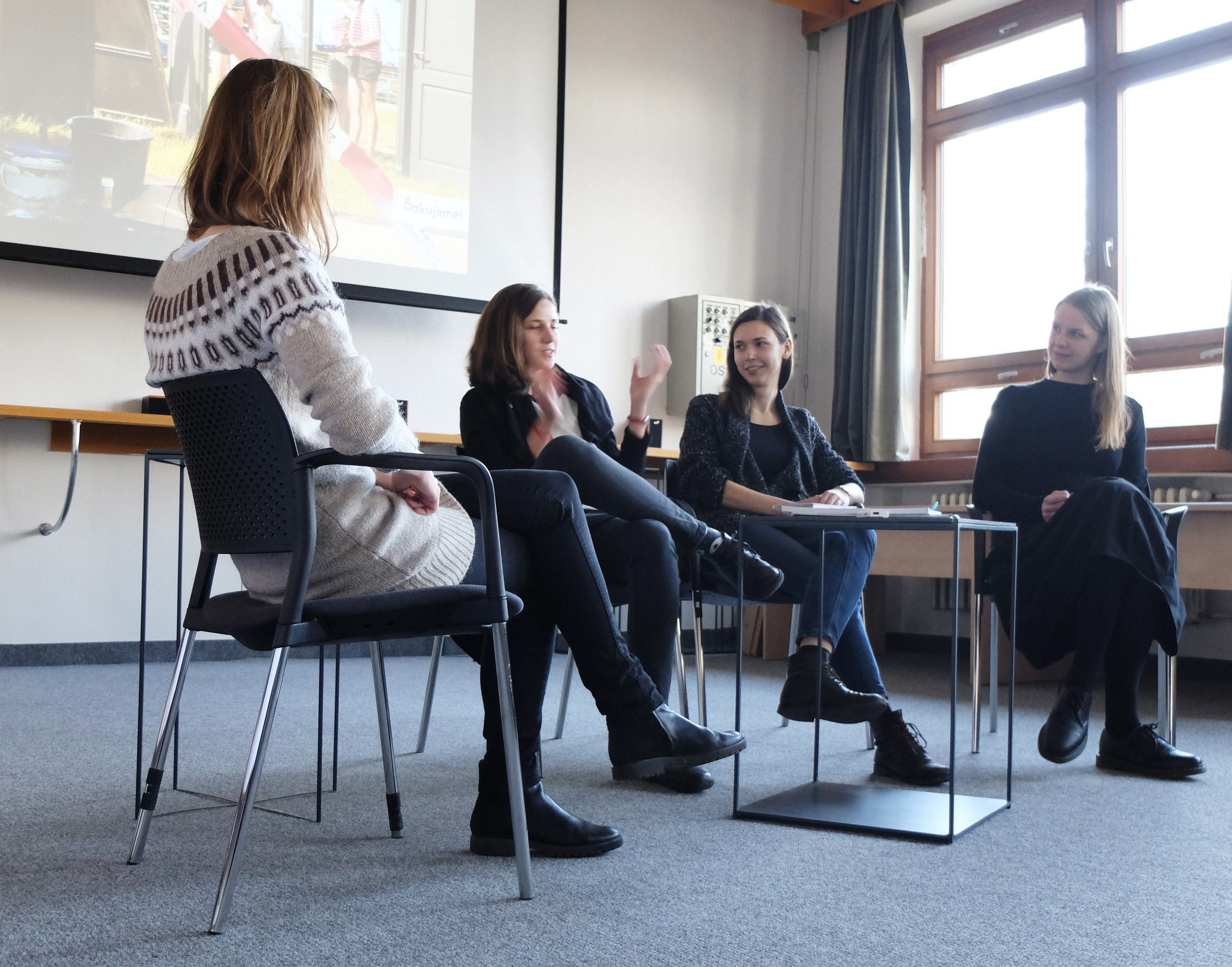 Program organizovanej skupiny účastníkov vyvrcholil návštevou ateliéru JRKVC, ktorý vedie Peter Jurkovič, kde sa o svoje skúsenosti z praxe podelila Kristína Tomanová. Popri práci v ateliéri tento rok končí štúdium na Fakulte architektúry. Jej diplomovú prácu vedie architekt Števo Polakovič z ateliéru gutgut, sídliaci v spoločných priestoroch. Po chvíli sa preto do diskusie zapojila aj architektka Jana Benková, ktorá sa v rámci gutgut vo podieľala napríklad na návrhu a realizácii projektu Mlynica v Bratislave. Z praxe má bohaté skúsenosti, nakoľko v ateliéri pôsobí už desiaty rok. Necítila potrebu sa zvlášť vyjadrovať k postaveniu žien, nakoľko v ateliéri diskrimináciu nepociťuje a projekty gutgut sú dielom zmiešaného kolektívu žien a mužov.